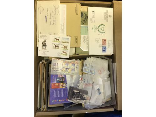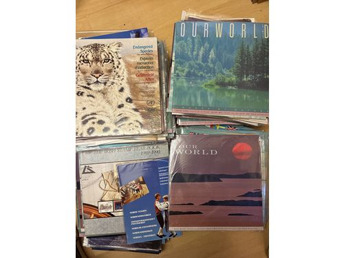 ALL WORLD. Accumulation mostly ★★ 1970–1980s in box. Folders with natur and wildlife, endangerd species, Irish stamp year book 1988-90. Ca 130 folders. First day covers Sweden 1970-1989. Please see a selection of scans at www.philea.se. Mostly good quality. Approx. 25 kg. Show less