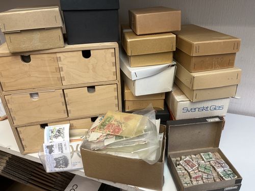 Sweden. Accumulation used in removal box. Duplicates circle type–modern incl. much coil stamps. Also several empty albums incl. visir albums without leaves. Approx. 18 kg. (1000s) Show less