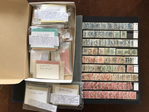 Sweden. Miscellaneous. Box with about 185 booklets 1946–70 incl. few dupl. + stockbook with 1000s of used dupl. 1858–1946 incl. several pair combinations, etc. Please see a selection of scans at www.philea.se. Show less