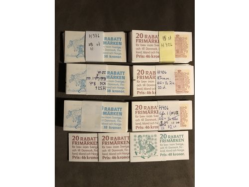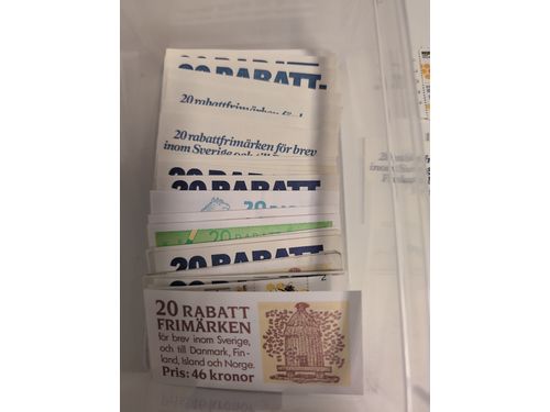 Sweden. Discount stamp booklets, lot 1981–1990 in box. 40 discount booklets. Show less