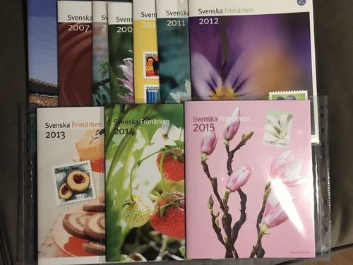 Sweden. Year sets. Ten different year sets cpl. 2006–2015. Face value approx. 3400 + 261 'Sverige BREV' and 47 Christmas stamps.