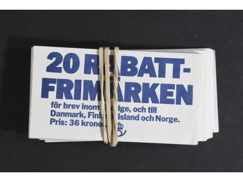 Sweden. Discount stamp booklets, lot 1981–1990 in box. 40 discount booklets.
