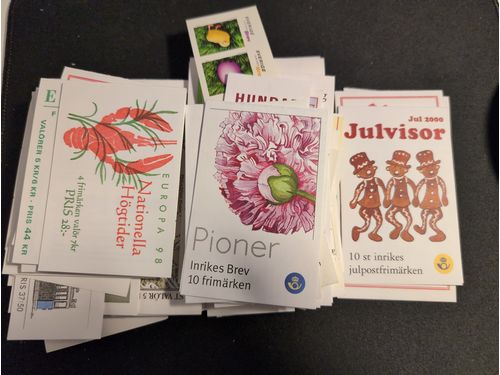 Sweden. Face value, accumulation. Only booklets. Face value with denomination = 1386 kr. "Julpost" ×21 (21kr) and "Brev" ×272 (22kr). Total face value = 8420kr. Show less