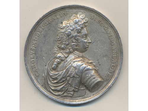 Medals, regal, Sweden. Karl XI, Hild. 52, The victory over the Danish army in the Battle of Lund December 4, 1676. Cabinet copy with insignificant obverse scratch in right field. 56.2 g. 55 mm. The best known example. 01/0. Show less