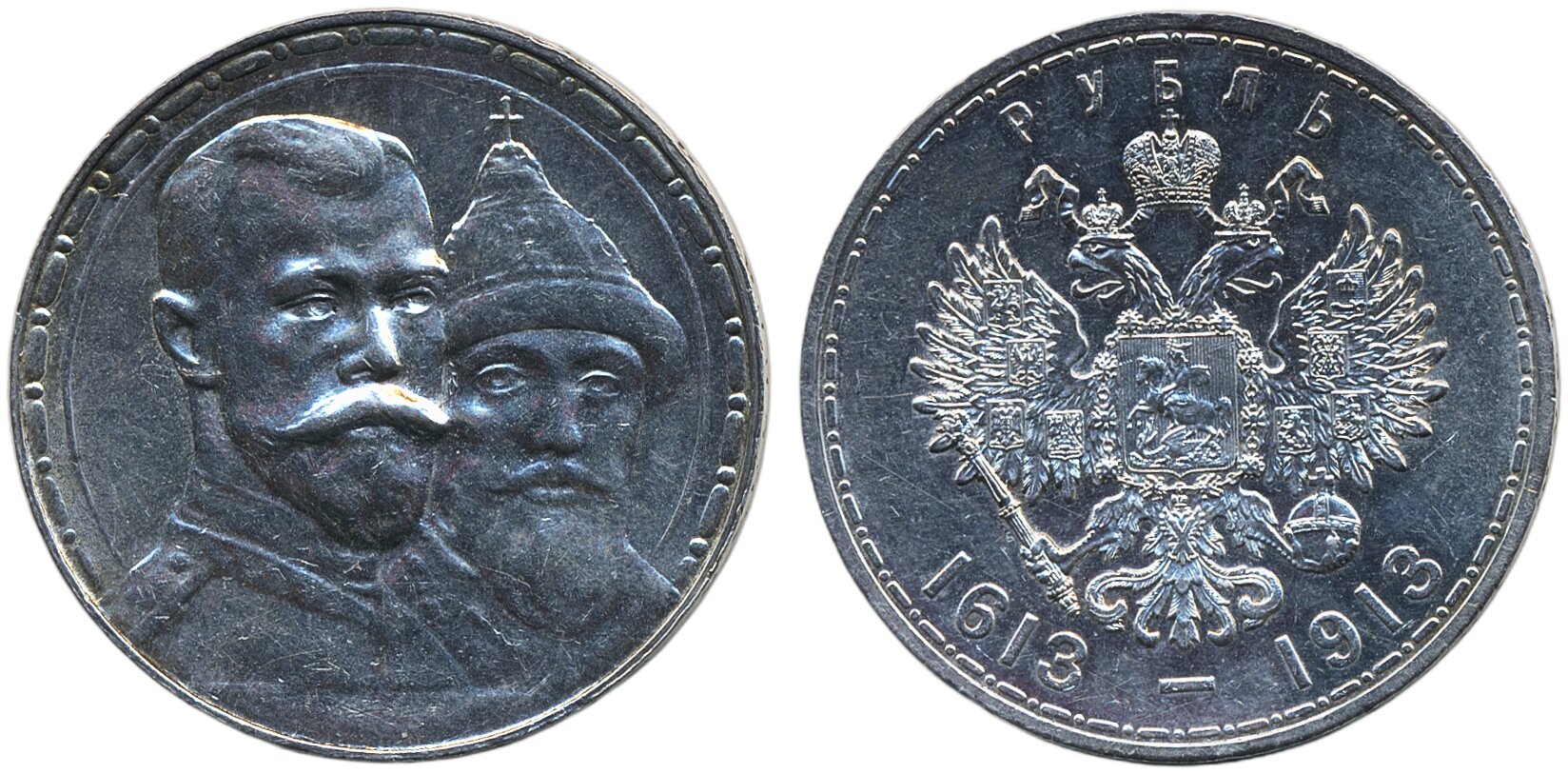Coins, Russia. Nicholas II, Bitkin 336, 1 rouble 1913. Commemorative issue to 300th Anniversary of Romanov Dynasty. Minor edge nick, polished. Good XF.