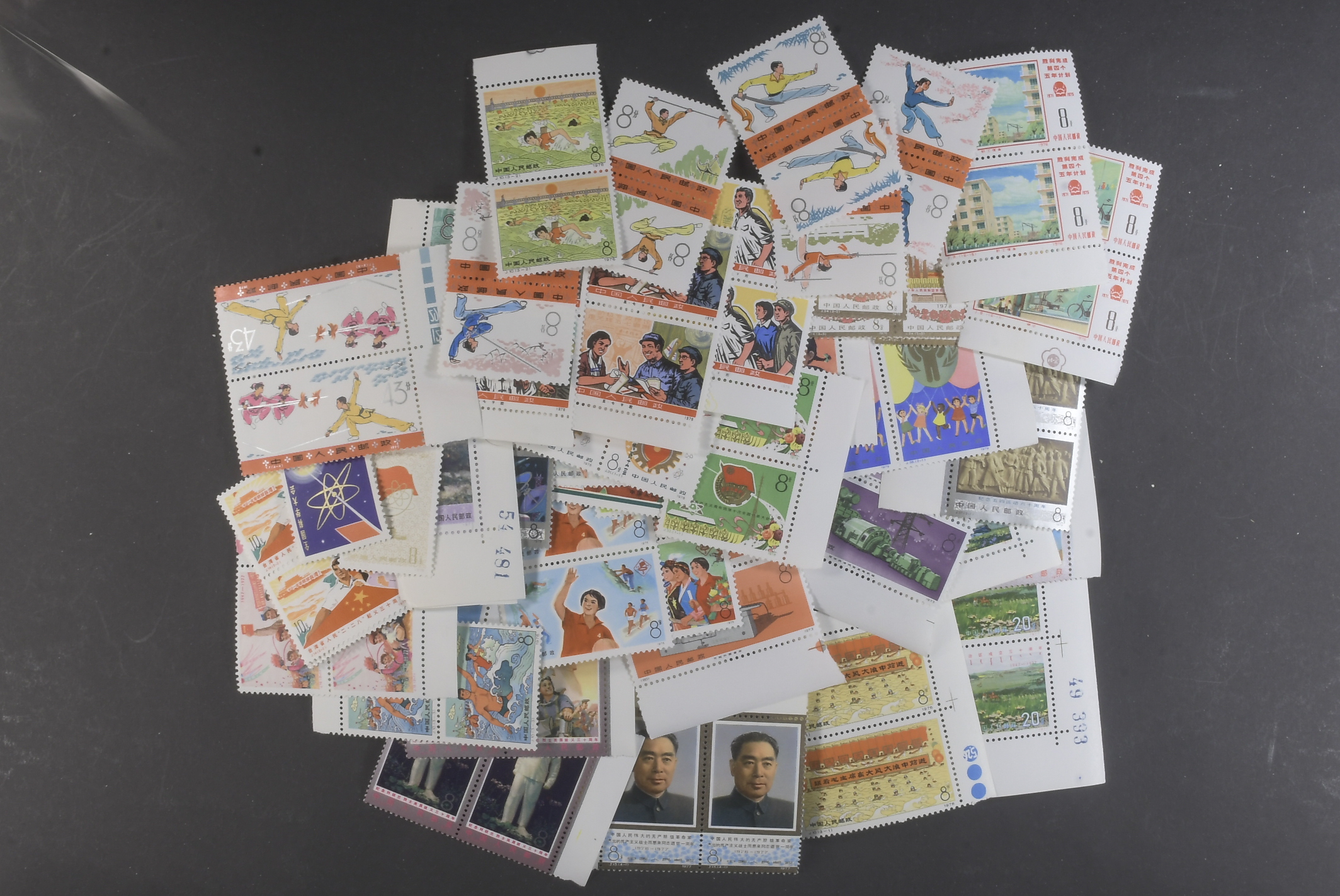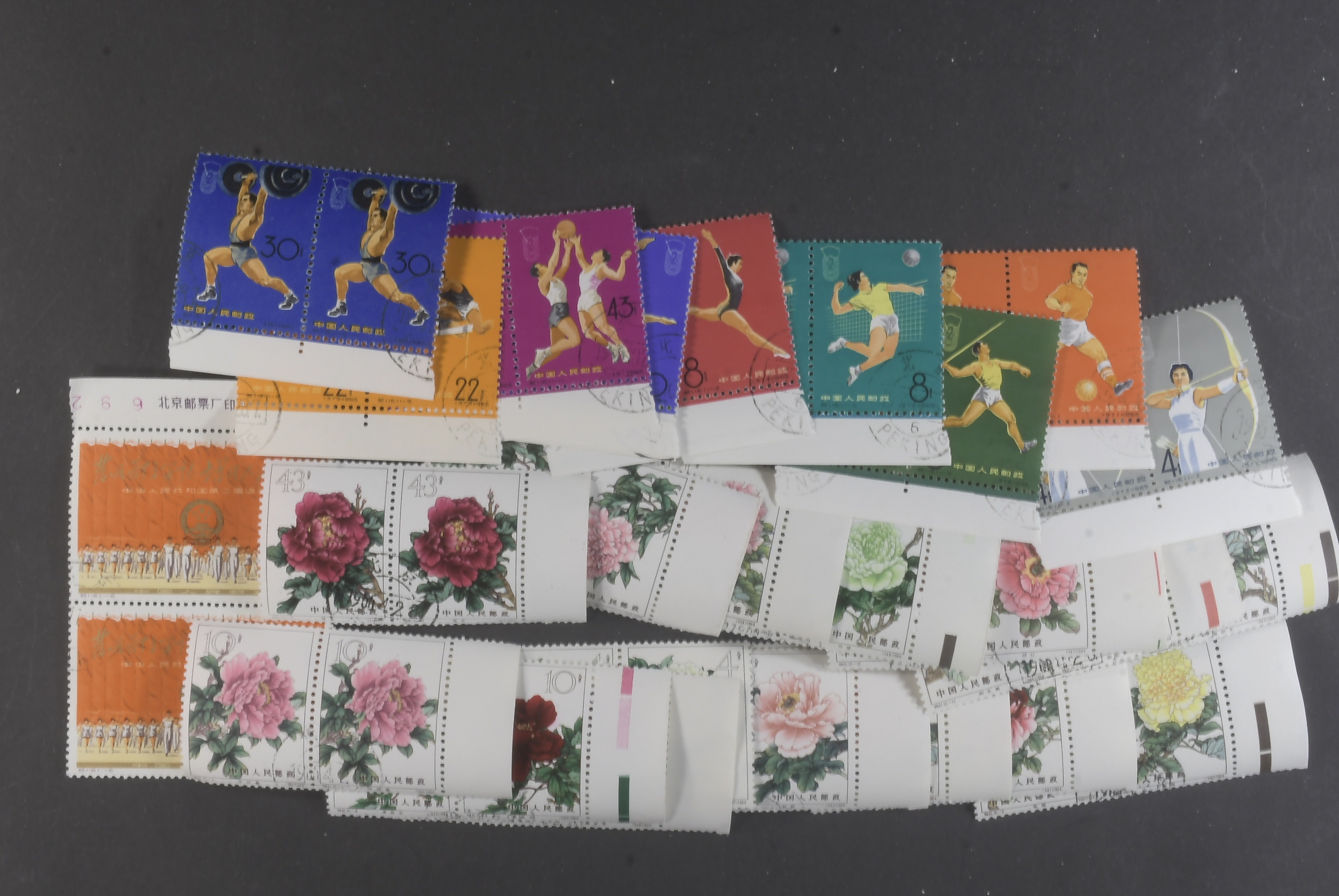 China, People’s Republic. Accumulation ★★/⊙ 1949–1979 in box. amazing lot of sets most of them in pairs. NGAI, MNH or CTO, with many better sets e.g. Five year plan (1955) NGAI, Chrysanthemum cto, Butterflies cto, Peonis cto, Sports cto (1965) from 1970s only NGAI or MNH Peking Opera, Merchant Ships, Table tennis 1972, Red flag canal, Pandas 1973, Internationla womens day 1973, Modern balett, from 1974 almost complete with Heavy machinery, Five year plan 1976 and horses. Mostly very fine quality. Viewing is recommended. Please see a selection of scans at www.philea.se. Fine quality. (1000s)
