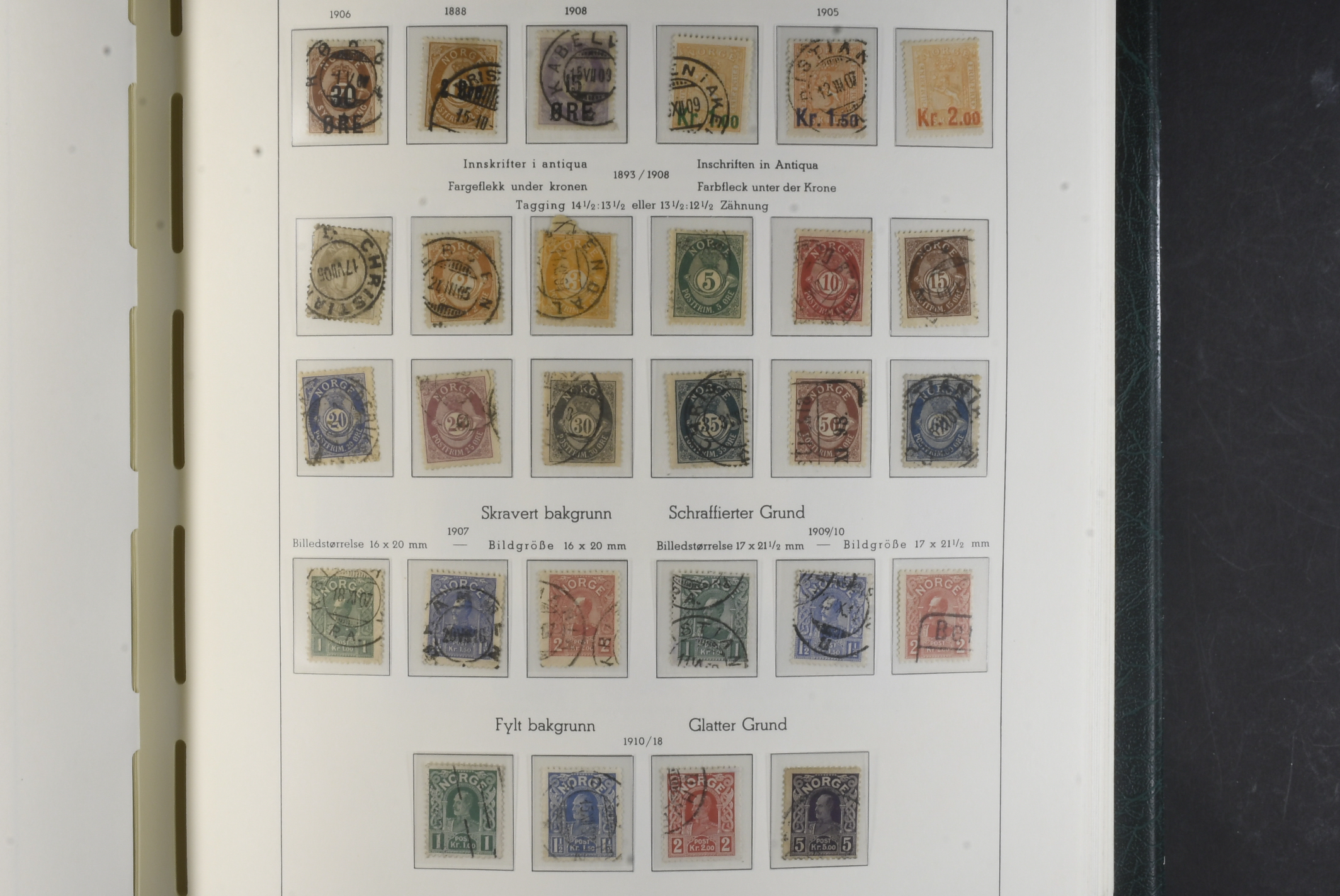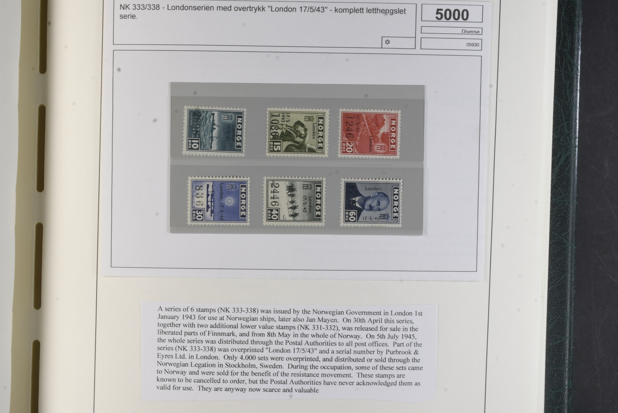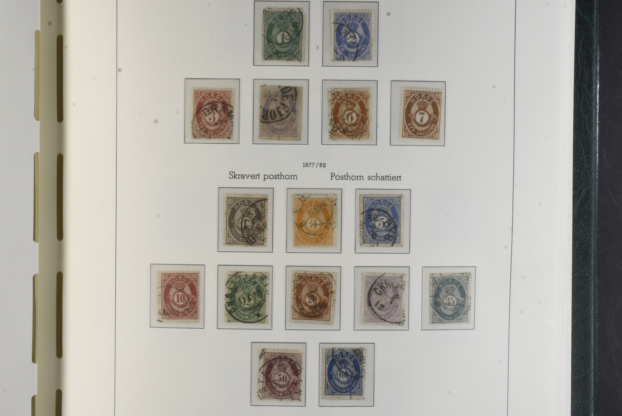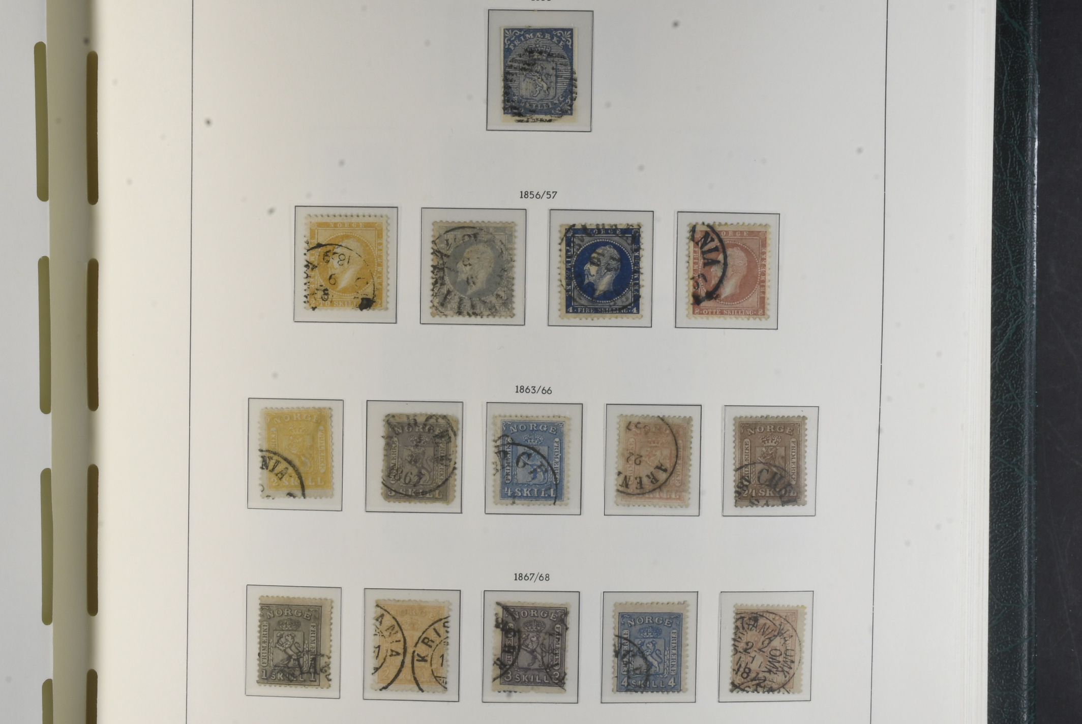 Norway. Collection ★★/★/⊙ 1855–1999 in Leuchtturm album with stamp mounts. Almost complete classic to 1960s, mixed mint and used and the oldest part in very mixed quality. Later incl. 50 o V with wm signed and London overprints set mint. From 1970s some NH or used. Back of the book looks complete incl return stamps mint. Viewing is recommended. Please see a selection of scans at www.philea.se. Mixed quality. (ca. 1000)