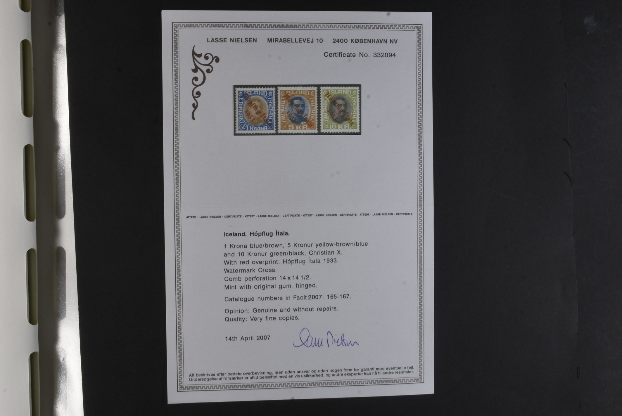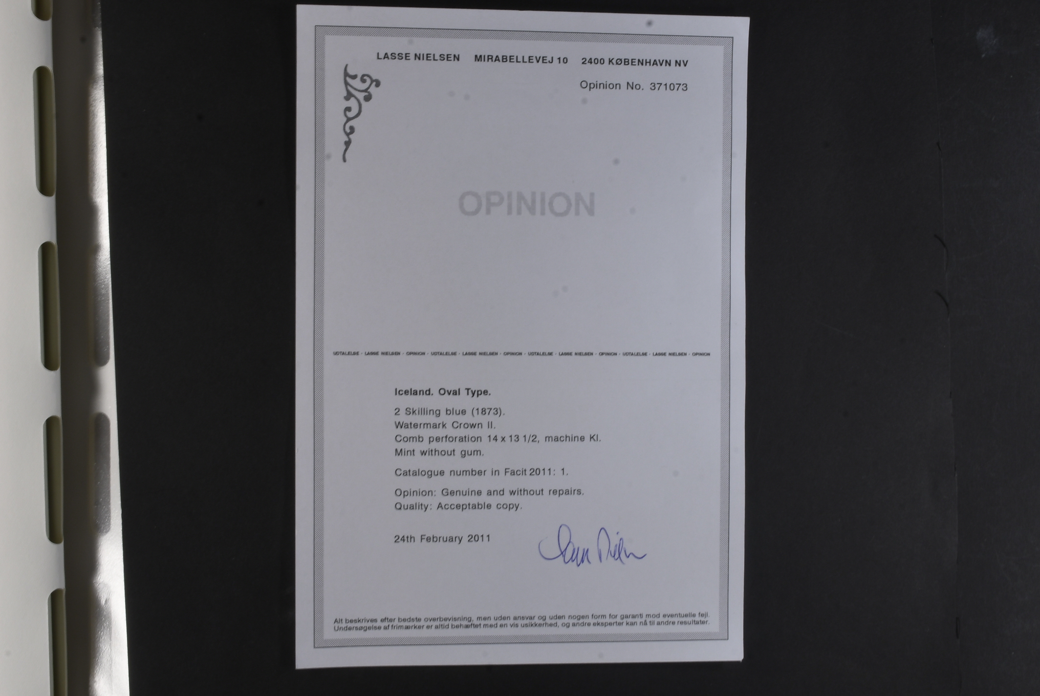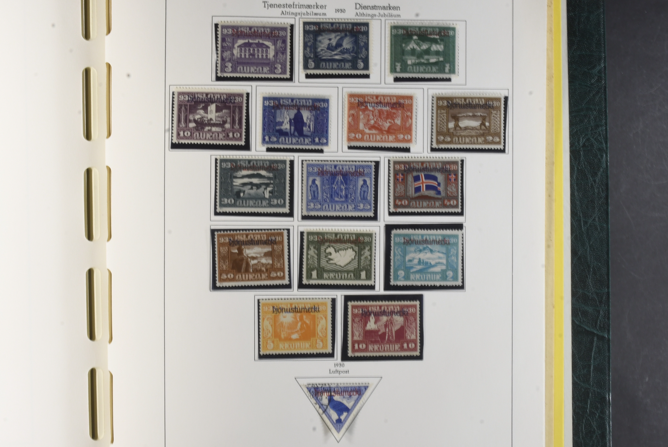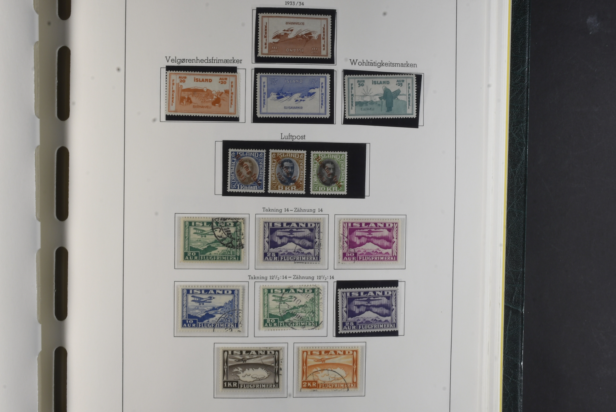 Iceland. Collection mostly used 1873–1996 in Leuchtturm album. Almost complete collection, just missing a couple of þrir and the most expensive I gildi stamps. Quite mixed condition. 2 sk no gum, 8 sk no gum, 4 sk line perforation thin, includes 3 þrir stamps (36 with cert.) from Kings incl. Hopflu Itala (cert. Nielsen Mint) to late ca. 1990 complete in main numbers incl. officials except Fa1. Mixed mint and mostly used through the whole collection. Viewing is recommended the quality is rather mixed and several stamps have "Tollur" cancels. Somewhat mixed quality. (900+)