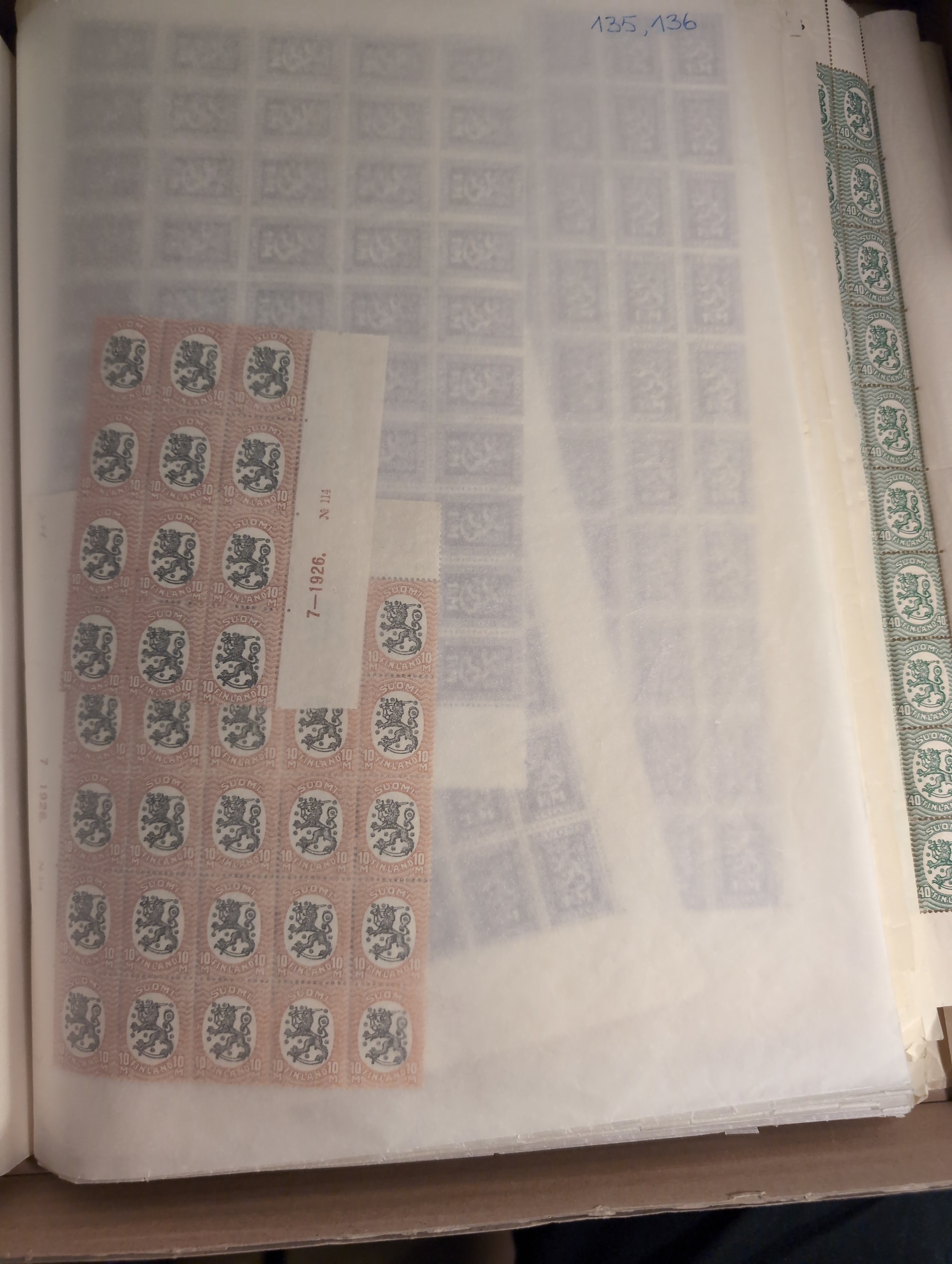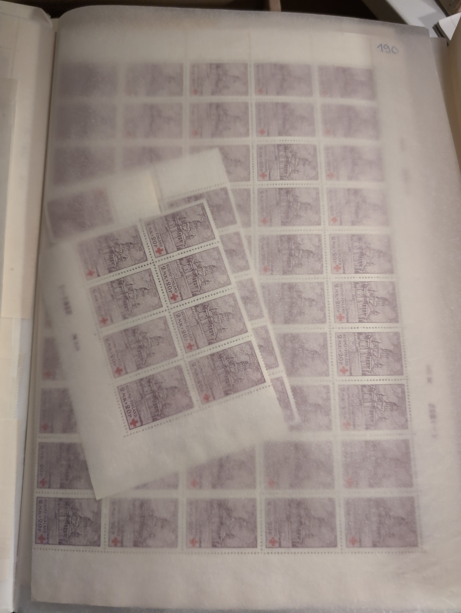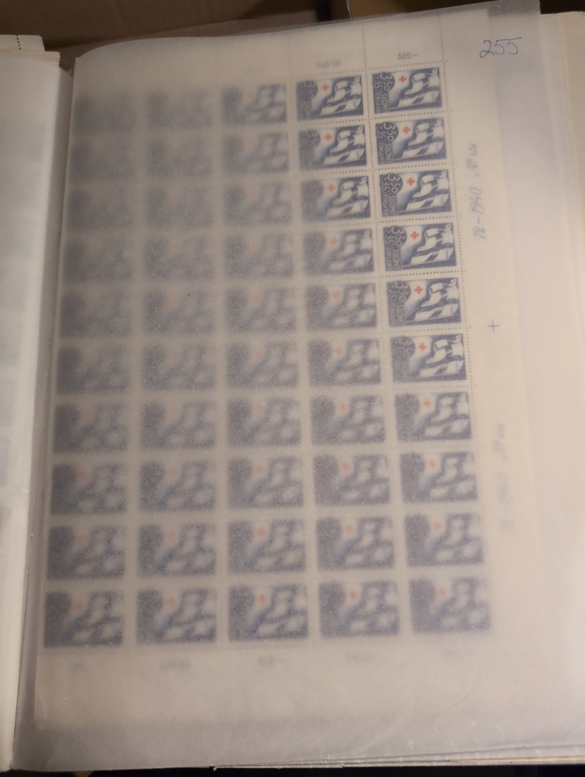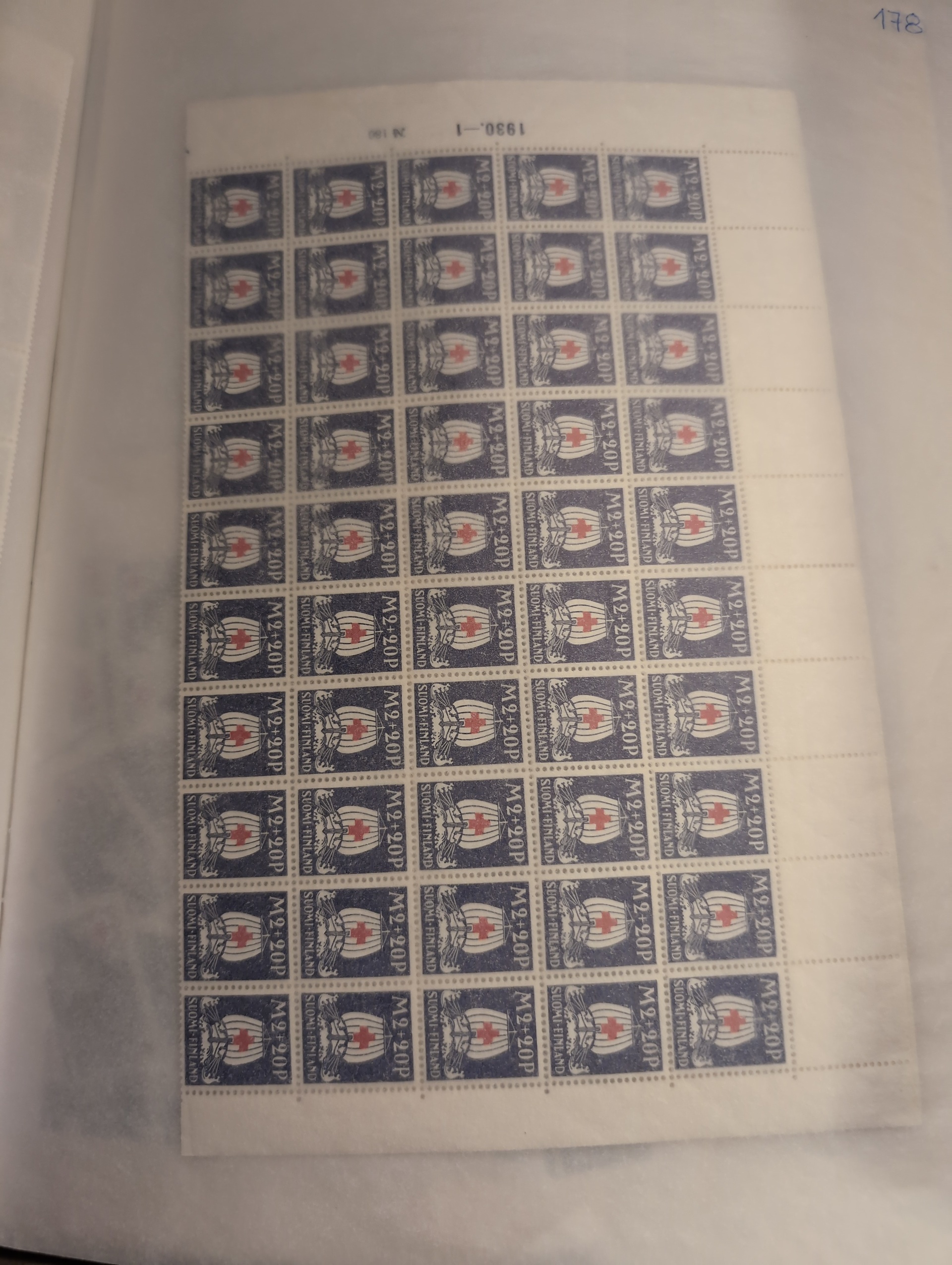 Finland. Accumulation ★★ 1889–1944 in box. Dealers stock of mint sheets and part of sheets Norma 35A//301 mostly cheaper stamps, with some better defenitives. from about 20-100s of each, better stamps are missing. Please see a selection of scans at www.philea.se. Mostly fine quality. Approx. 10 kg. (many 1000s)