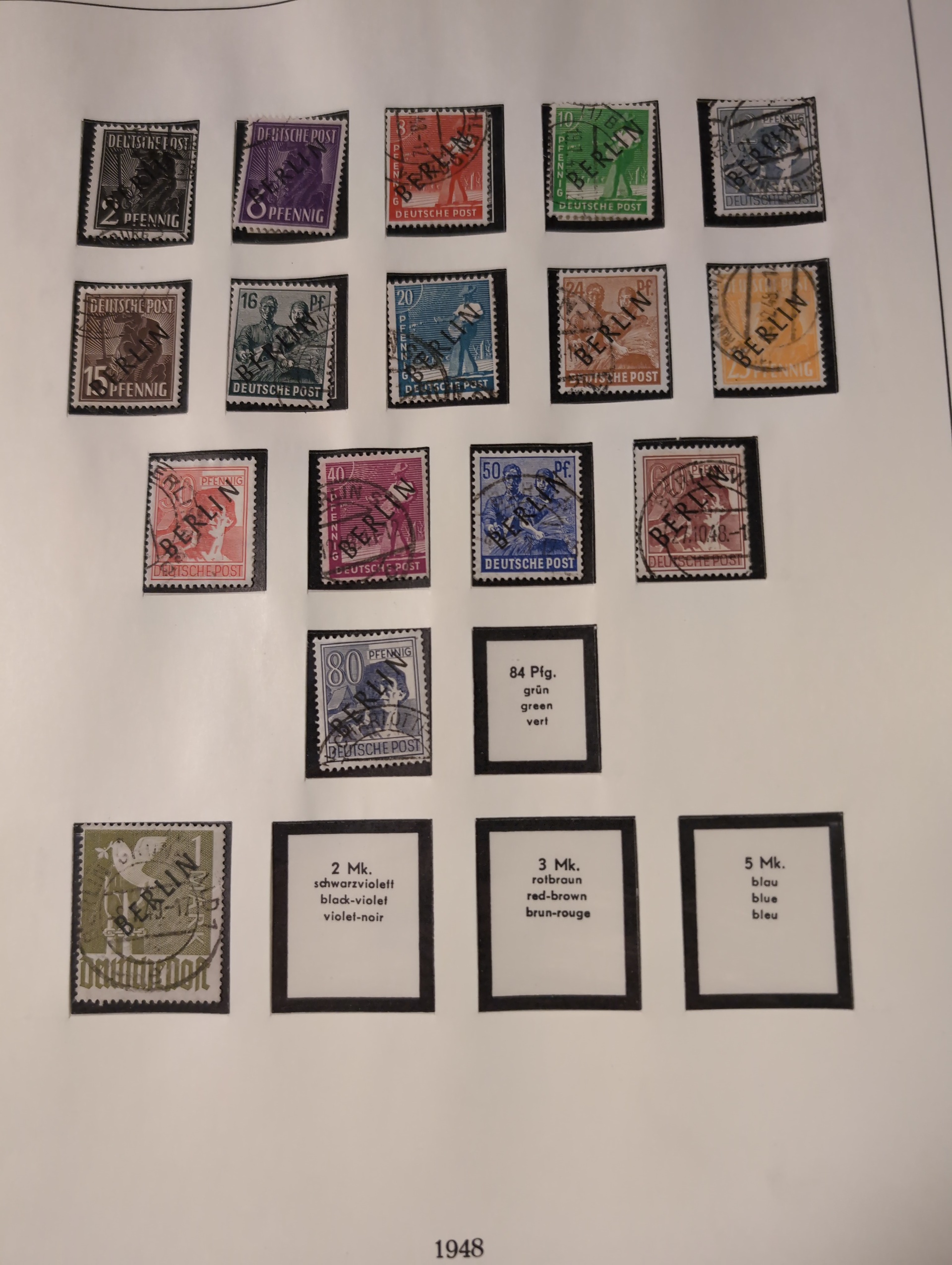 Germany, Berlin. Collection used 1848–1990 in Lindner album. Almost complete just missing black overprints 2–5 m and the currecy victims M/S and later some booklet stamps. Please see a selection of scans at www.philea.se. Mostly fine quality. (800+)