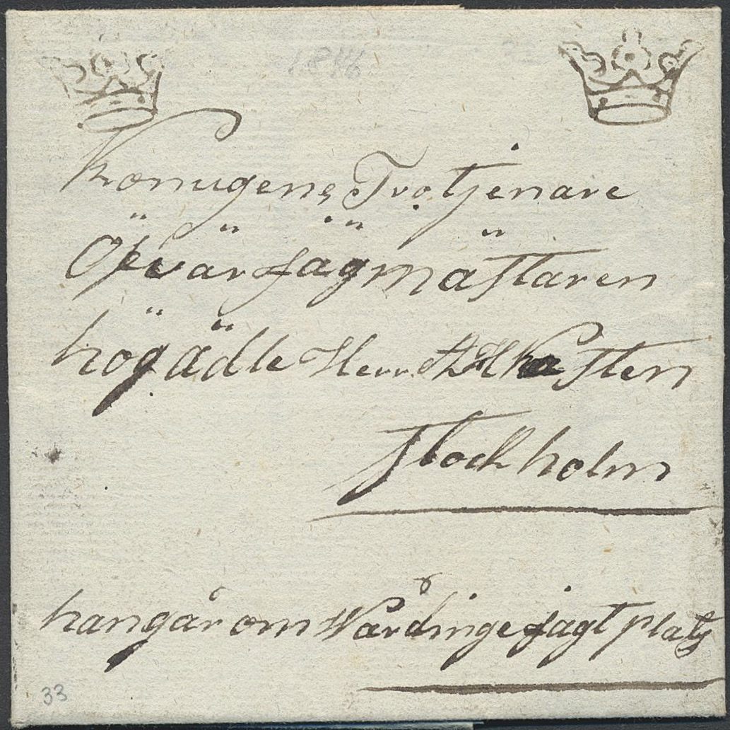 Sweden. Crown post. Letter dated '9 januari 1846' with two beautiful crown marks, sent to Stockholm.