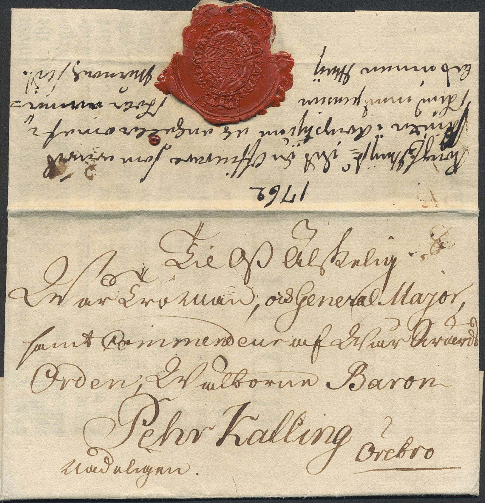 Sweden. General mail. Announcement sent to 'Pehr Kalling Örebro Undernåligen' in 1762.