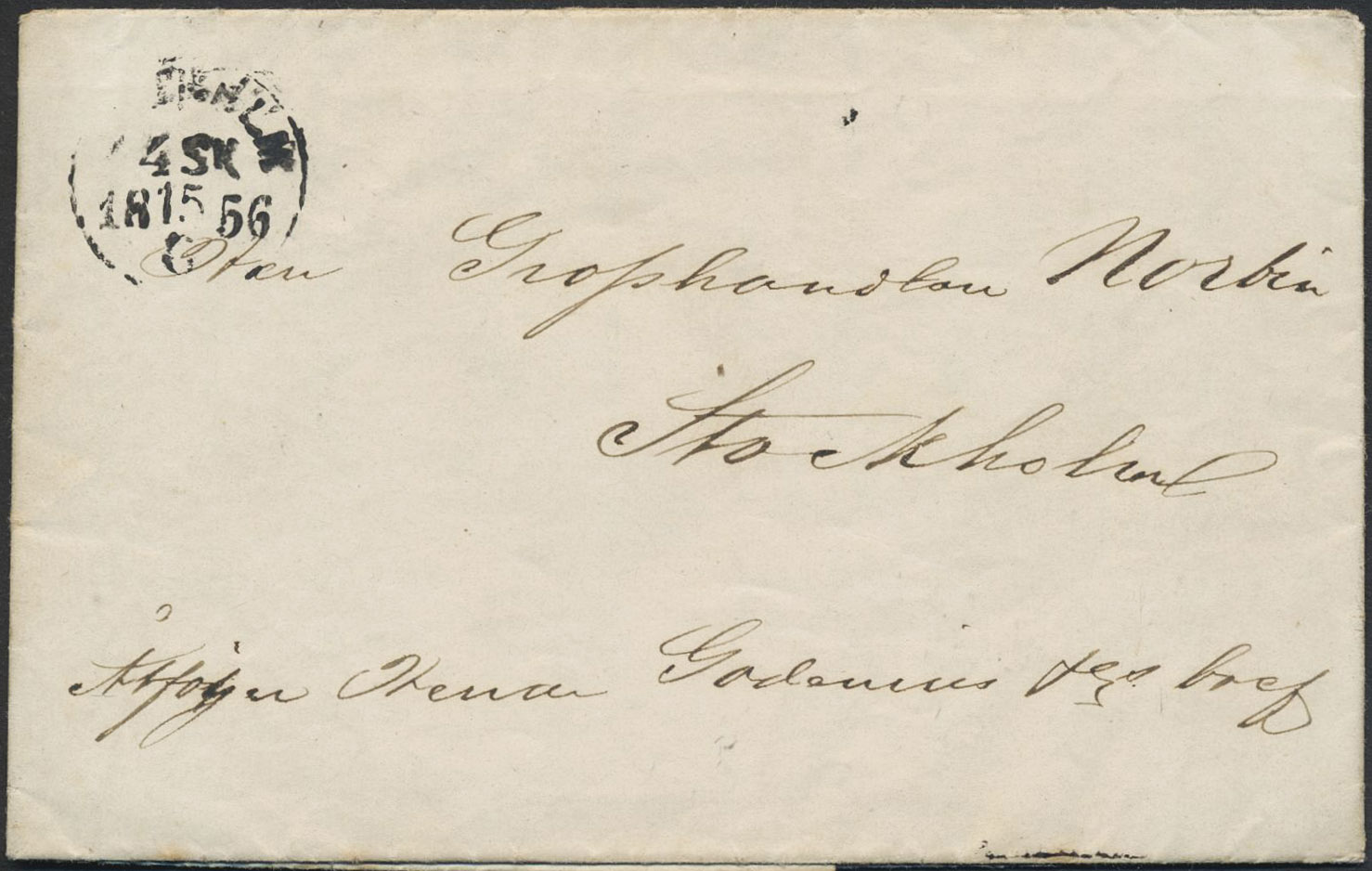 Sweden. Lösenförsändelser. STOCKHOLM 4 SK 15.6.1856 (type 1) on letter dated 'Skellefteå den 11 Juni 1856'. Postal: 6000:-