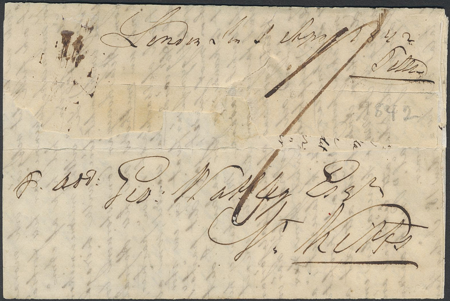 Sweden. Foreign-related cover. Saint Barthélemy. Cover privately conveyed to London, postmarked LS 1.AP.1842 and sent to St Kitts for further transportation. Fragile.