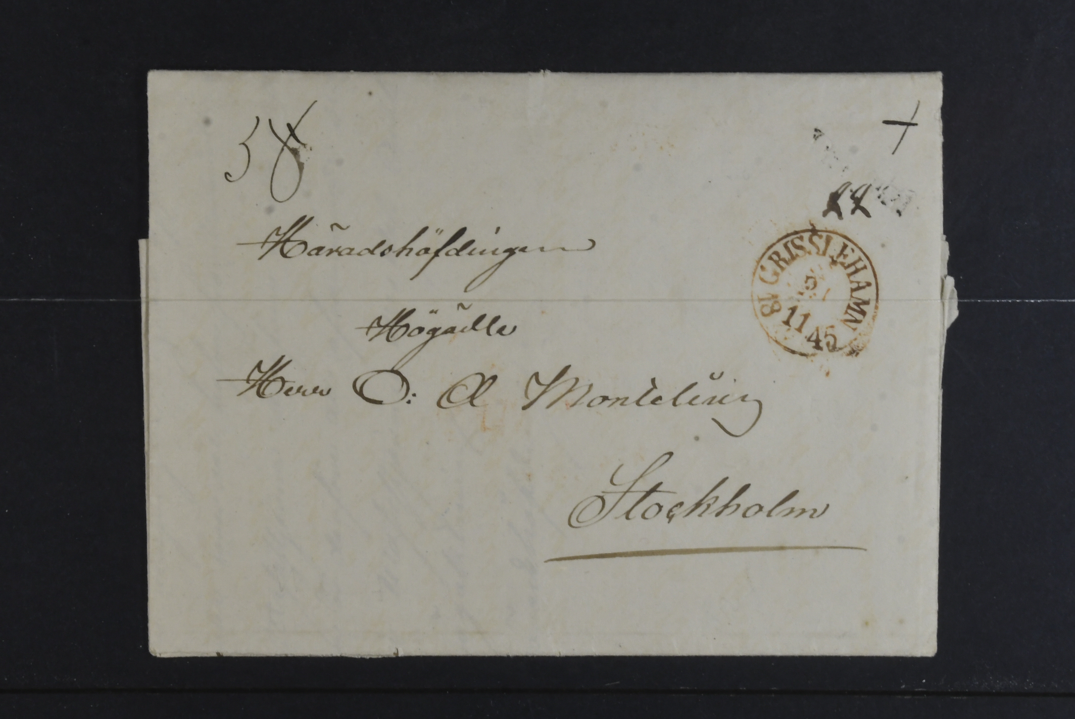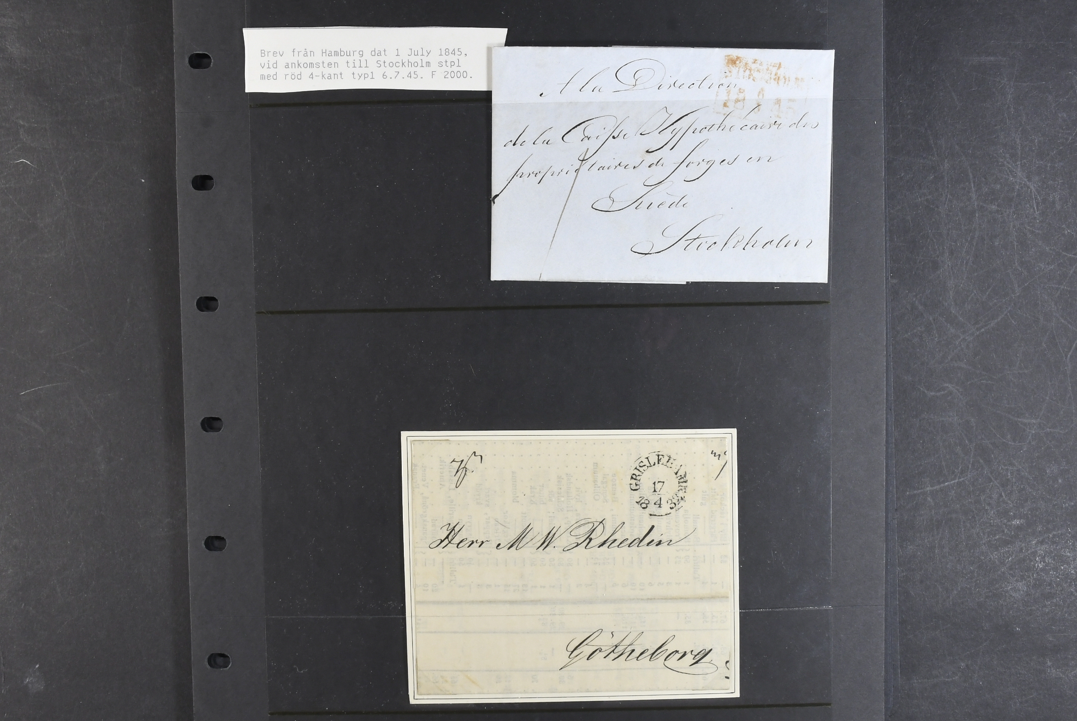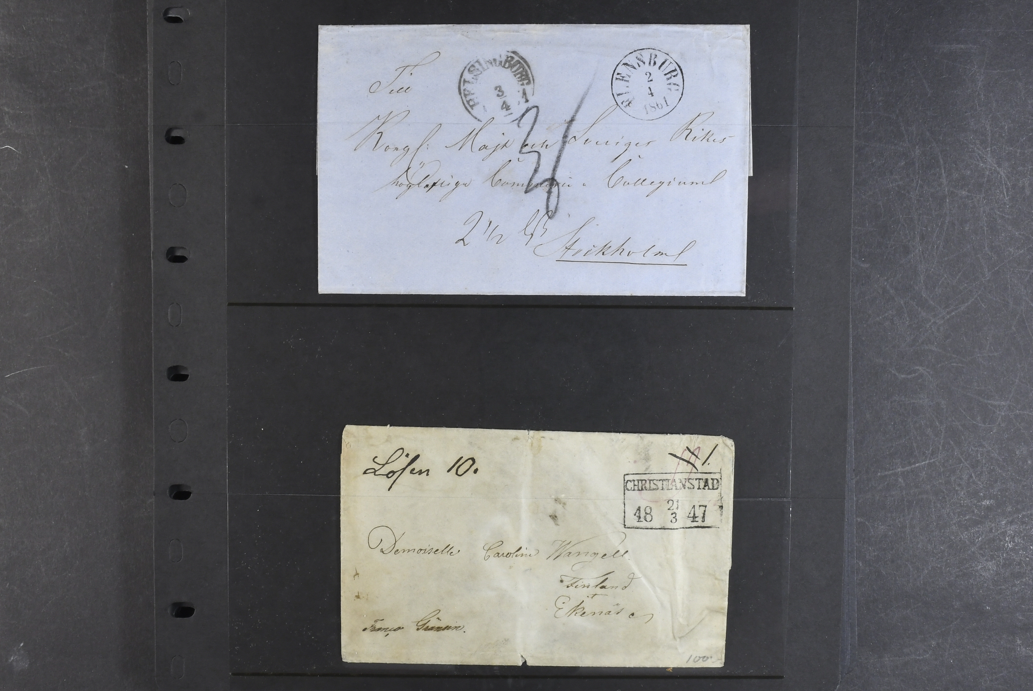 Sweden. Prephilately, collection FOREIGN-RELATED 1820–1861 on visir leaves. Mostly incoming covers and a few in transit to Finland. One cancelled with GISSLEHAMN in red colour in 1845. (14)