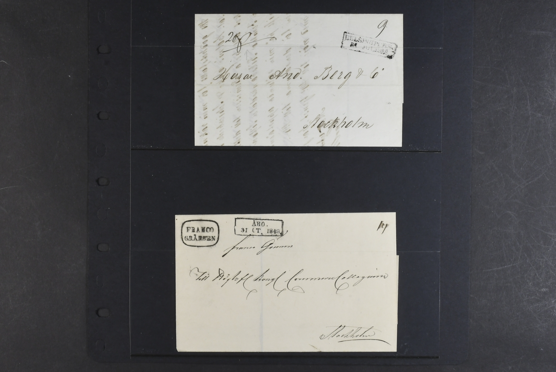 Sweden. Prephilately, lot on visir leaves. Eight covers sent to/from Finland, 1838–1867, incl. one sent from Denmark to Finland. The entire lot is presented at www.philea.se. (8)