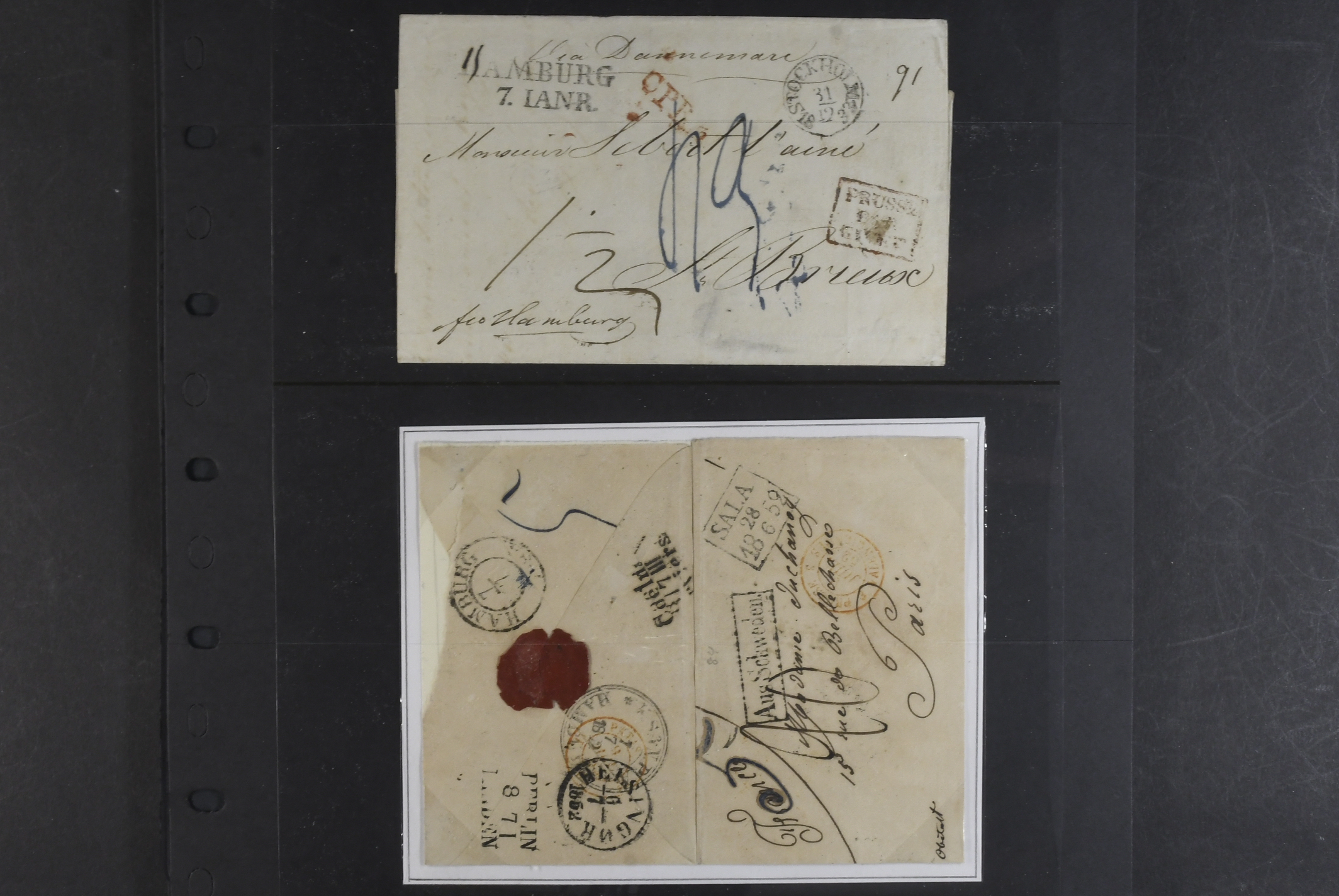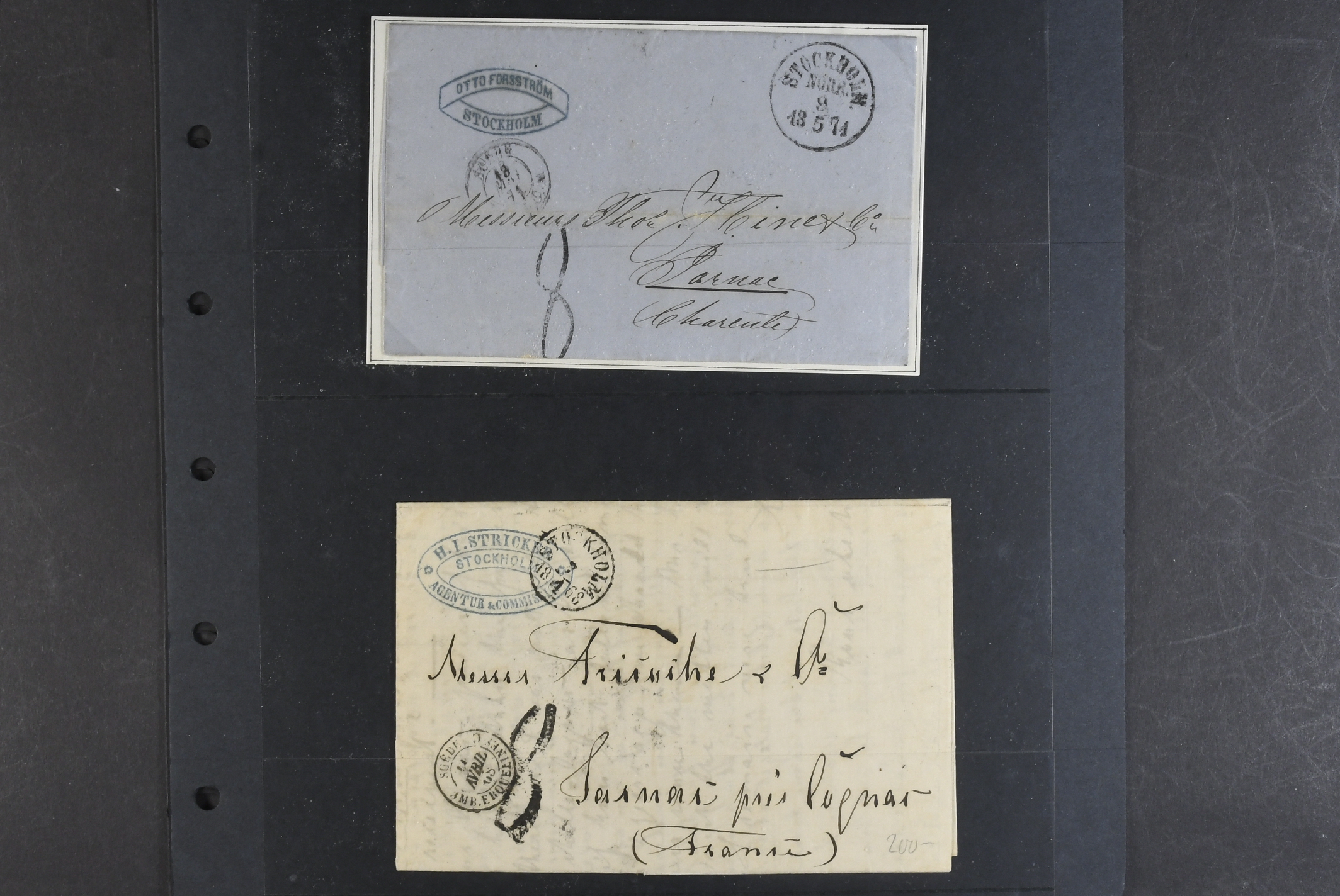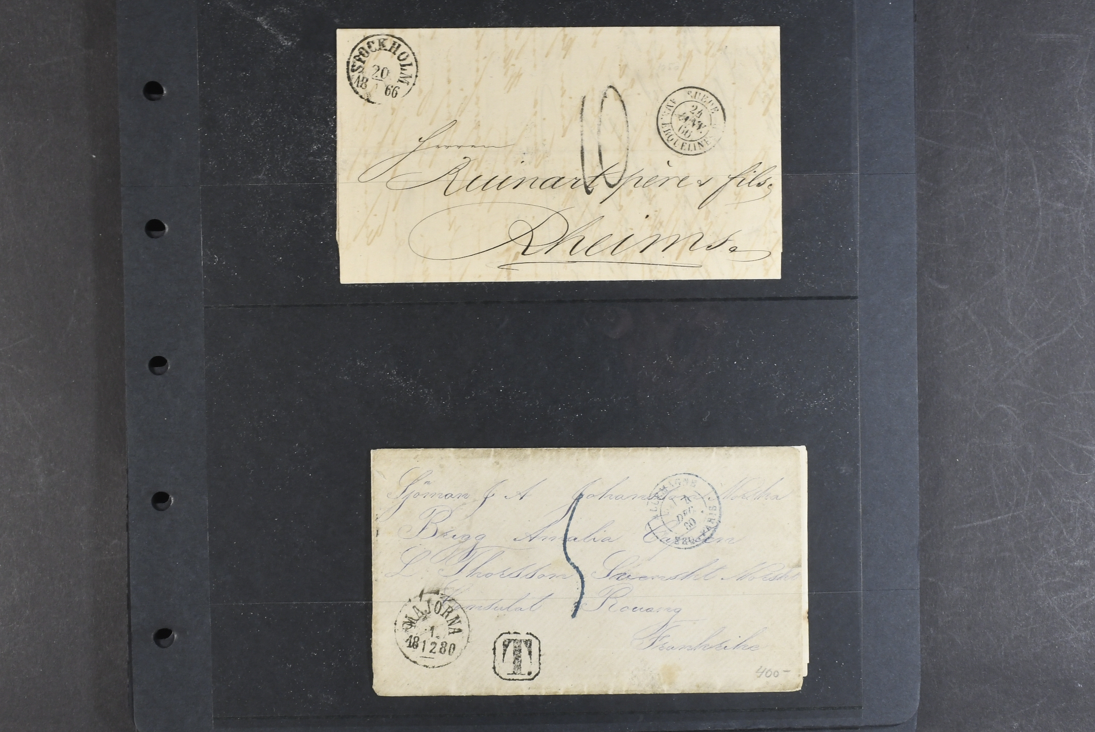 Sweden. Prephilately, lot on visir leaves. Eleven covers sent to/from France, 1831–1880. The entire lot is presented at www.philea.se. (11)