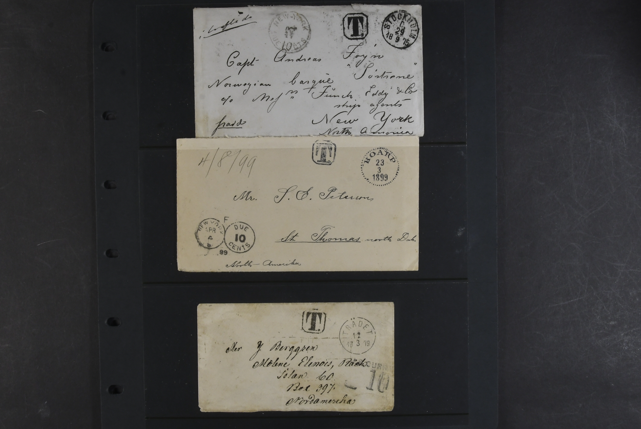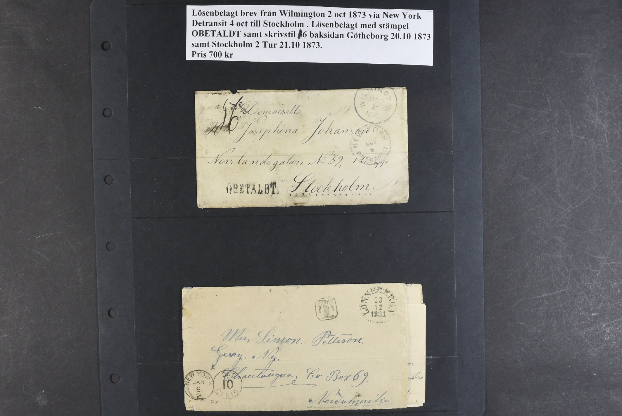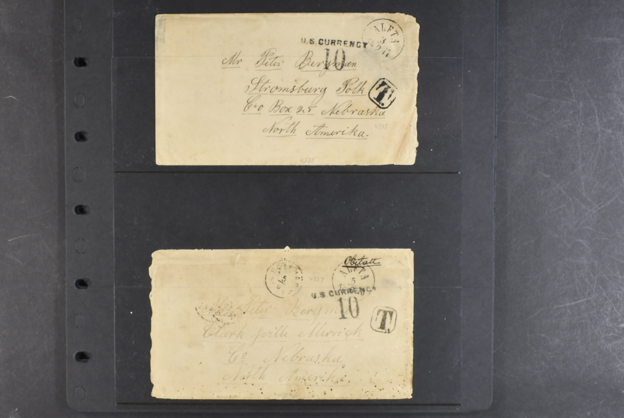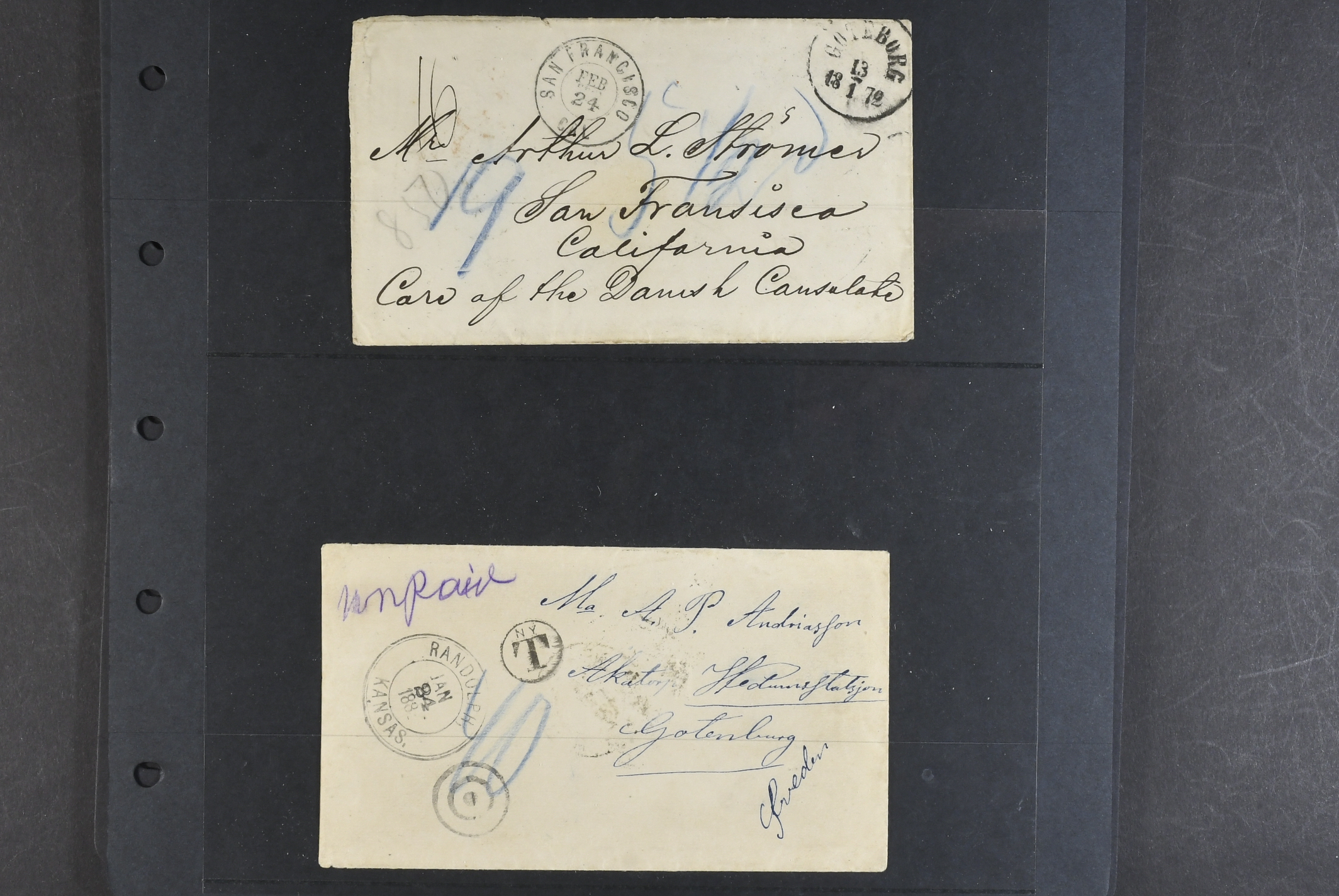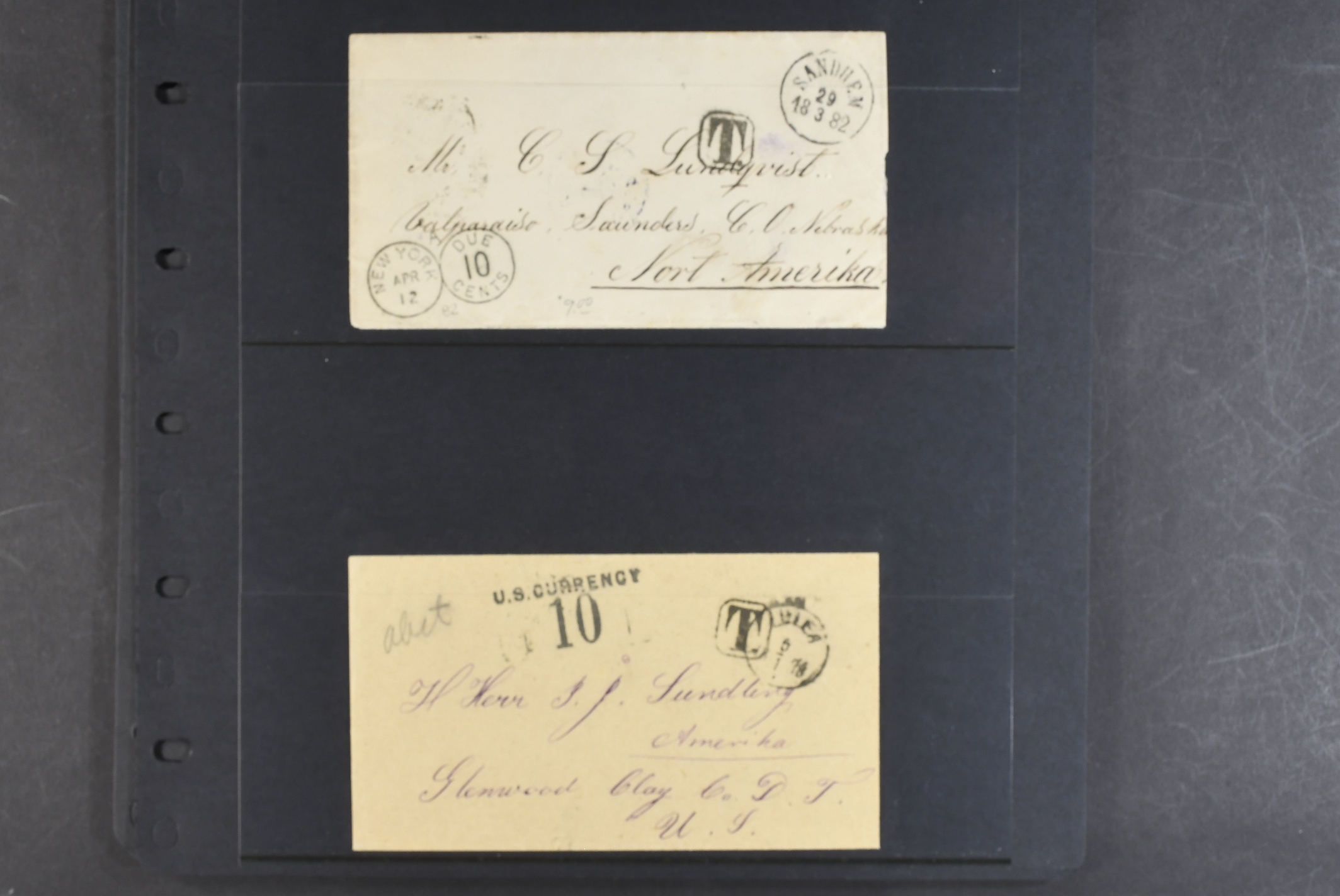 Sweden. Prephilately, lot on visir leaves. Thirteen covers sent to/from USA, 1872–1882, plus one incoming cover from USA with the stamps removed. The entire lot is presented at www.philea.se. (13)