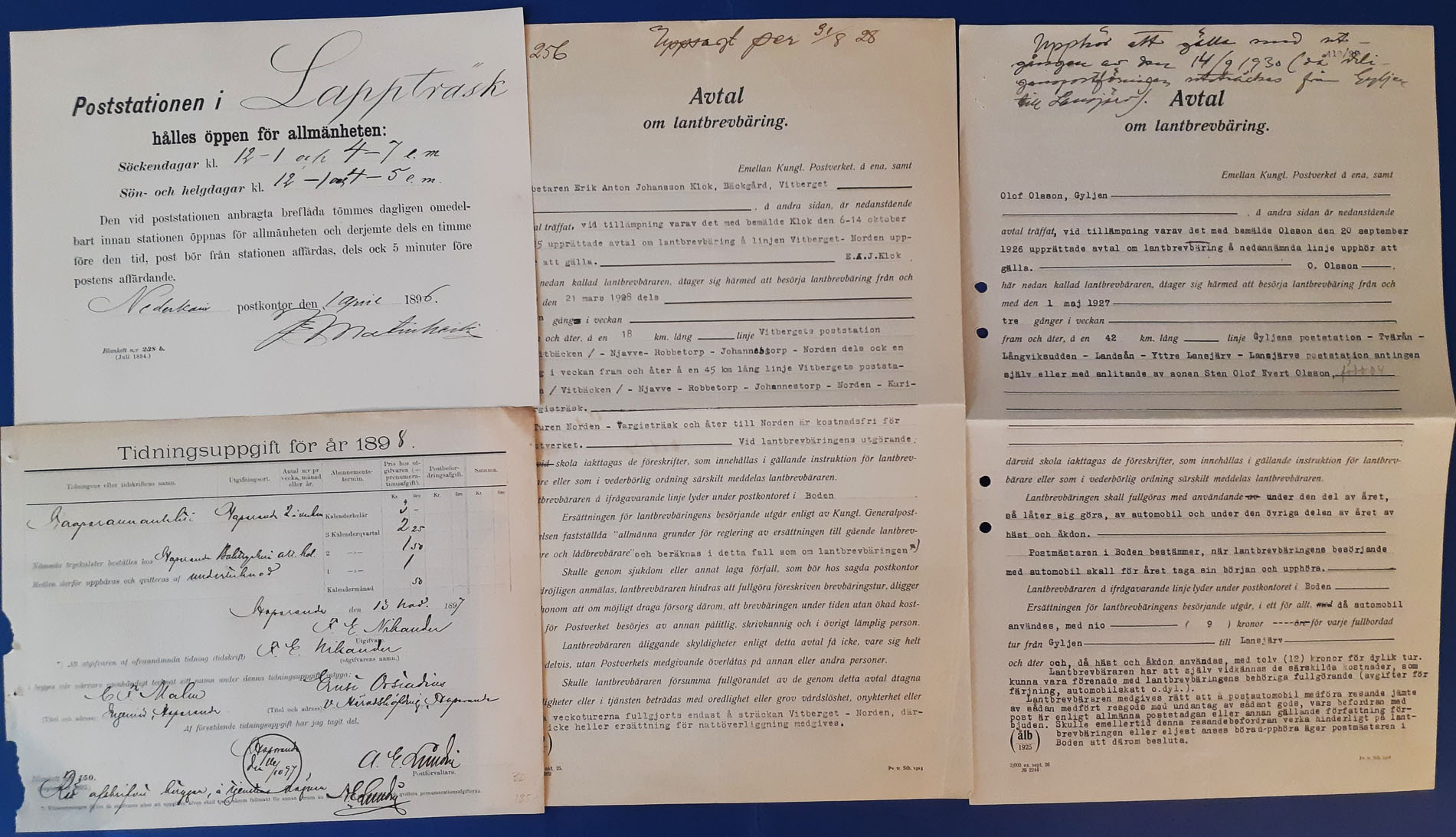 Sweden. Postal forms and letters, many related to Haparanda and Älvsbyn, 1896–1964, incl. with postmarks HARRELEFORSEN, LILLPITE, LÅNGTRÄSK and VIDSEL. Also two non-related telegrams. Looks interesting.