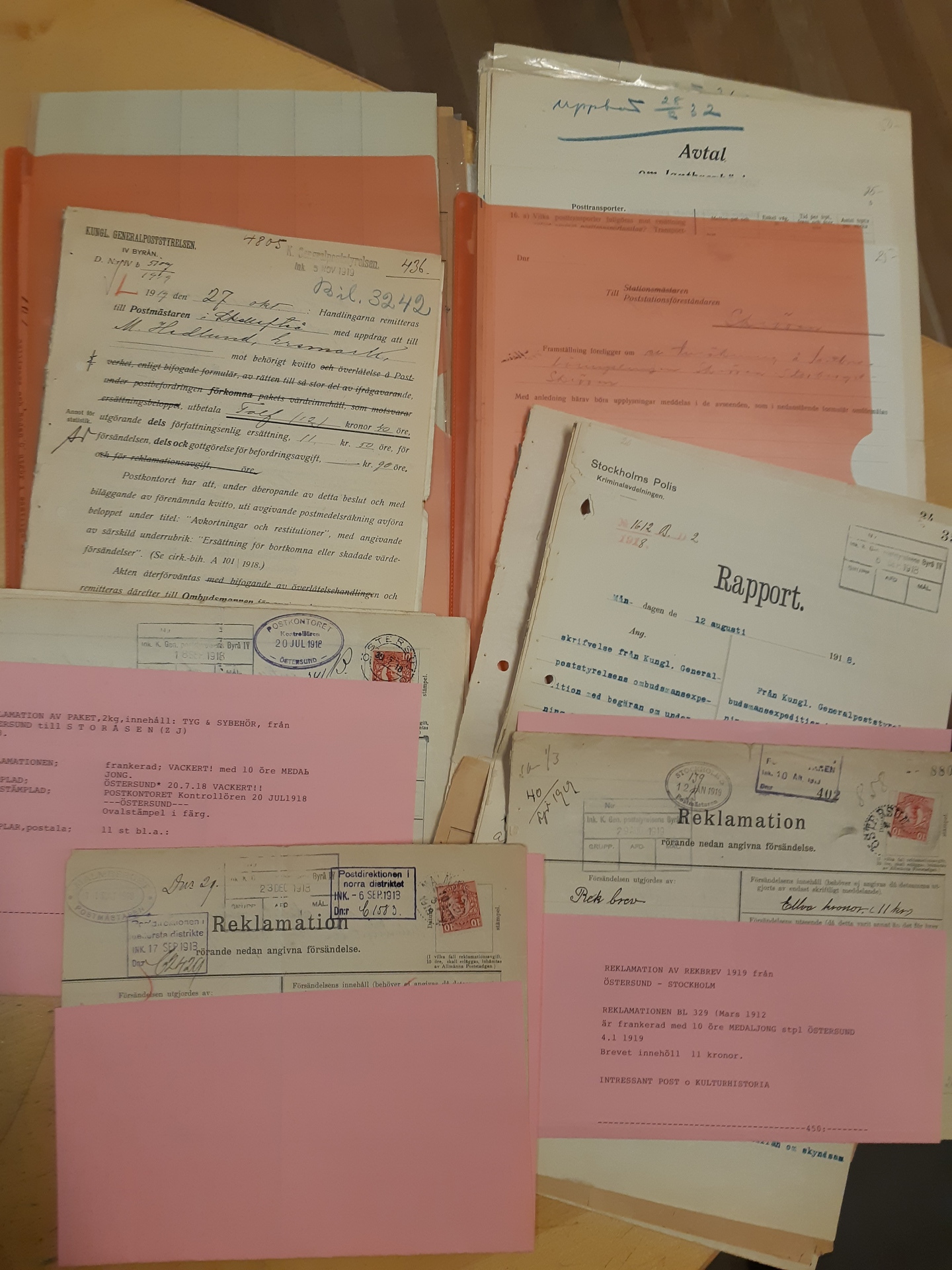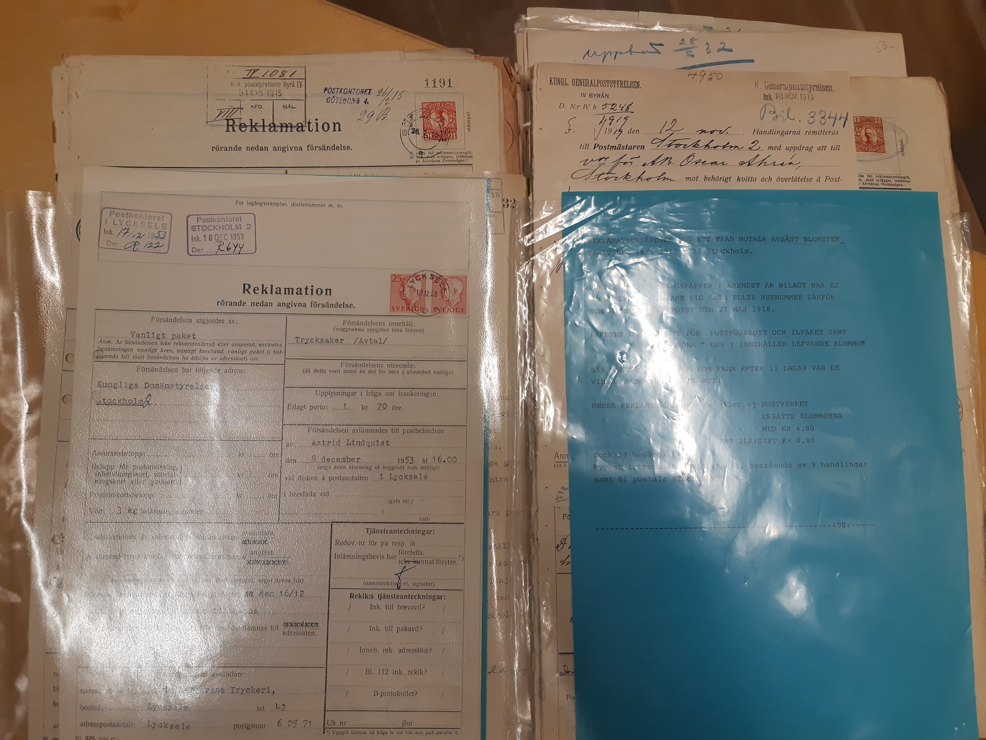 Sweden. Postal forms, accumulation in small box. Receipts, early announcements, many used forms for complaints partly with investigations, plus internal forms used in mostly BD and Z counties. Looks interesting. Somewhat mixed quality. (100+)
