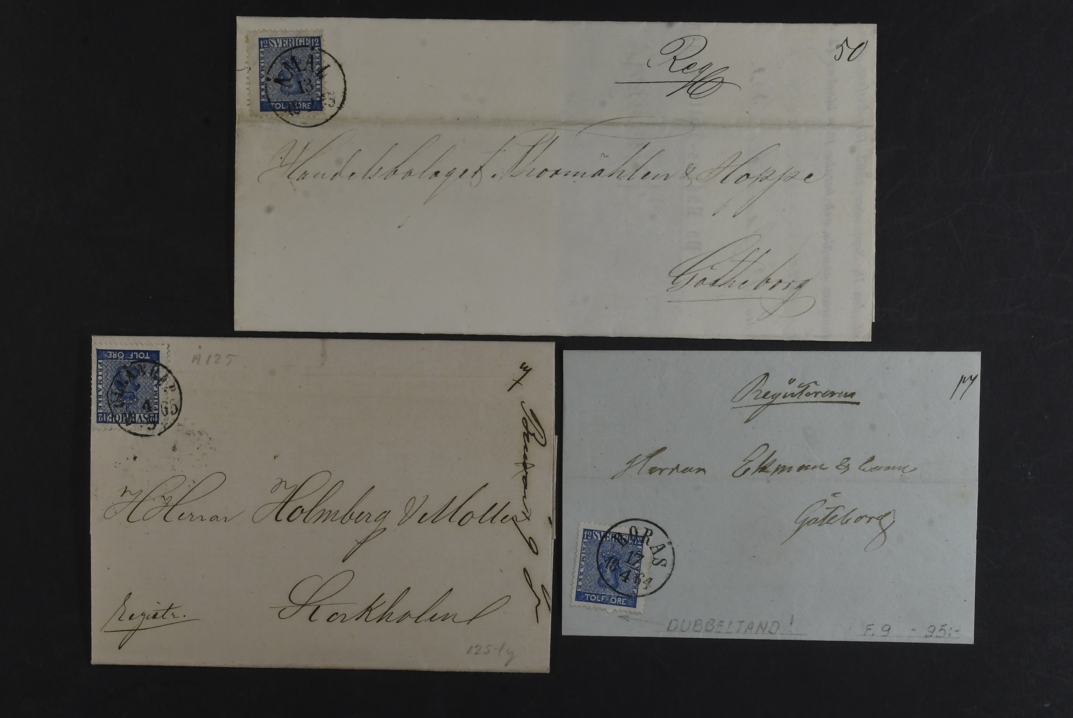Sweden. Facit 9 on cover, 12 öre on three covers with notation 'Registreras' (or similiar) sent from BORÅS, ULLÅNGER and ÅMÅL, respectively. (3).