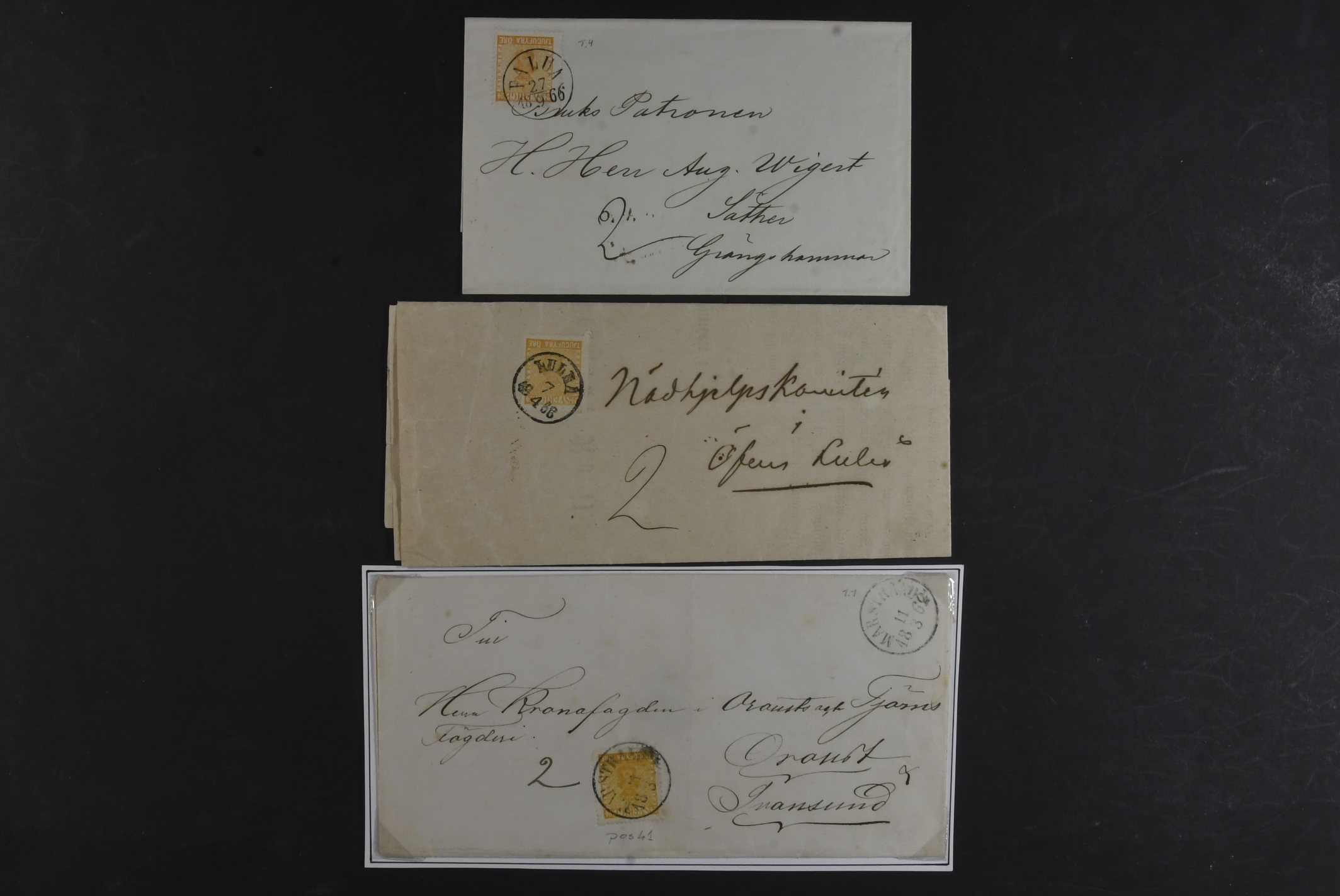 Sweden. Facit 10 on cover, 24 öre on five beautiful covers with double postage, 1858–1870. (5).