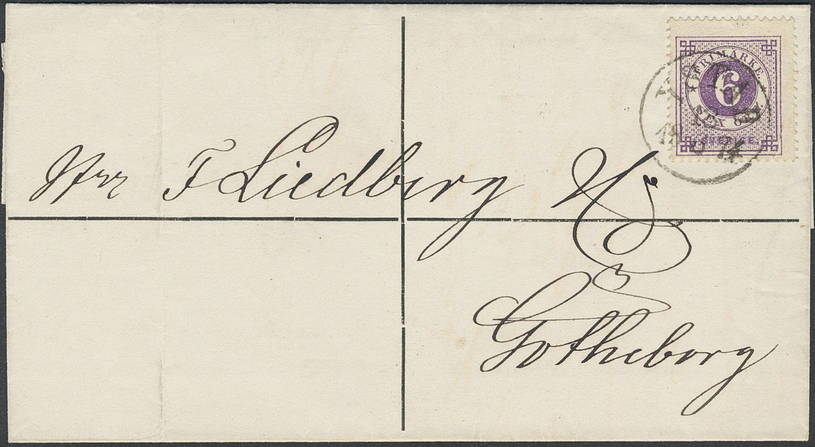 Sweden. Facit 20e on cover, 6 öre reddish violet on beautiful printed matter sent from YSTAD 18.6.1874 to Gothenburg. SEK 2500