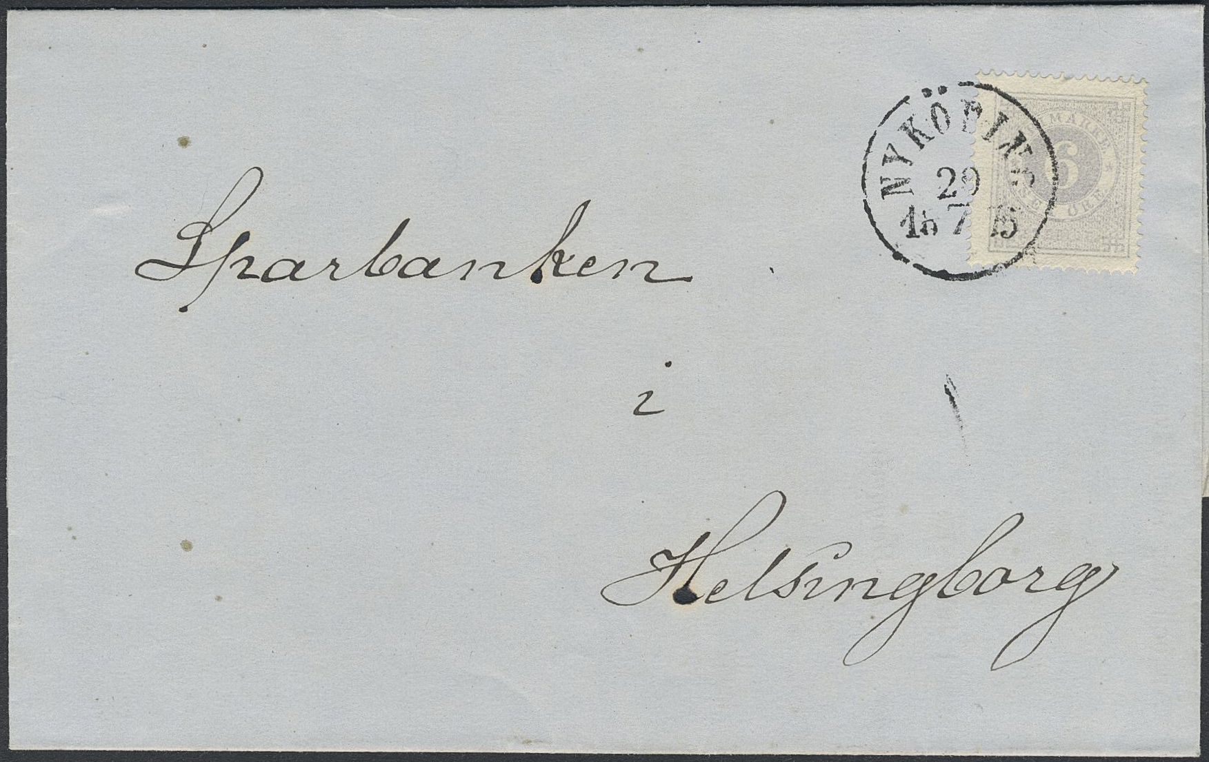 Sweden. Facit 20i on cover, 6 öre dull blue-lilac on beautiful printed matter sent from NYKÖPING 20.7.1875 to Helsingborg.
