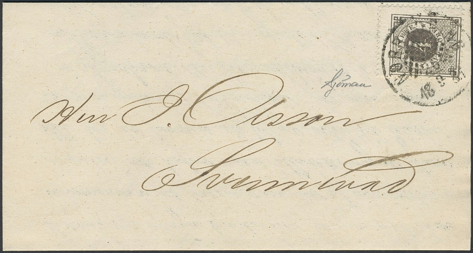 Sweden. Facit 29a2 on cover, 4 öre grey-black. Printed matter sent from NORRKÖPING 26.9.1881 with beehive pmk to Svennestad. Signed Sjöman.