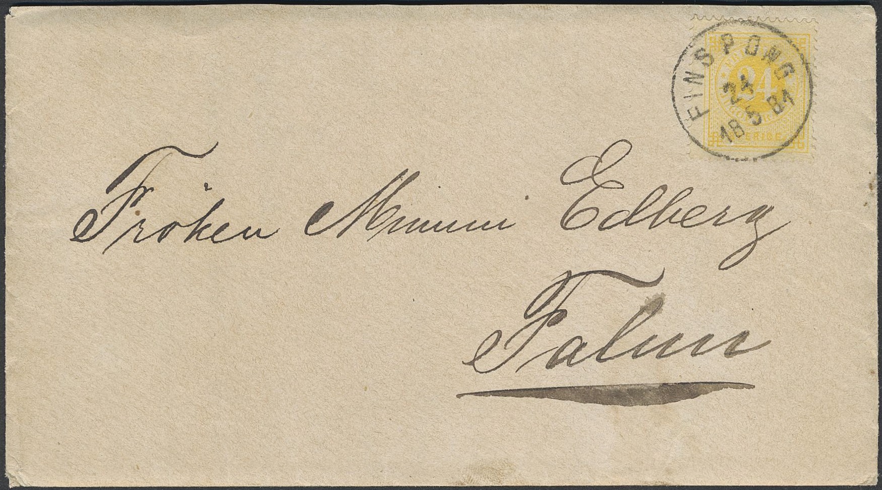 Sweden. Facit 34 on cover, 24 öre very beautiful double rate cover sent from FINSPONG 24.5.1881 to Falun. Slightly aged.