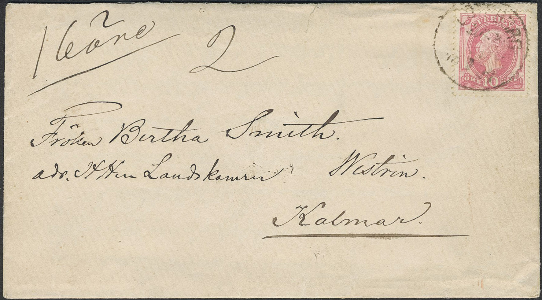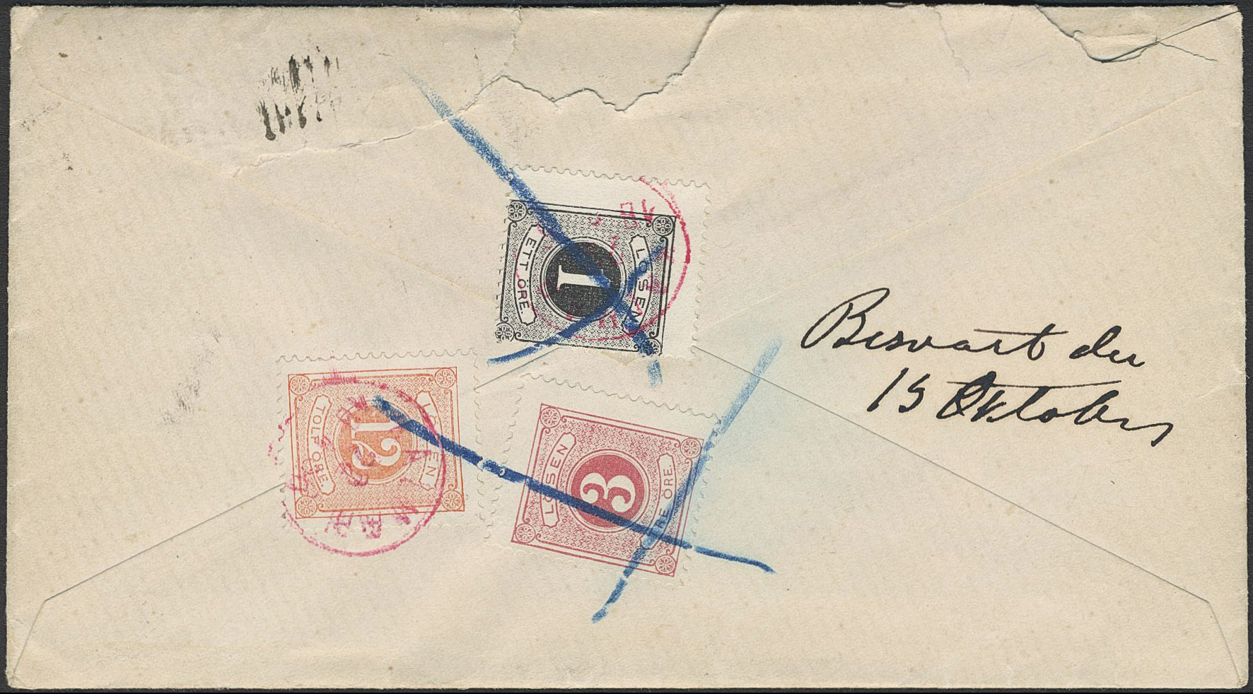 Sweden. Postage due Facit L11, 12, 15 on cover, 1+3+12 öre as postage due on insufficiently prepaid cover sent from Gothenburg to KALMAR 22.4.1886 (red pmks).