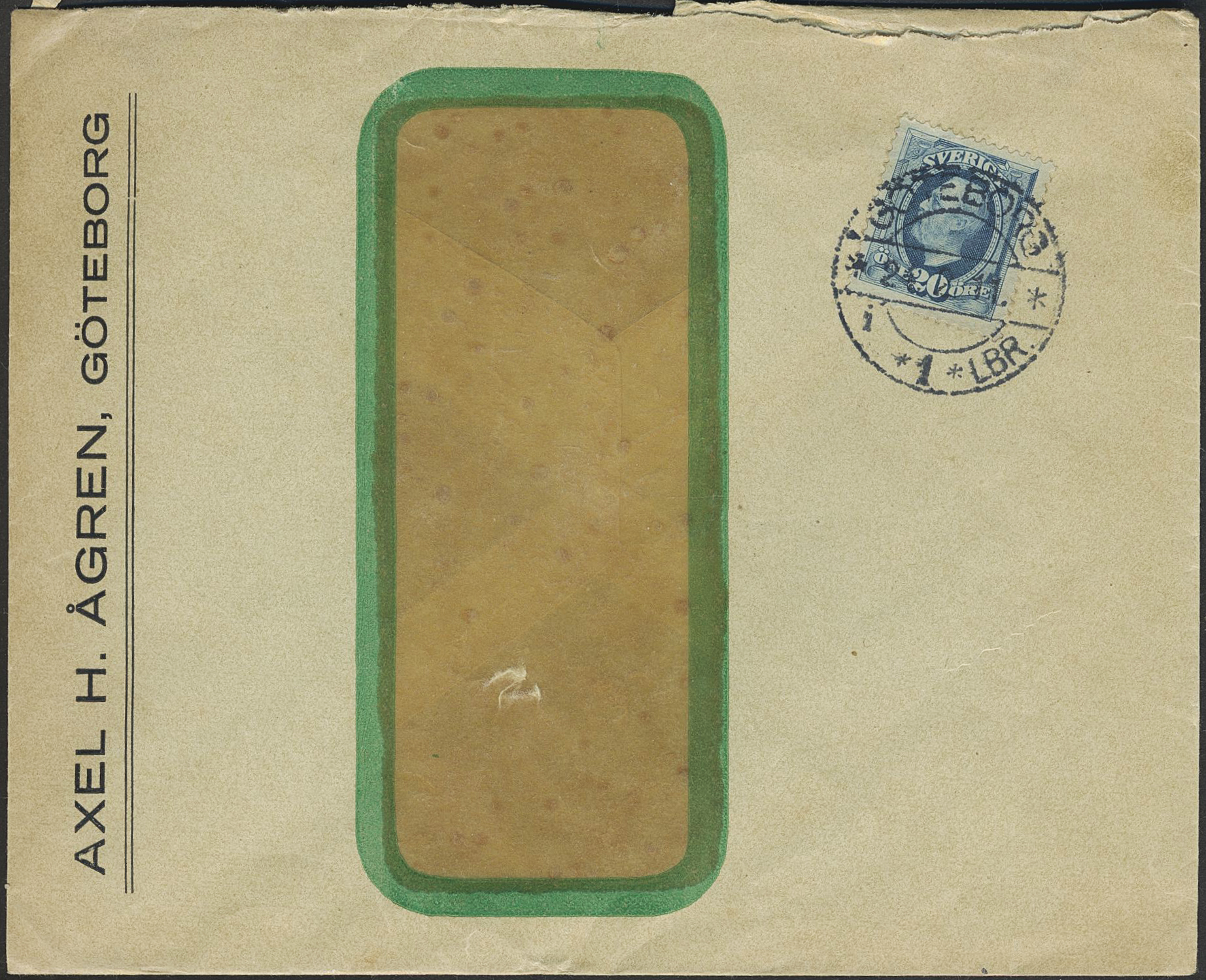 Sweden. Facit 56 on cover, 20 öre on unusually early window envelope, sent to France with arrival pmk 27.2.11 on the reverse.