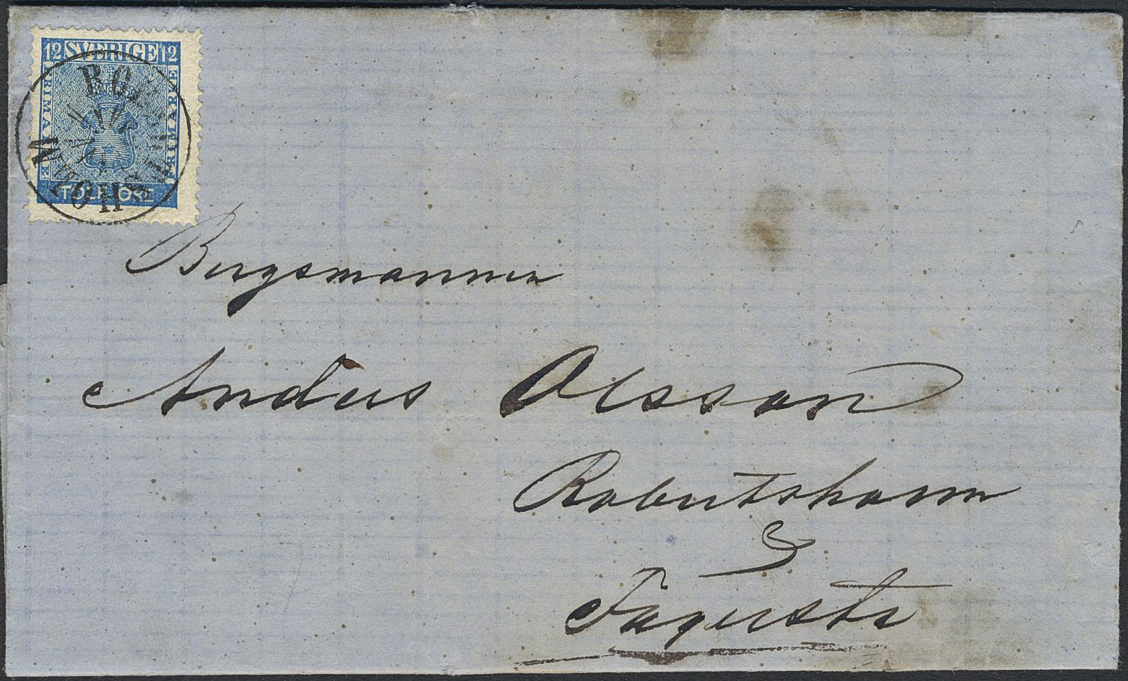 Sweden. Facit 9, X county. ROBERTSHOLM, ray postmark. Beautiful cover sent to Fagersta. Postal: 3000:-