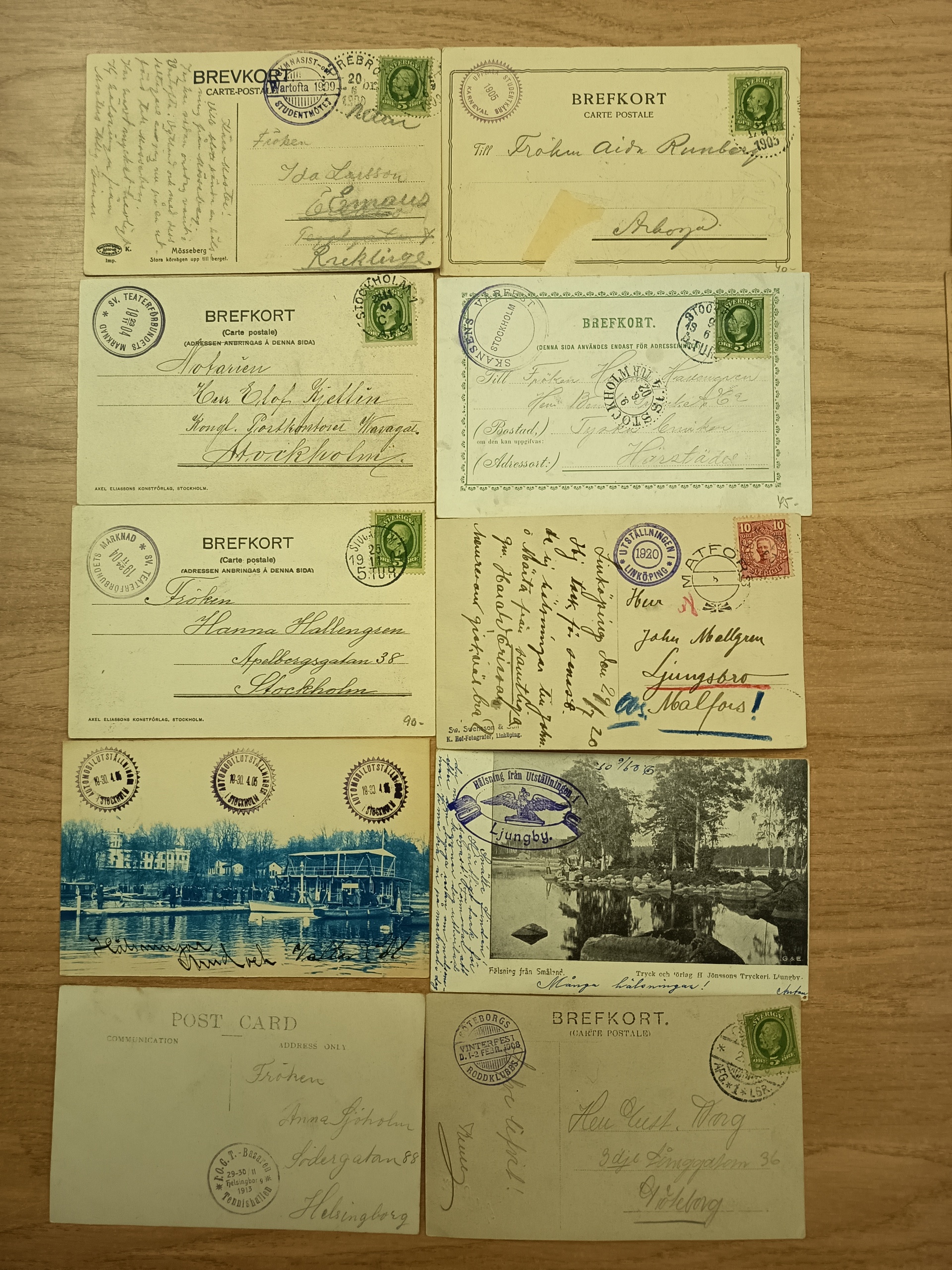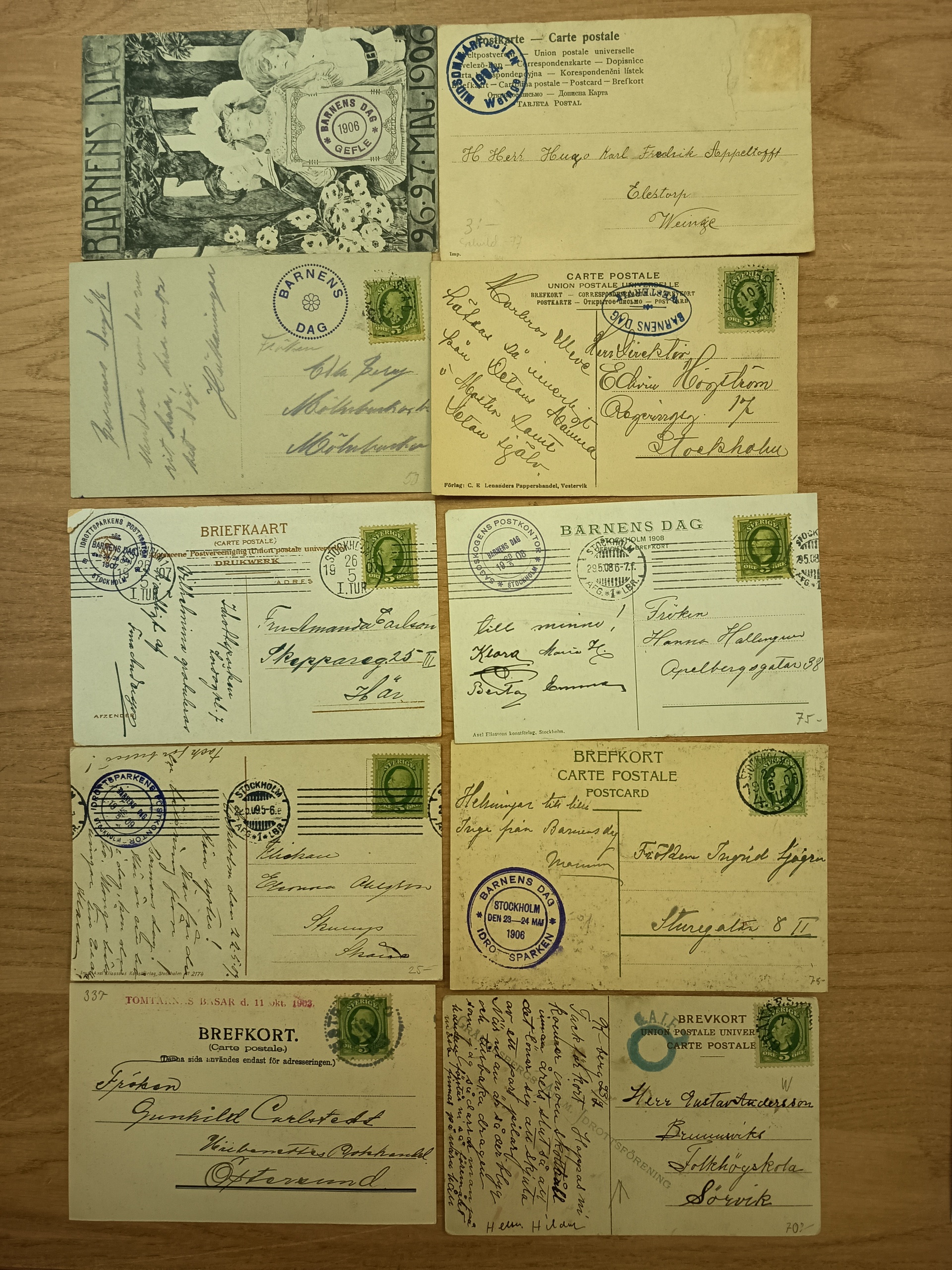 Sweden. Cinderella. Lot bazaar, exhibition, childrens day, etc. cancellations on postcards, incl. better postcards. Please see a selection of scans at www.philea.se. Good quality. (38)
