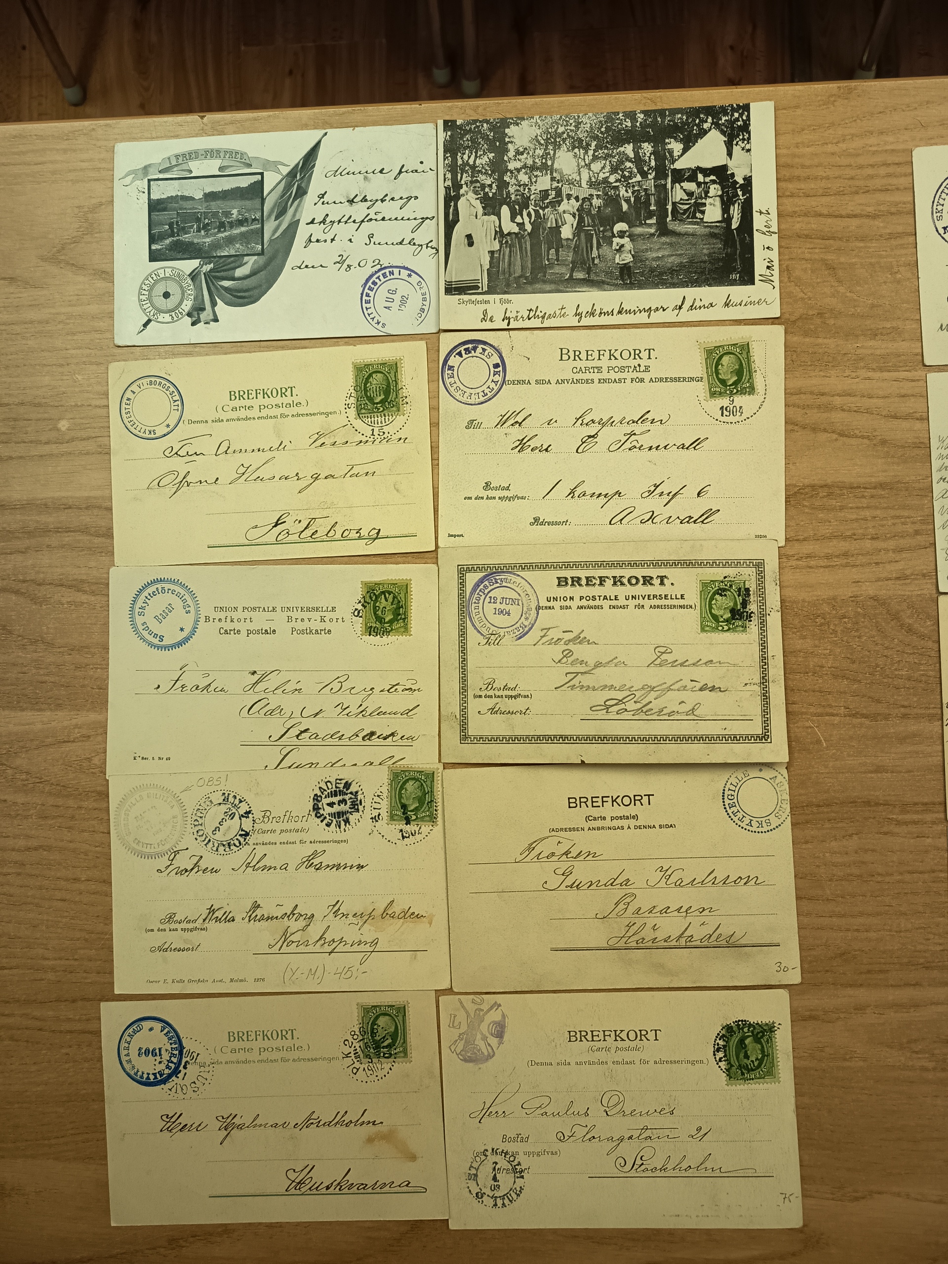 Sweden. Cinderella. Shooting clubs bazaar cancellation on postcards, incl. better cards. The entire lot is presented at www.philea.se. Good quality. (17)