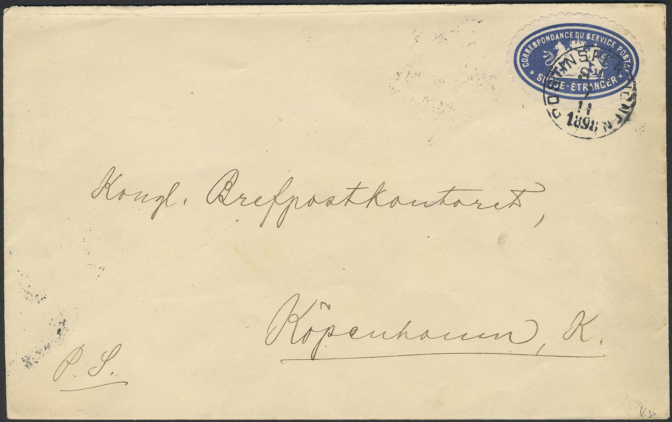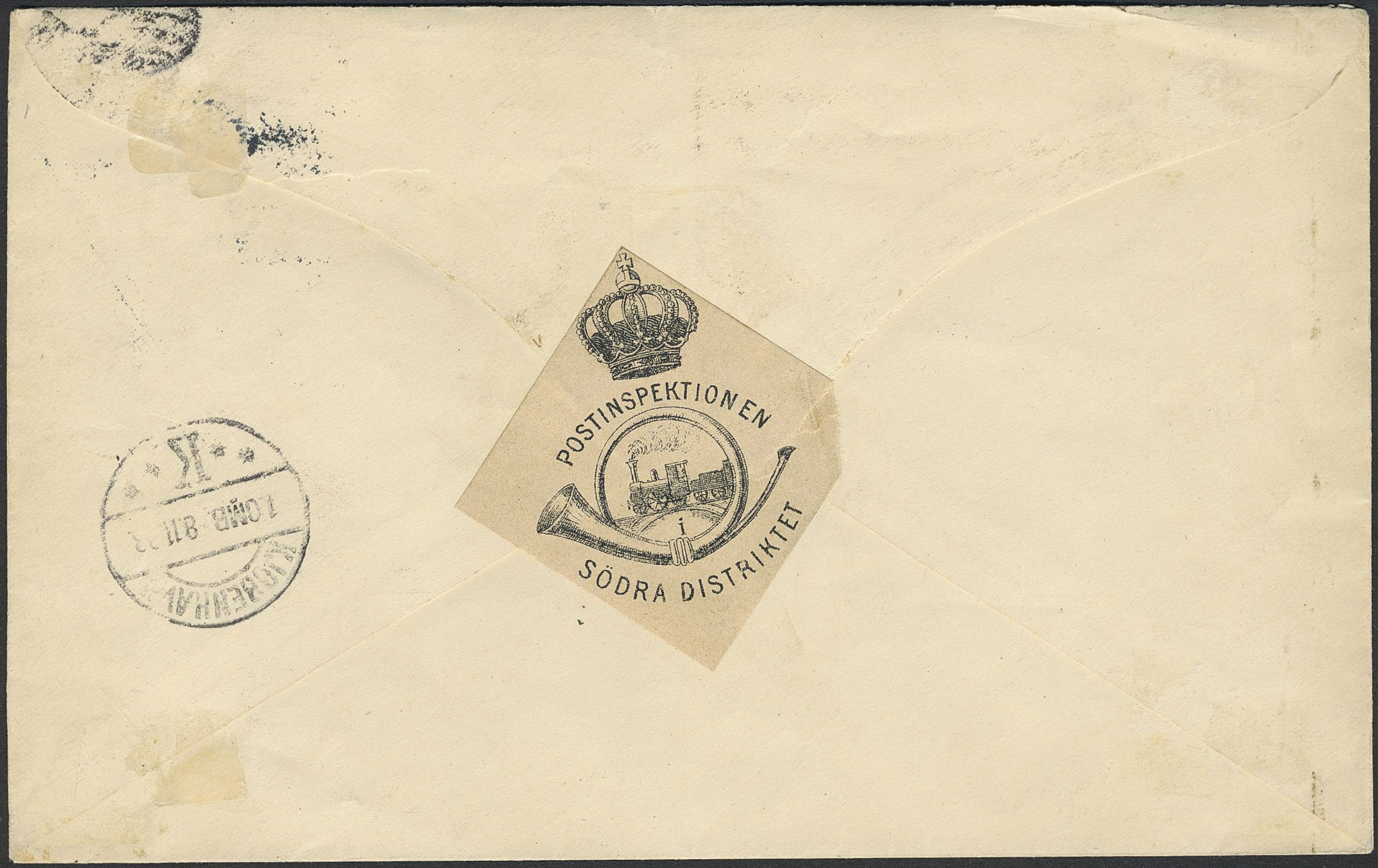 Sweden. Internal postal stationery (PS-försändelser) Facit PS2 on cover, Stamp for foreign postal official mail on cover sent from POSTINSPEKTIONEN 7.11.1898 to Denmark. On the reverse arrival mark and paper seal 'POSTINSPEKTIONEN SÖDRA DISTRIKTET'.