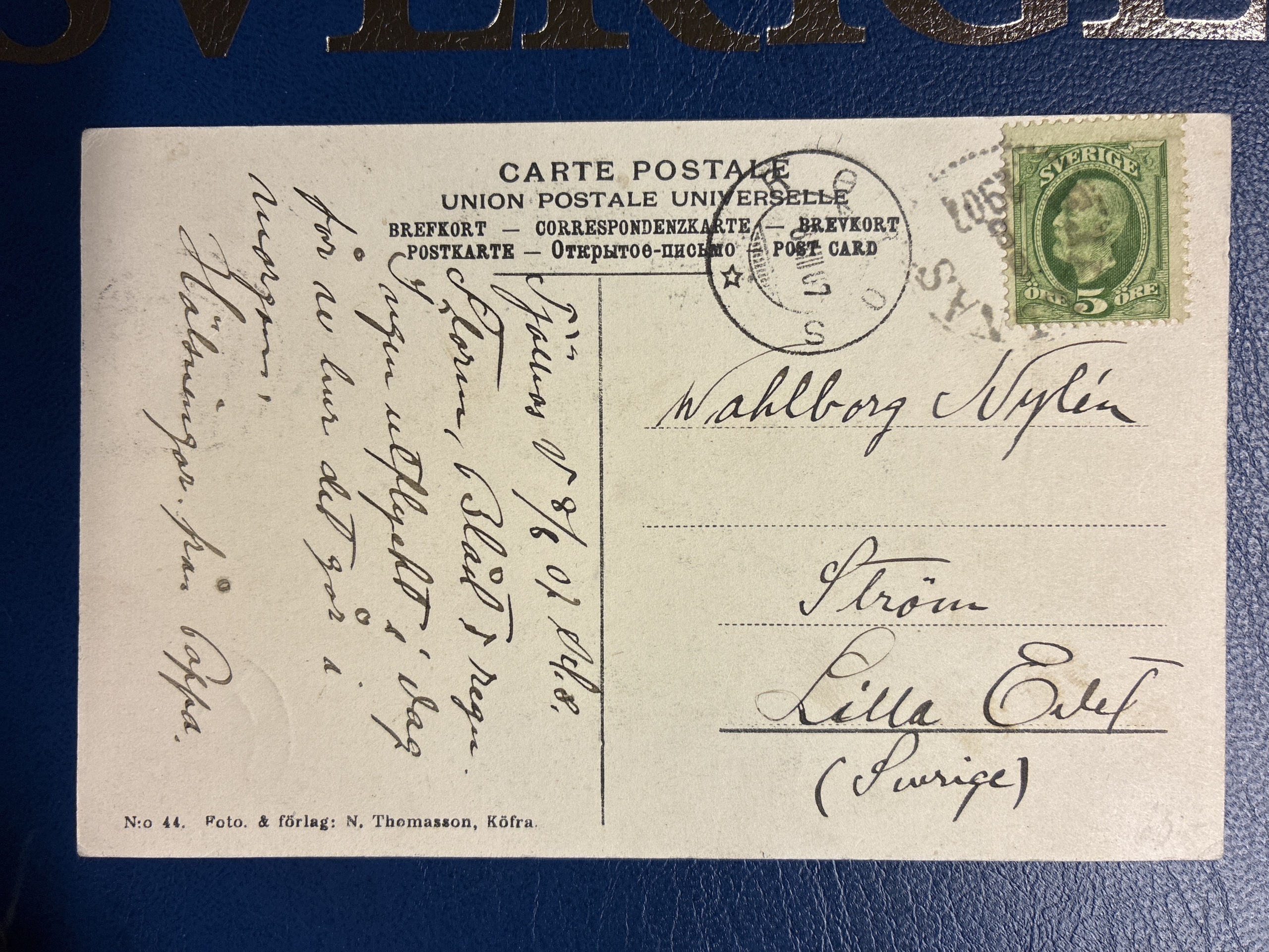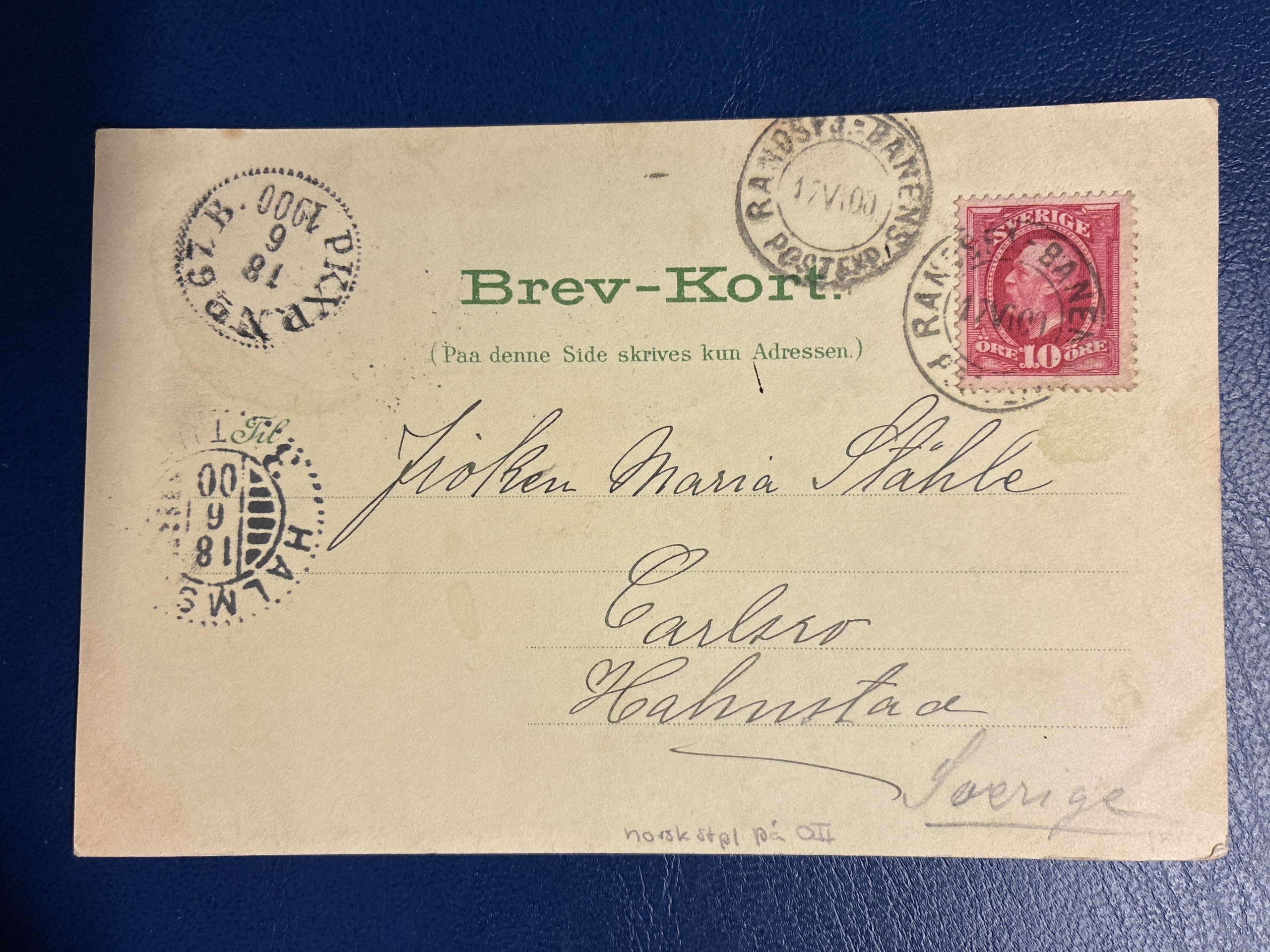 Sweden. Cancellations, lot 1900–1907. Three postcards and one letter with Norwegian cancellations on Oscar II öre transfer. Nice lot. The entire lot is presented at www.philea.se.