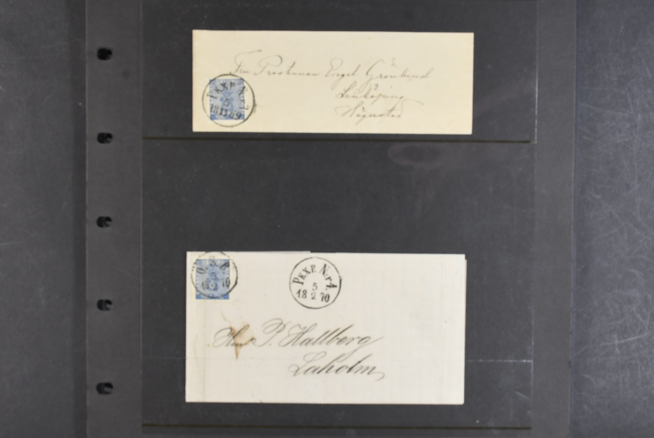 Sweden. Cancellations, collection RAIL WAY 1–3 on covers on visir leaves. The entire lot is presented at www.philea.se. Mostly good quality. (36)