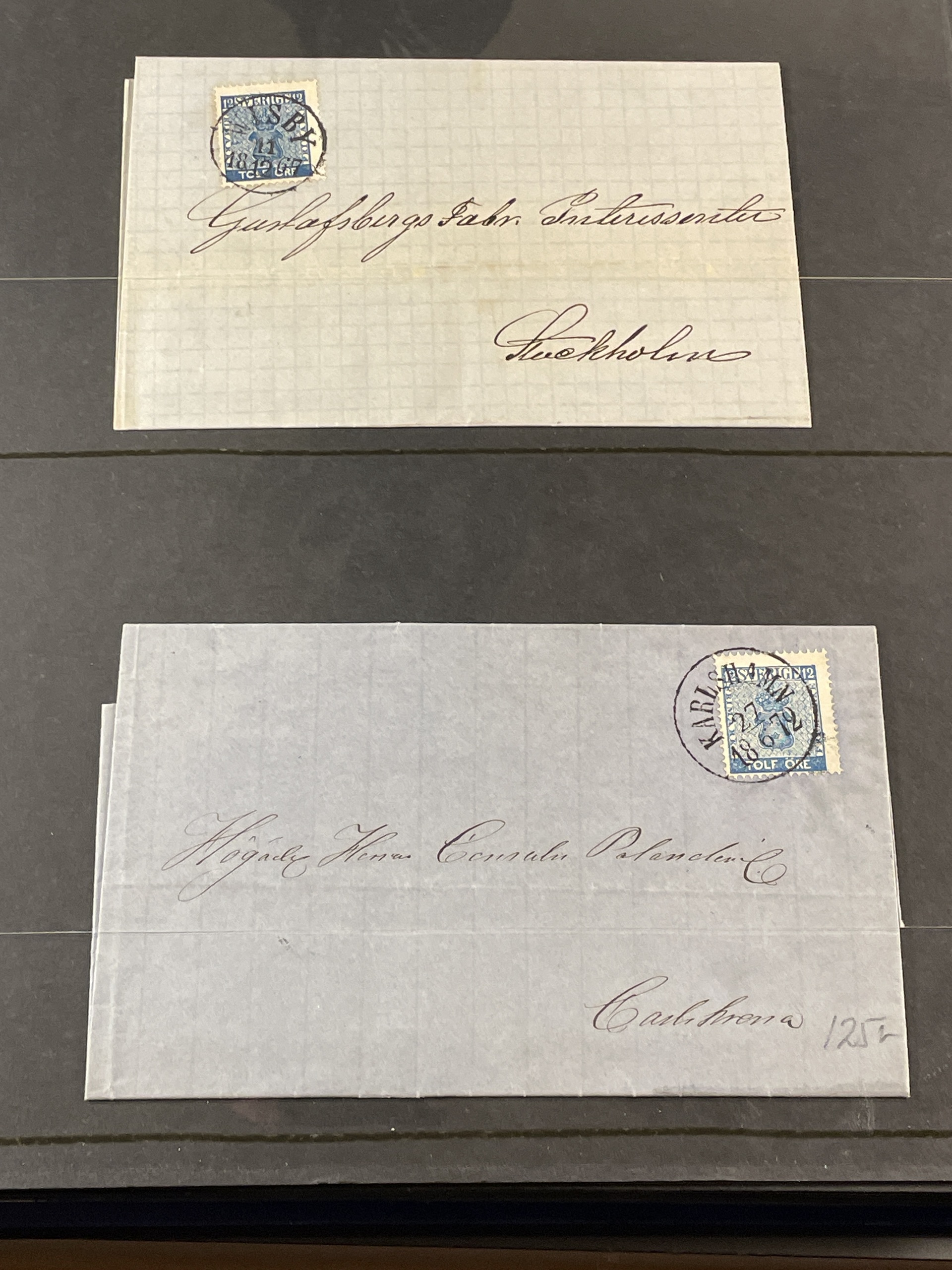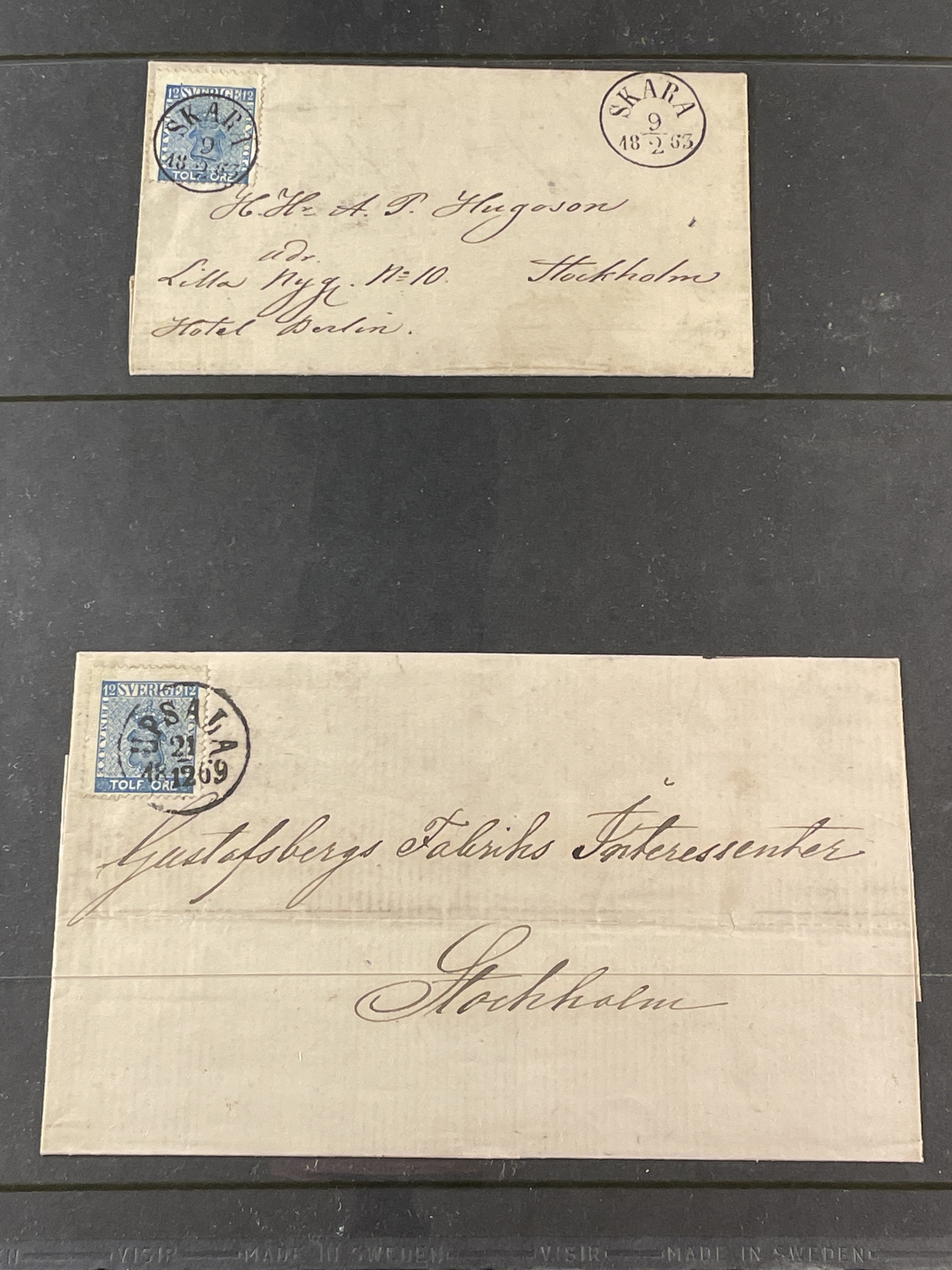 Sweden. Collection covers 12 öre COAT-OF-ARMS in visir album. Incl. a few 3 öre Lying Lion. Mostly good quality. (89)