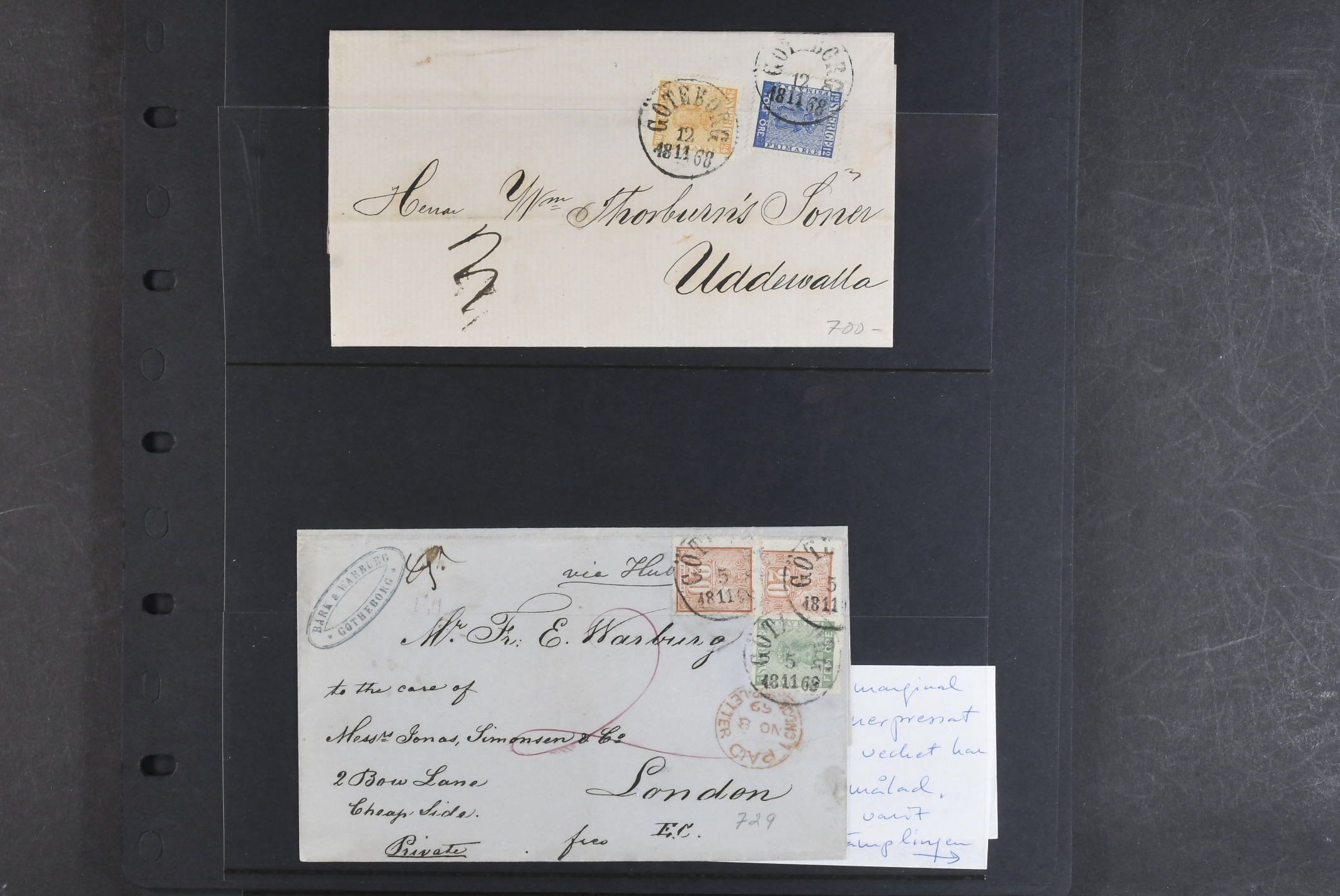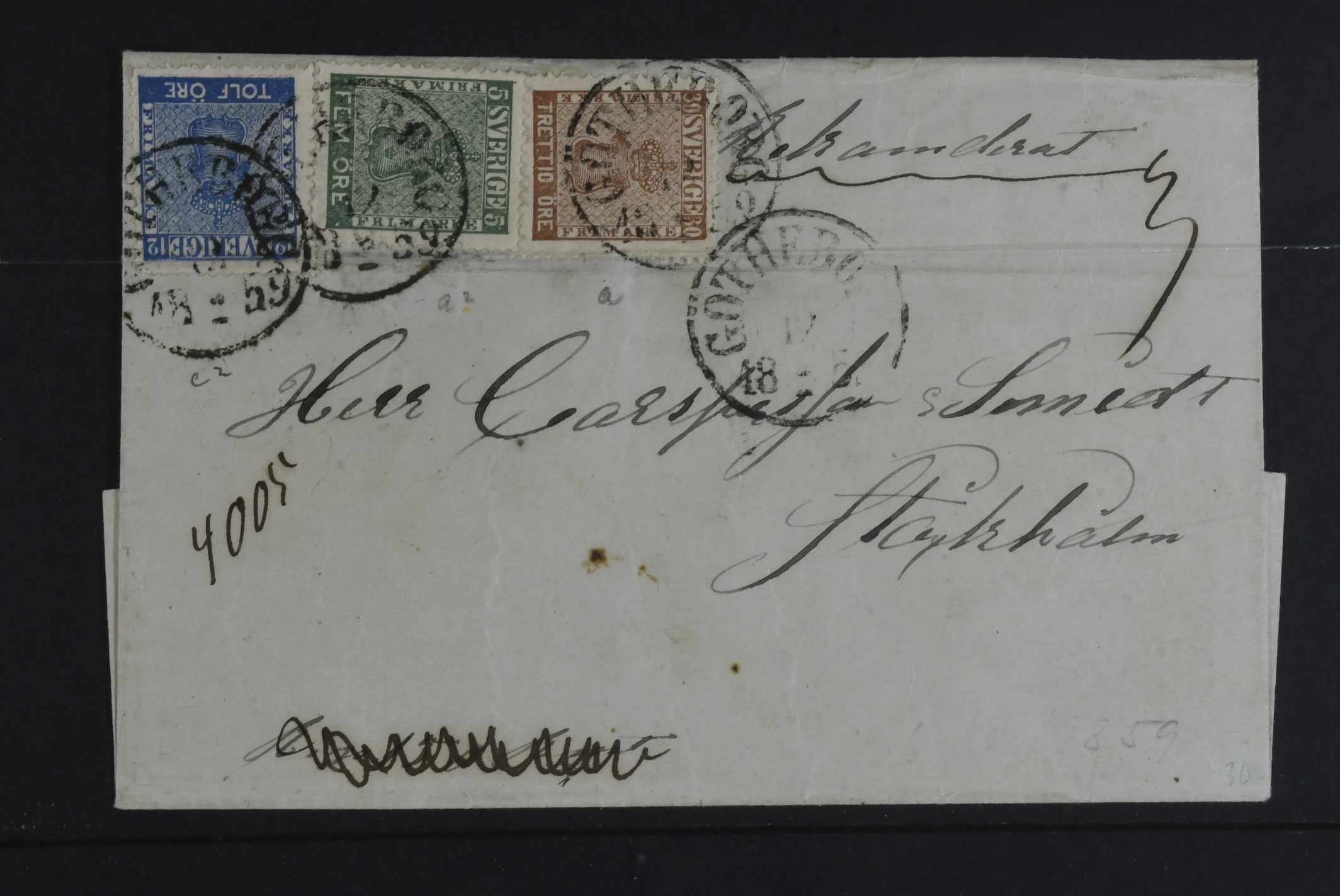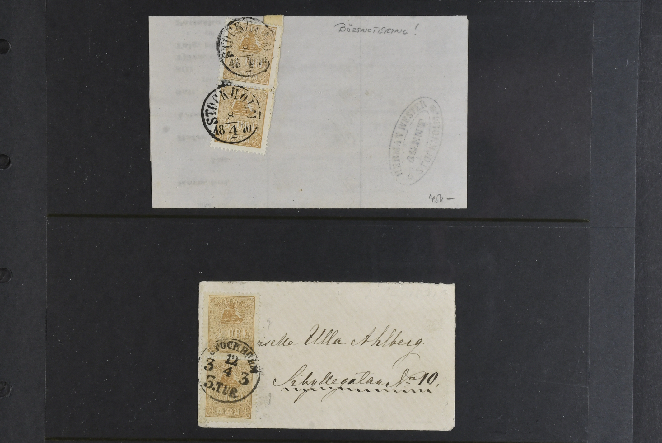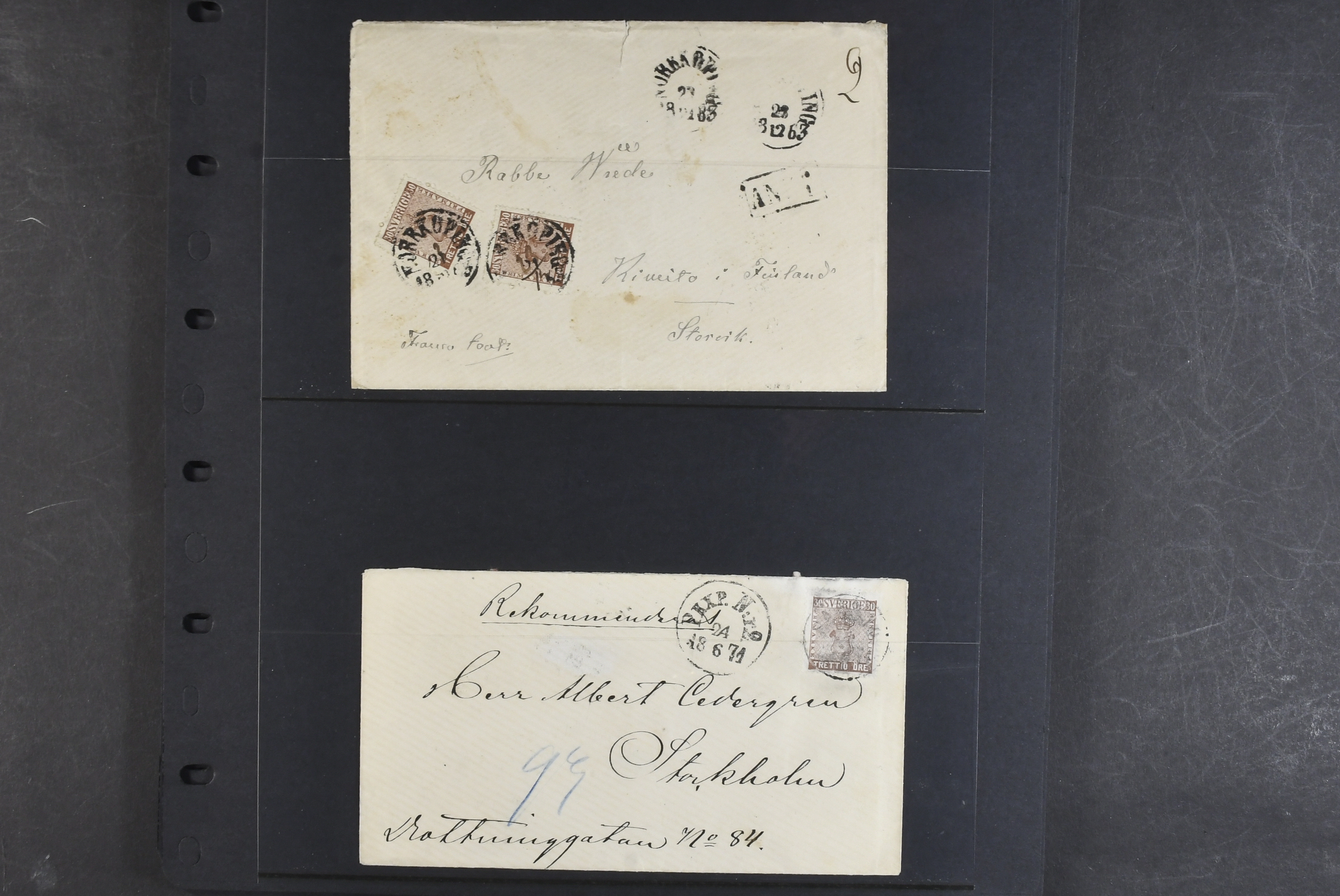 Sweden. Lot covers COAT-OF-ARMS on visir leaves. One cover with ink cancellation 'makulerat', covers sent abroad, registered, etc. The entire lot is presented at www.philea.se. Somewhat mixed quality. (12)