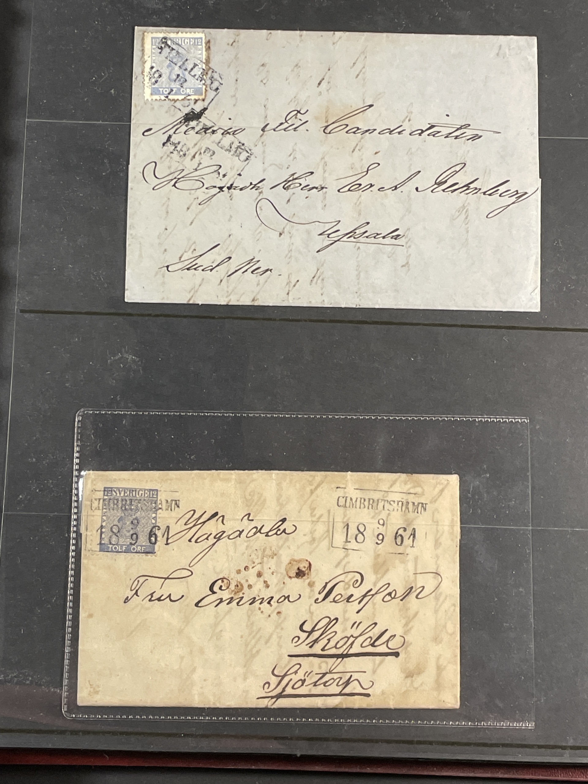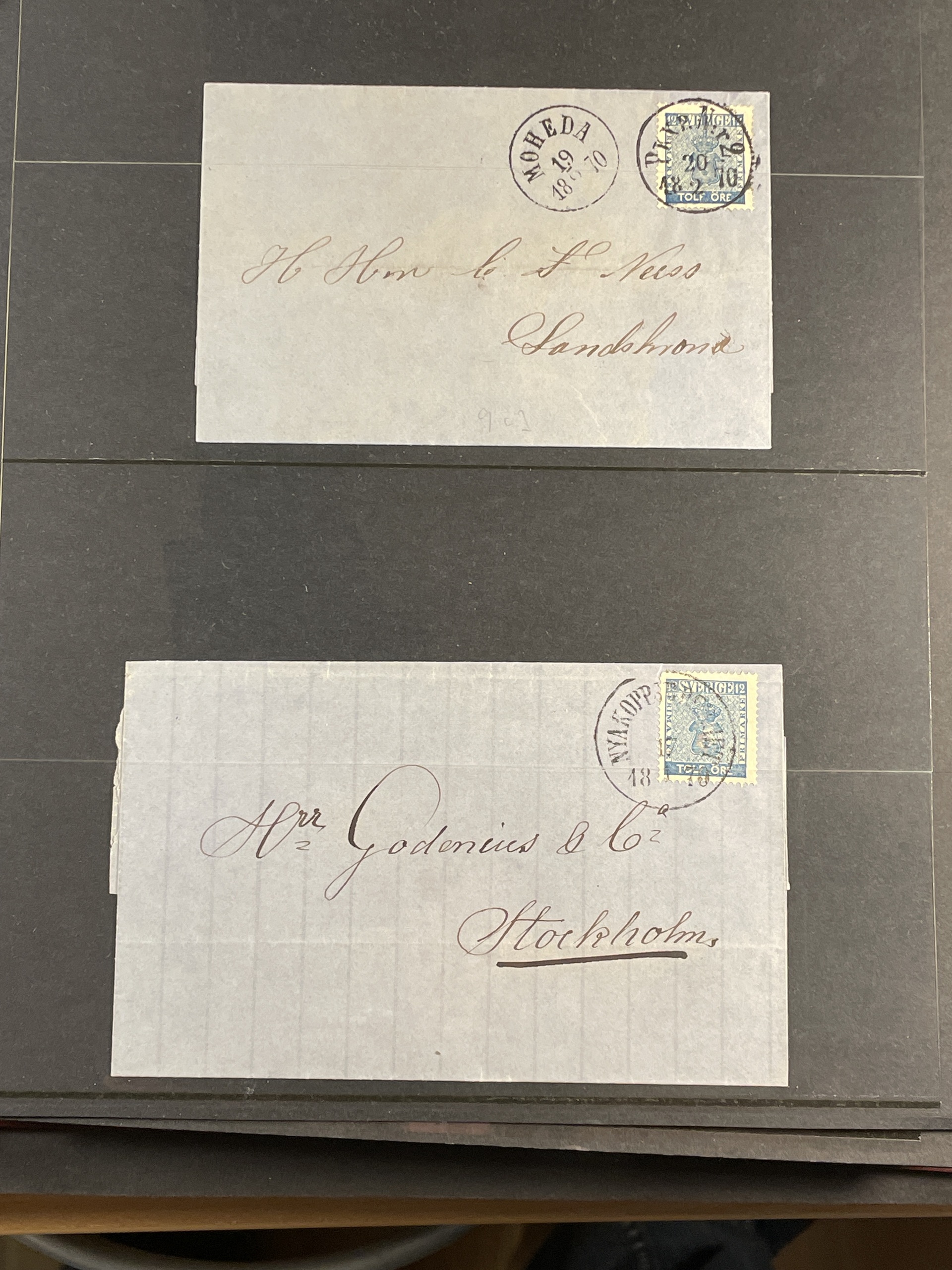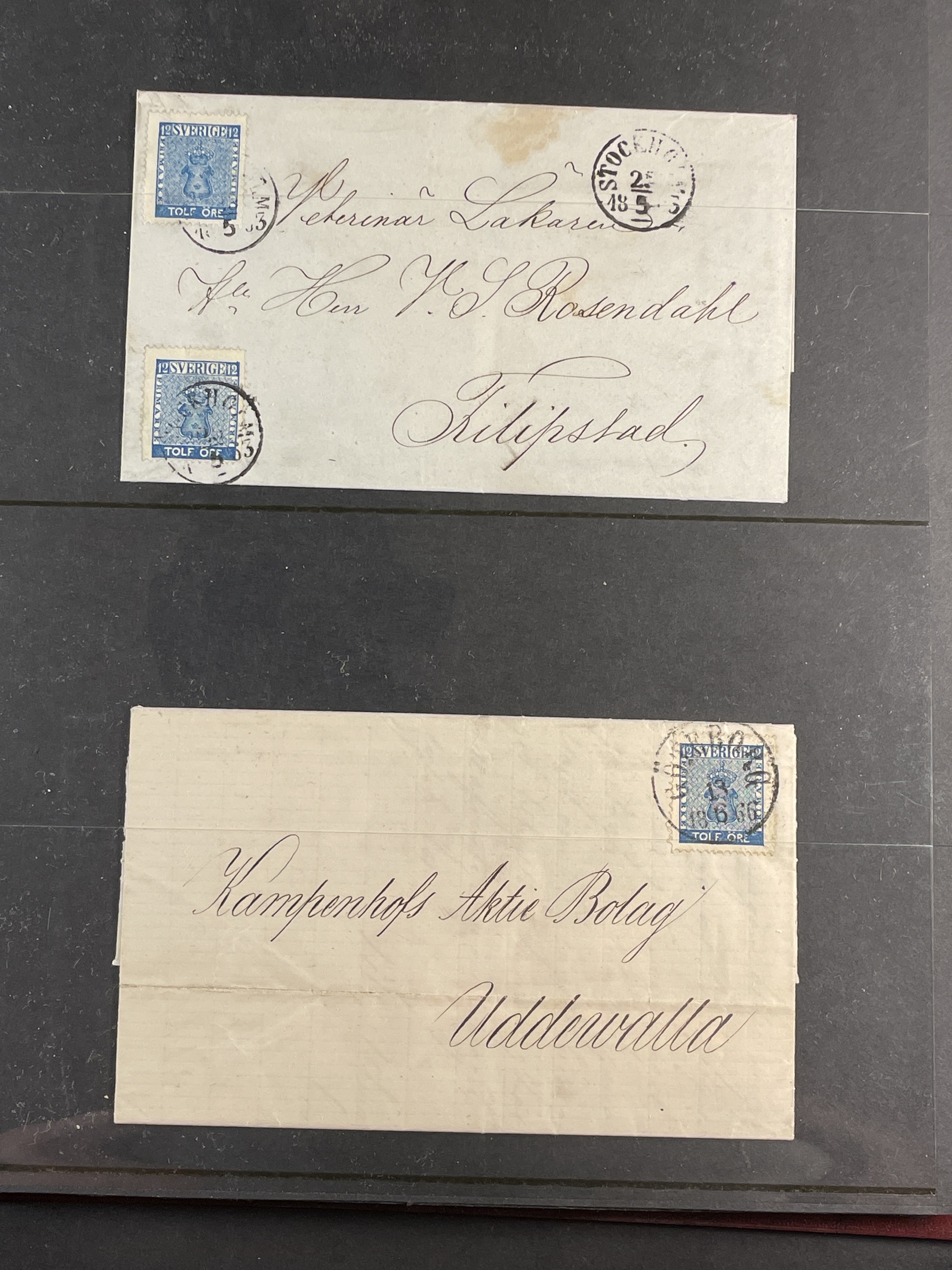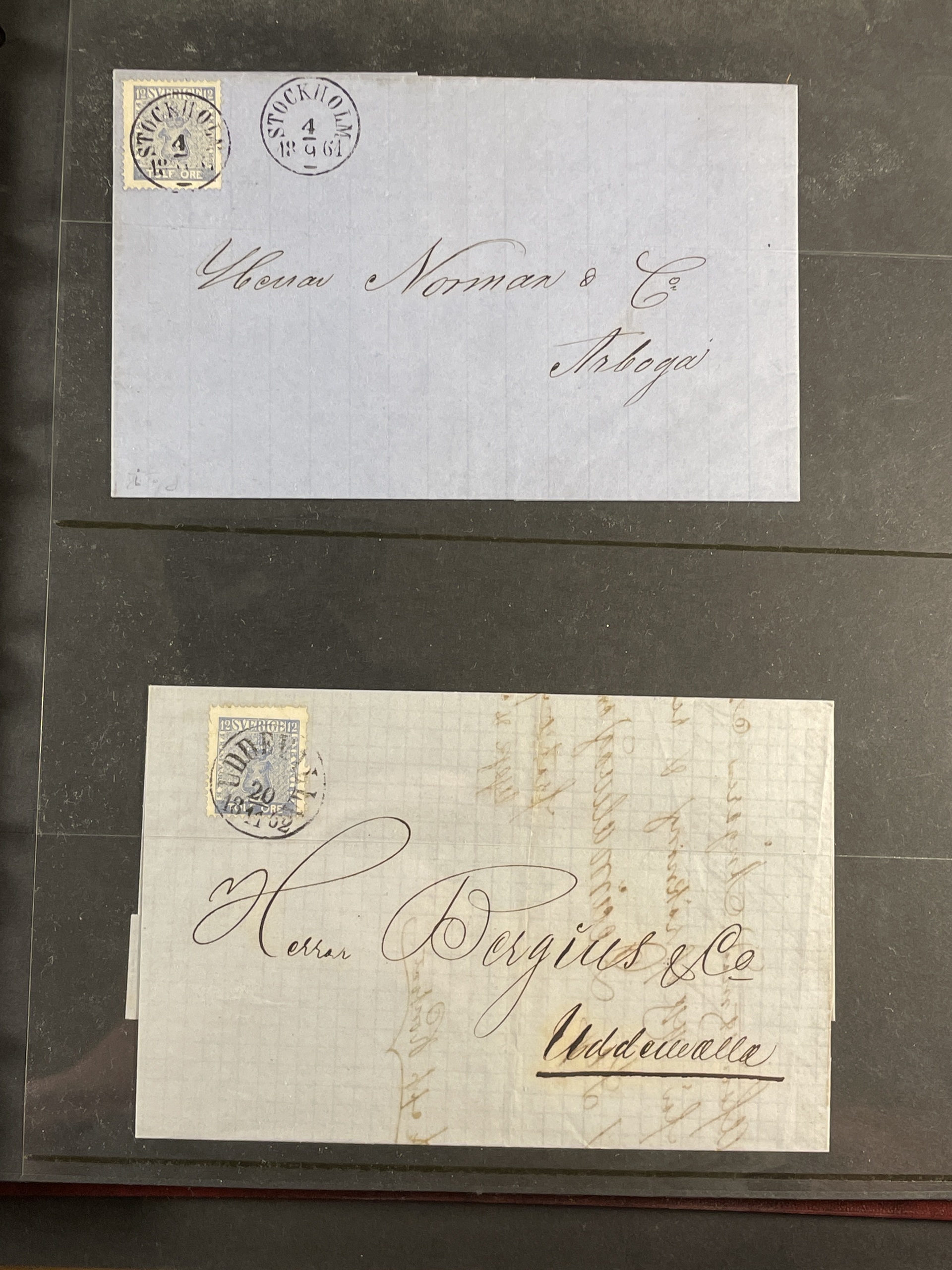 Sweden. Collection covers 12 öre COAT-OF-ARMS in visir album. Incl. some ultramarine shades. Mostly good quality. (75)