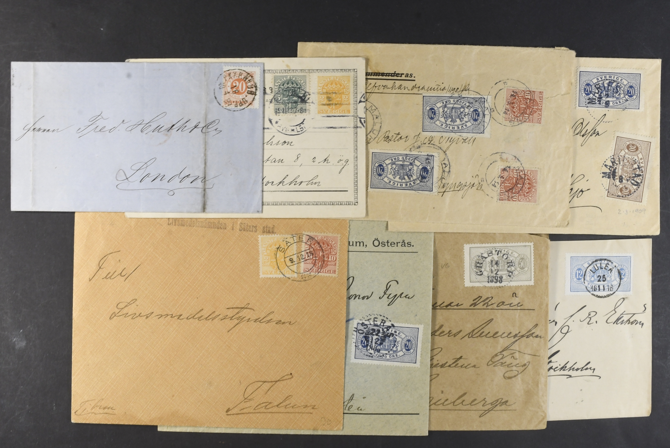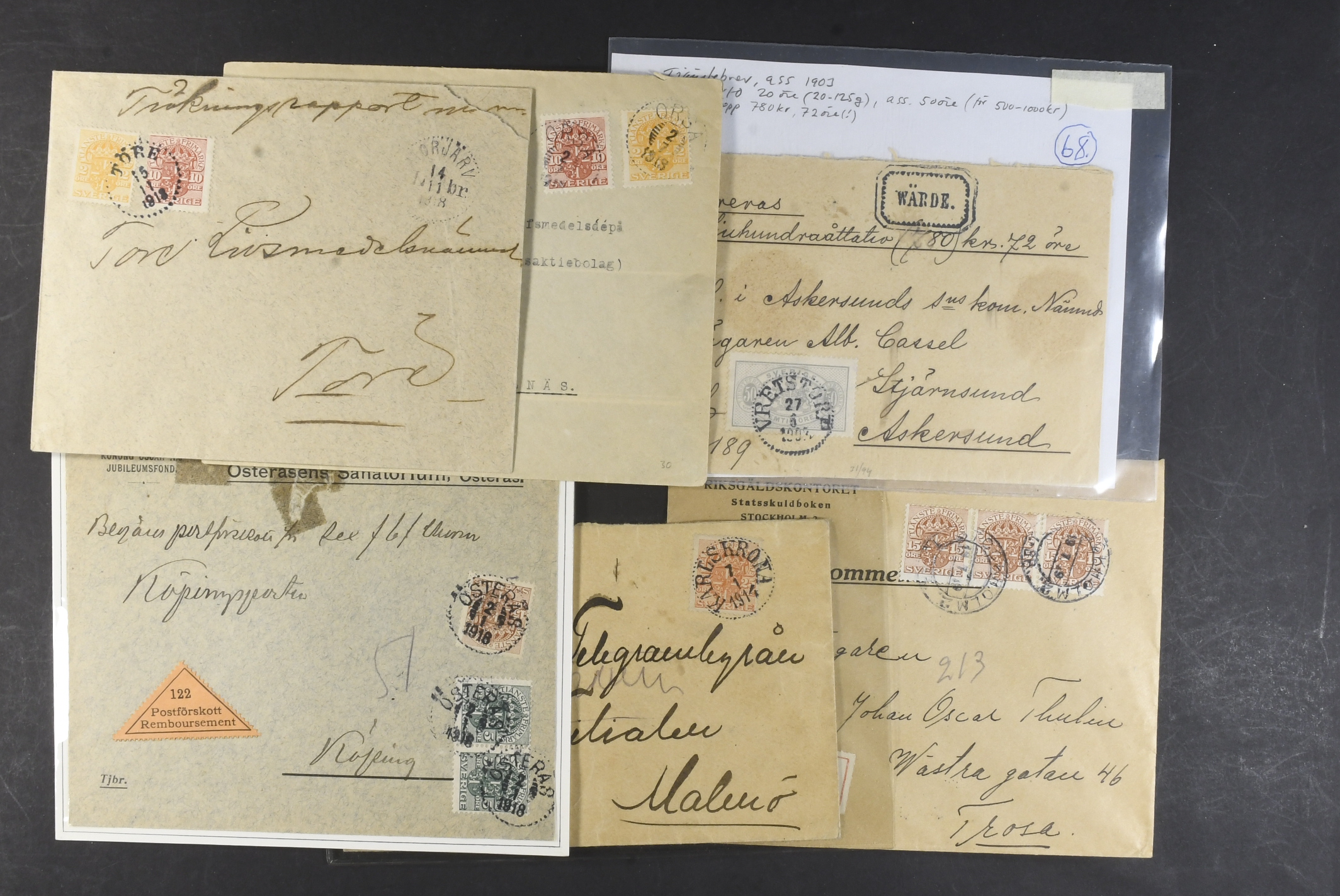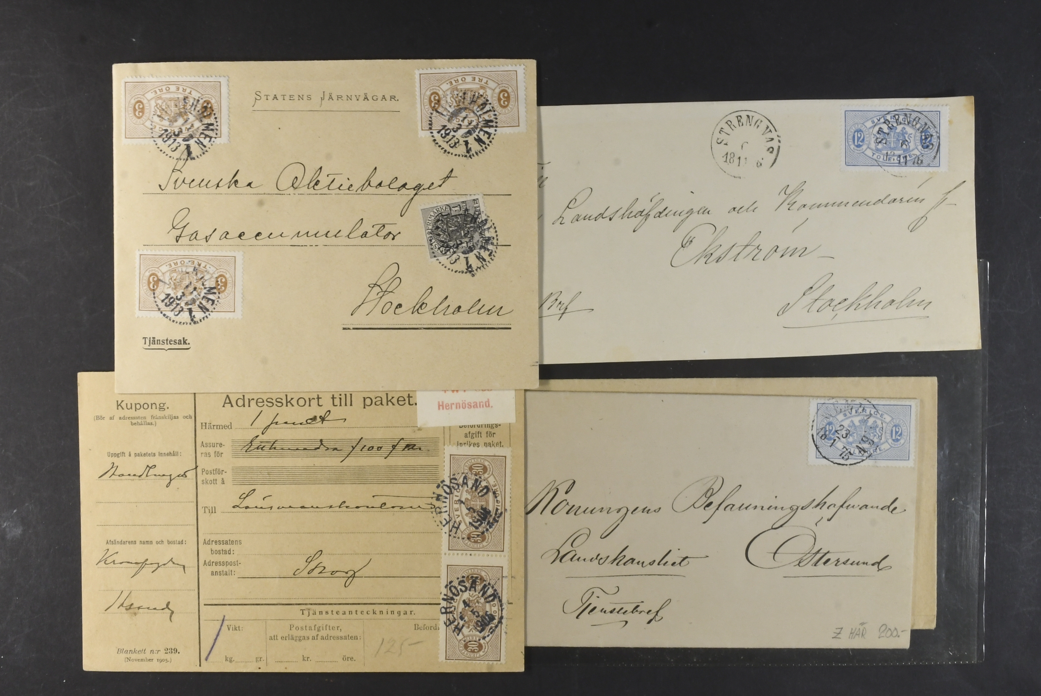 Sweden. Collection covers. Circle type and large officials. Also two covers with postage due stamps, but with original stamps removed. (49)