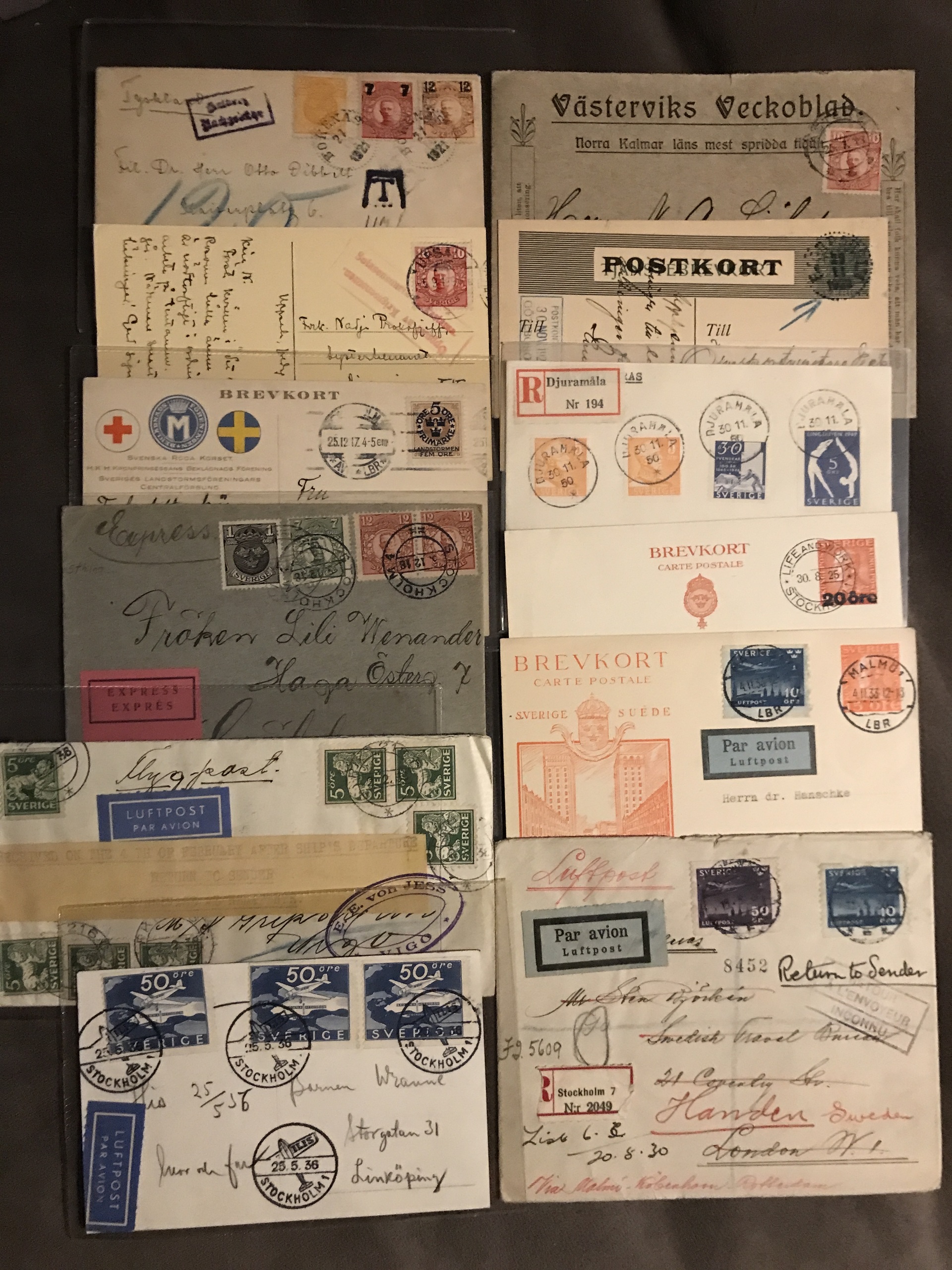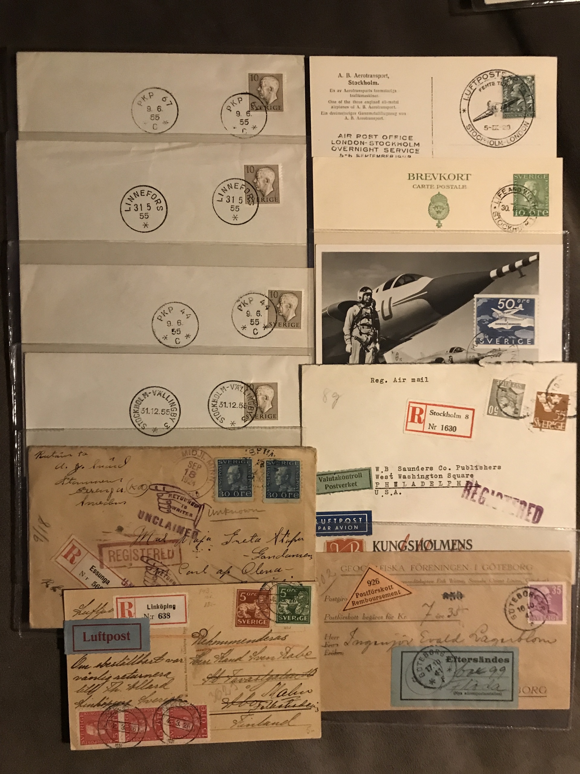 Sweden. Covers. About 110 covers and cards GV Medallion–modern incl. good cancellations, air mail, registered and some censor, etc.