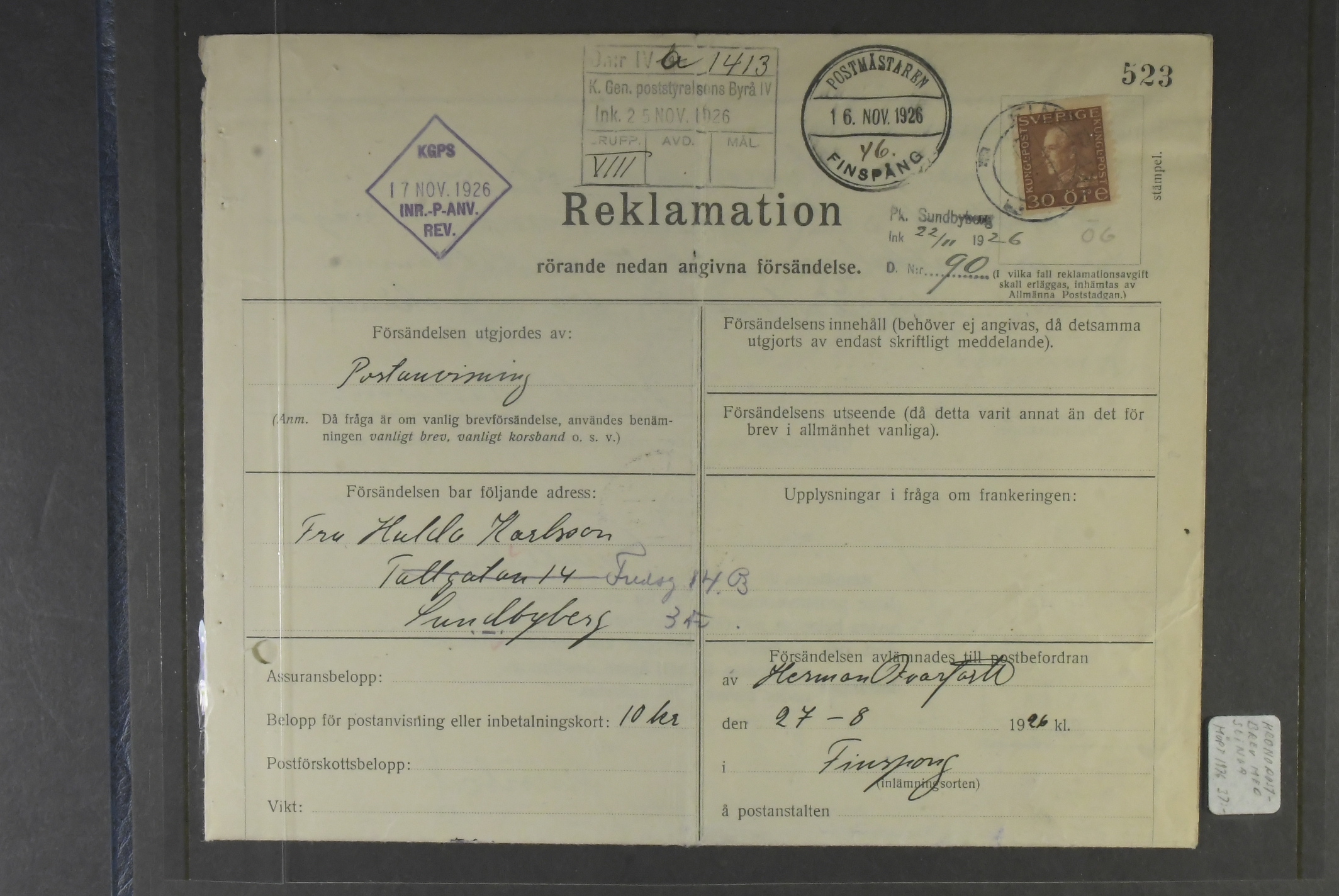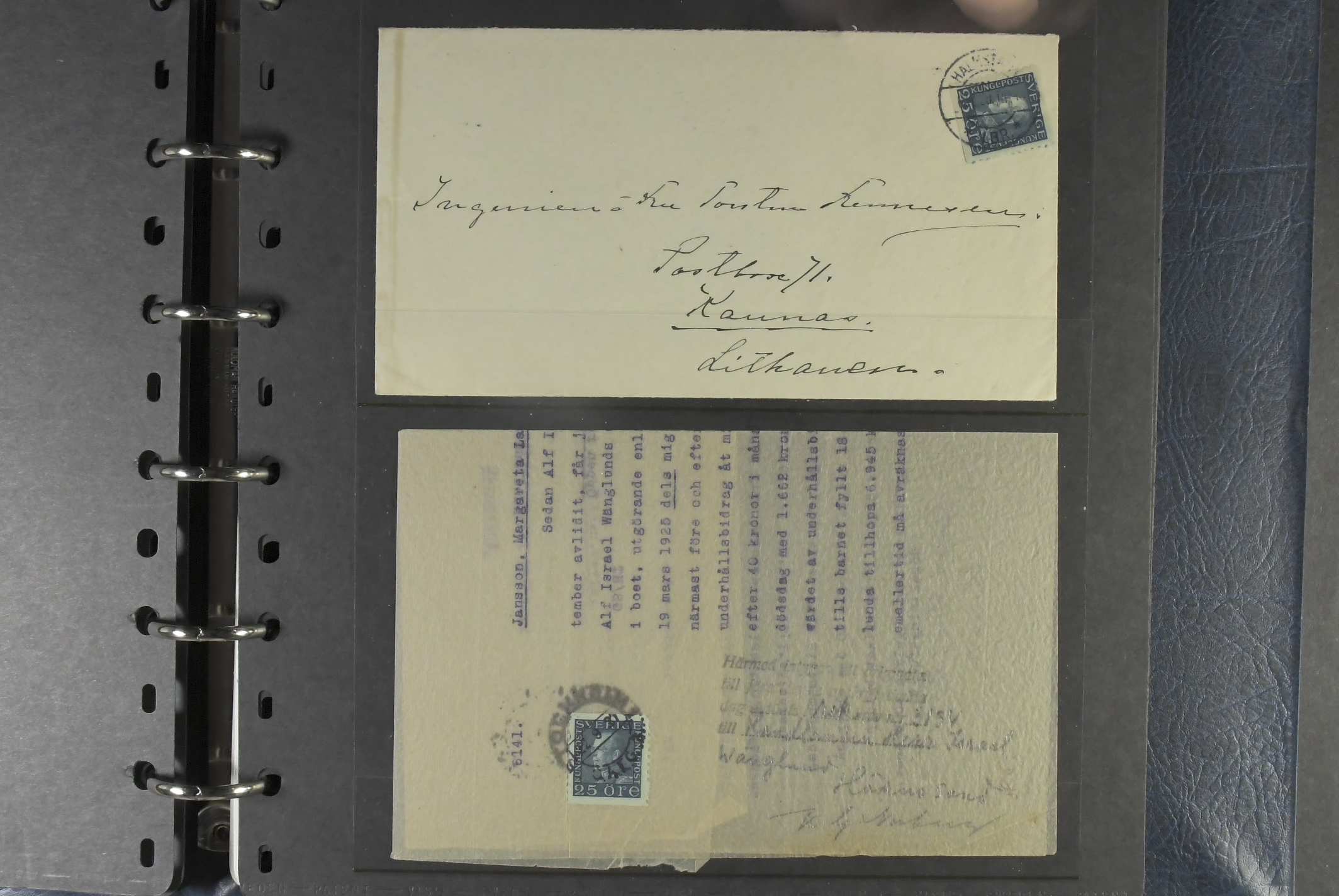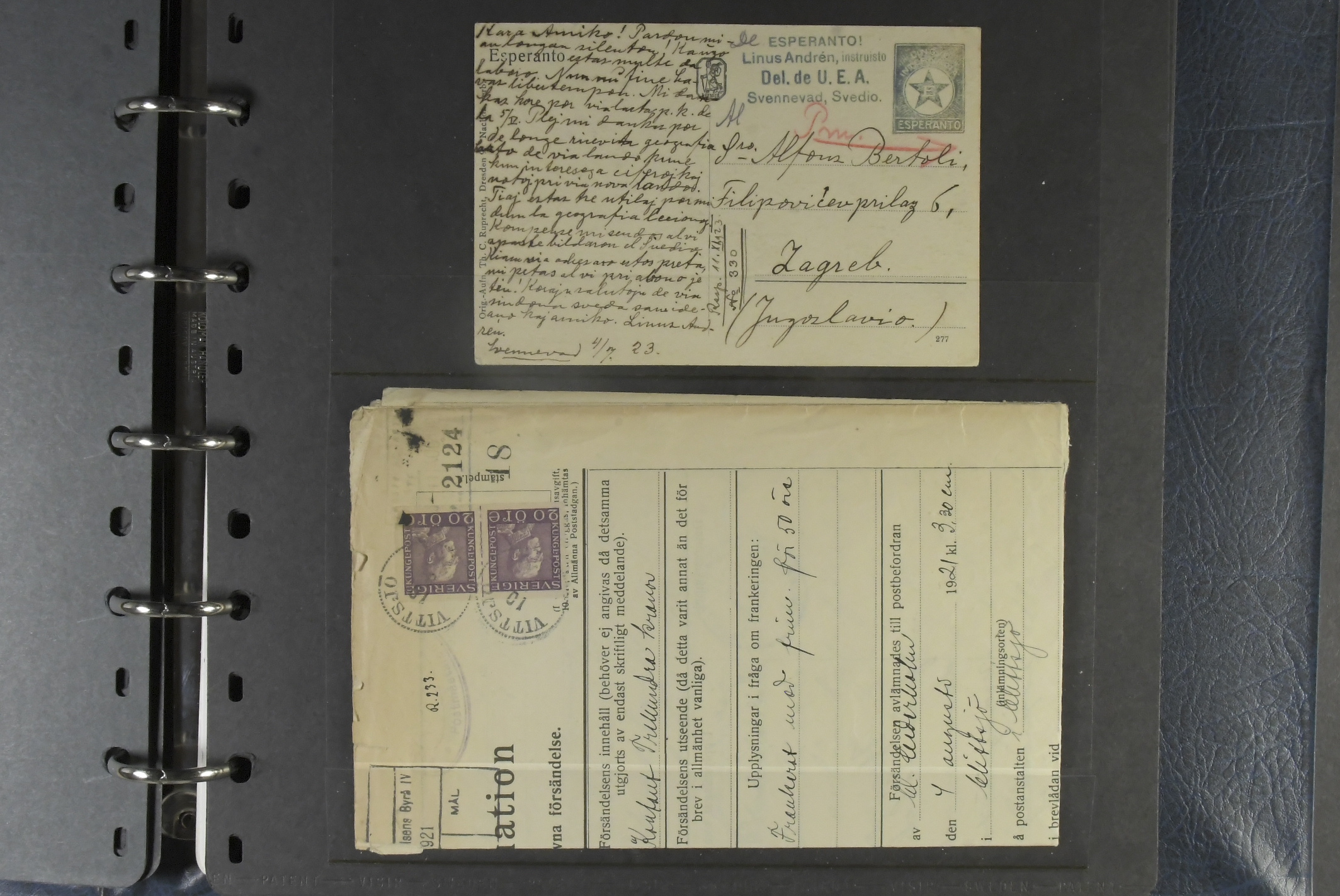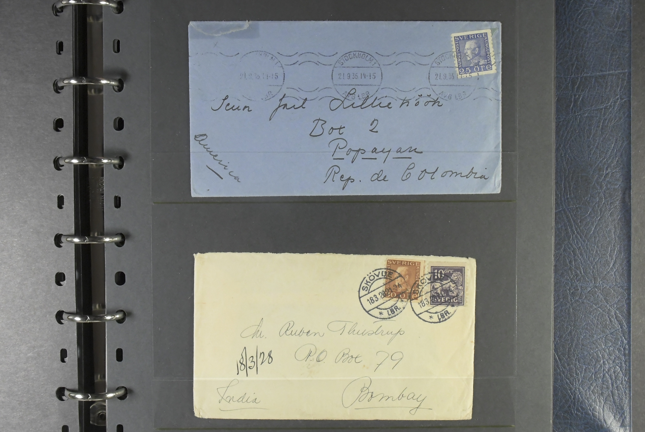 Sweden. Collection covers GUSTAF V LEFT PROFILE in visir album. Selected better items, e.g. postal forms, special delivery and air mail, foreign destinations incl. Bulgaria, Canada, Chile, China, Colombia, India, Iran, Ireland, Java, Philippines, South Africa, Turkey and Venezuela. The entire lot is presented at www.philea.se. Somewhat mixed quality. (38)