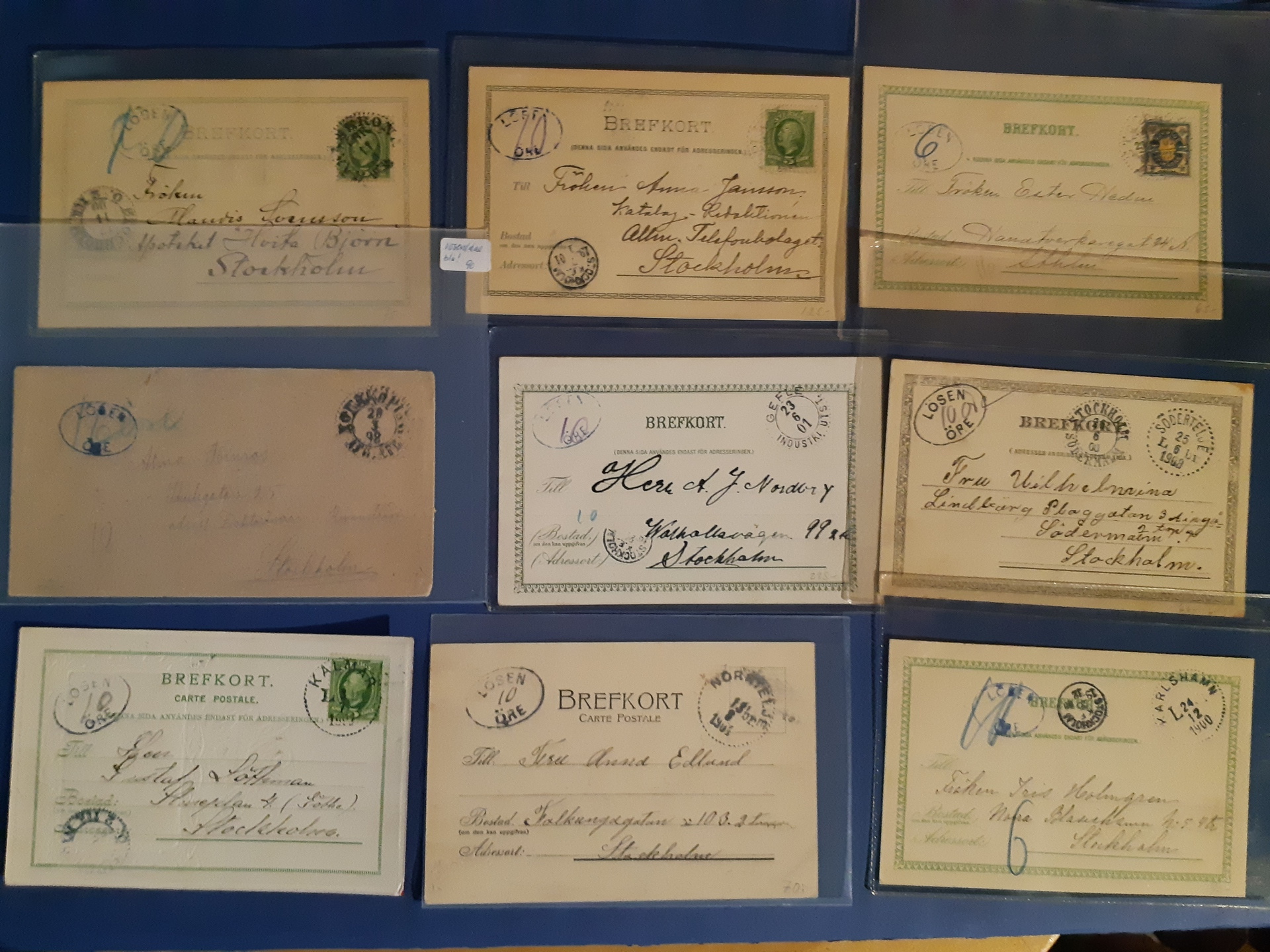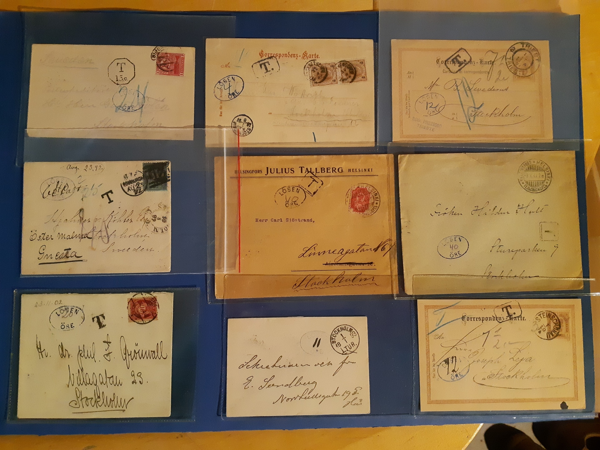 Sweden. Lot covers POSTAGE DUE. Oval marks 'LÖSEN ÖRE' in different colours, on covers and cards. The entire lot is presented at www.philea.se. (27)