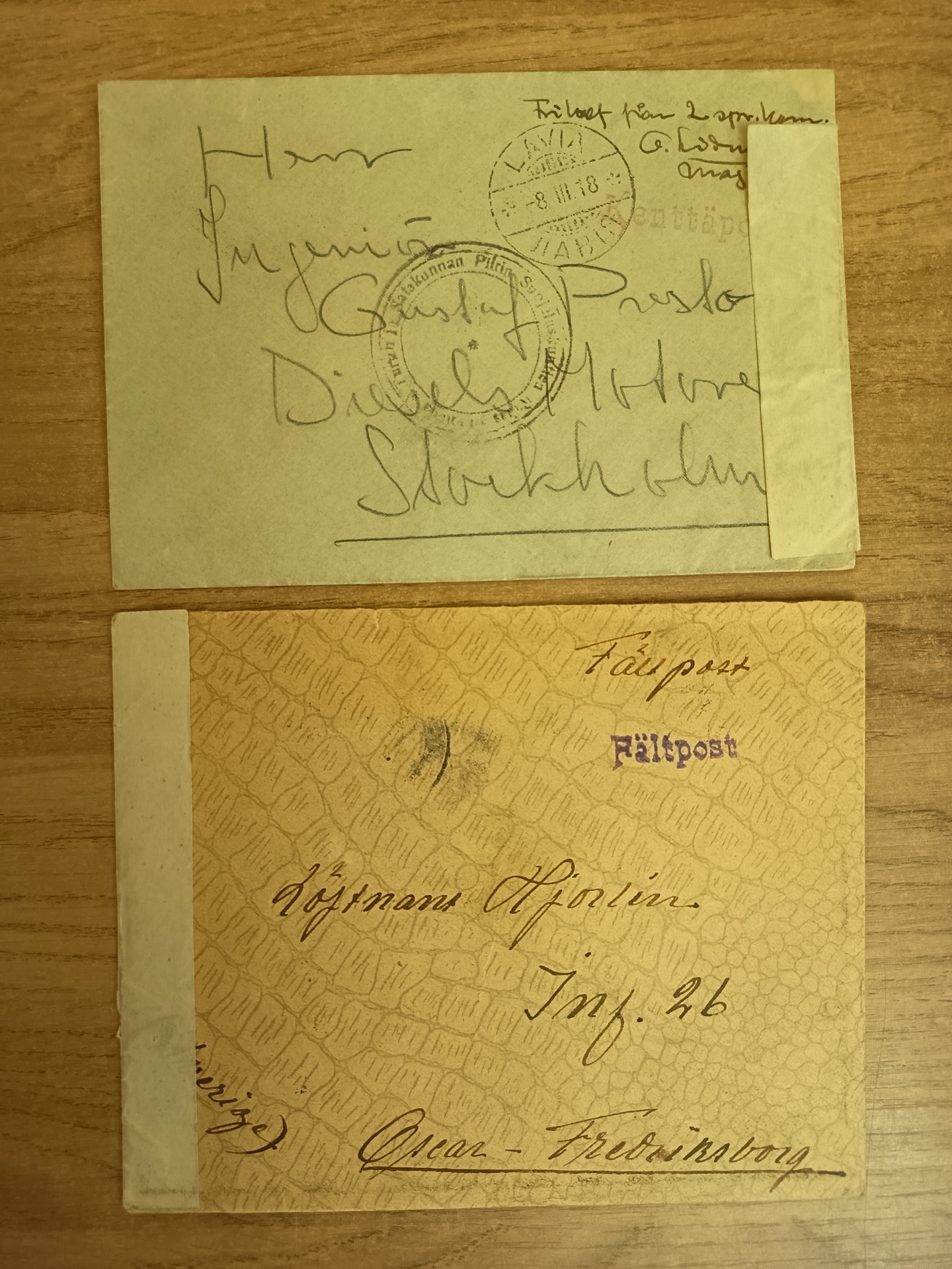 Sweden. Covers. Swedish volunteers? in Finland 1918, two field post covers to Sweden, censored.