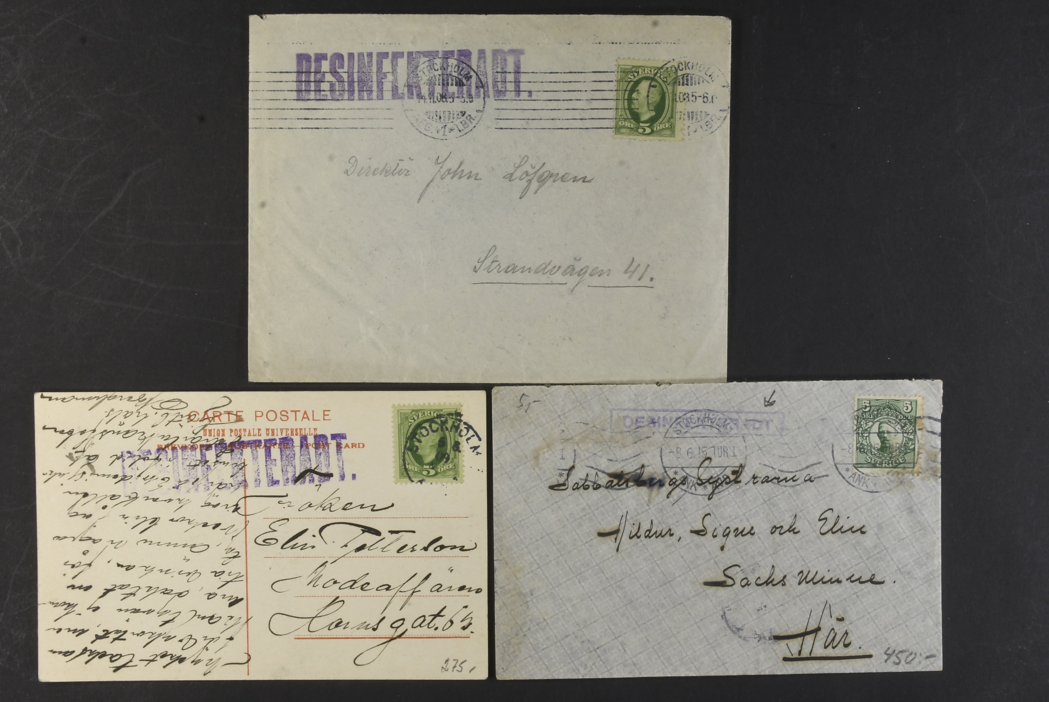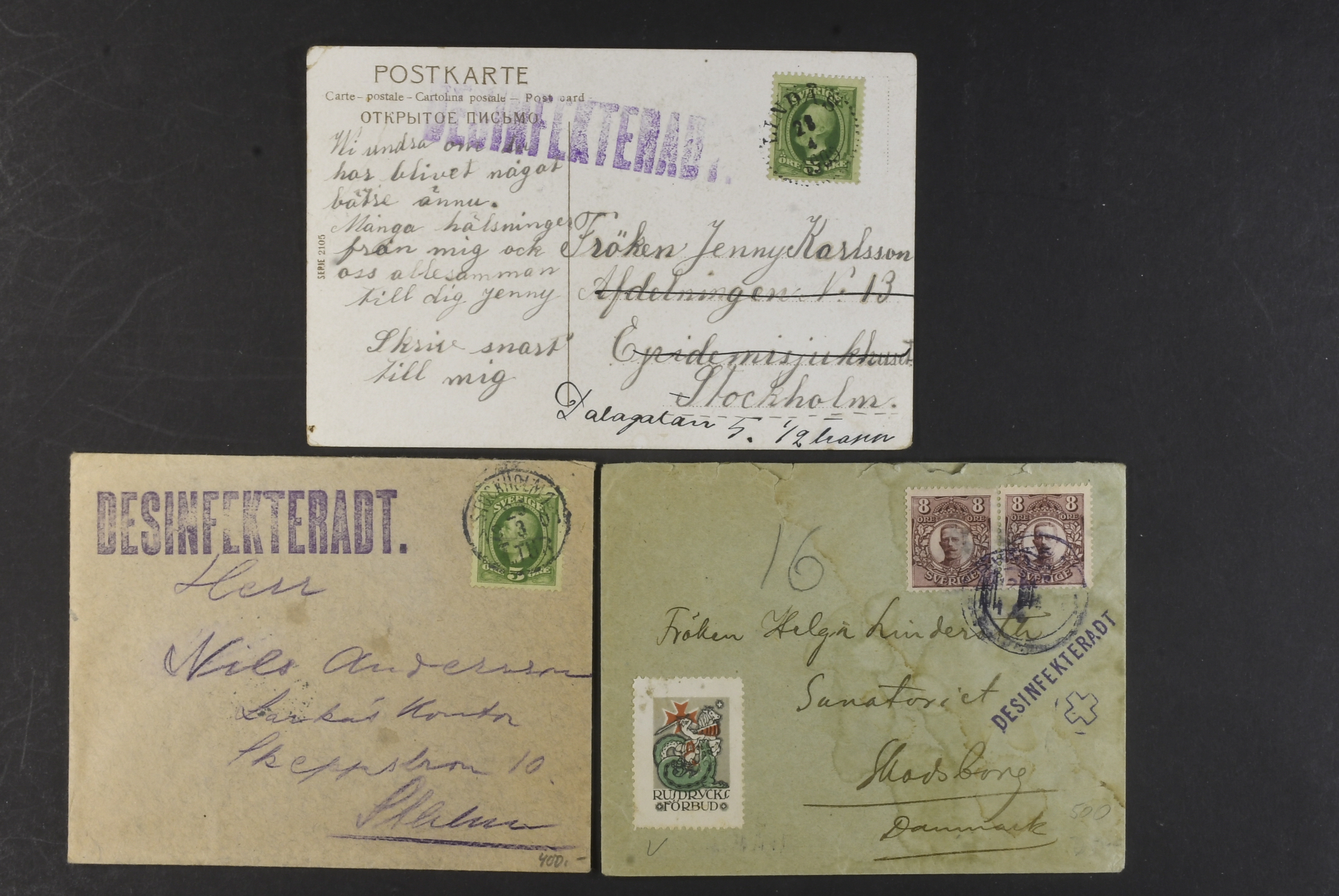 Sweden. Lot covers. Six covers and cards with cancellations DESINFEKTERADT, 1900s–1910s. (6)