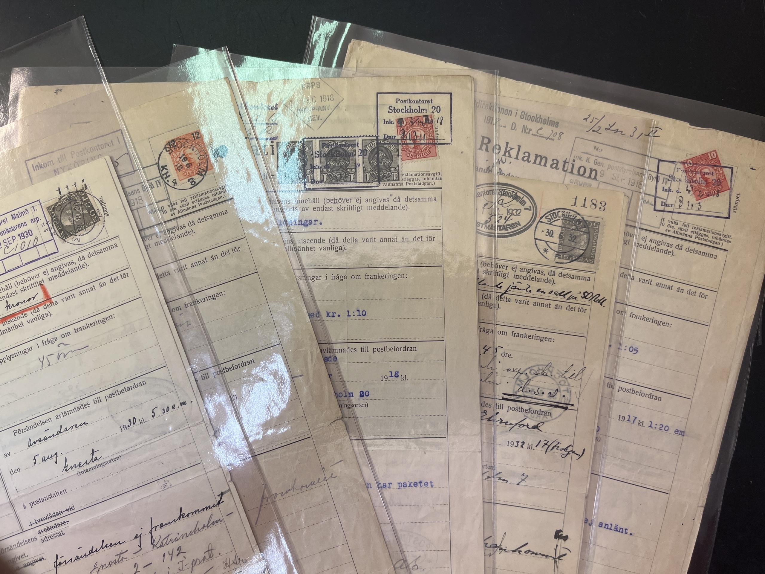 Sweden. Lot covers 1918–1932. Five postal forms for complaints. Good quality.