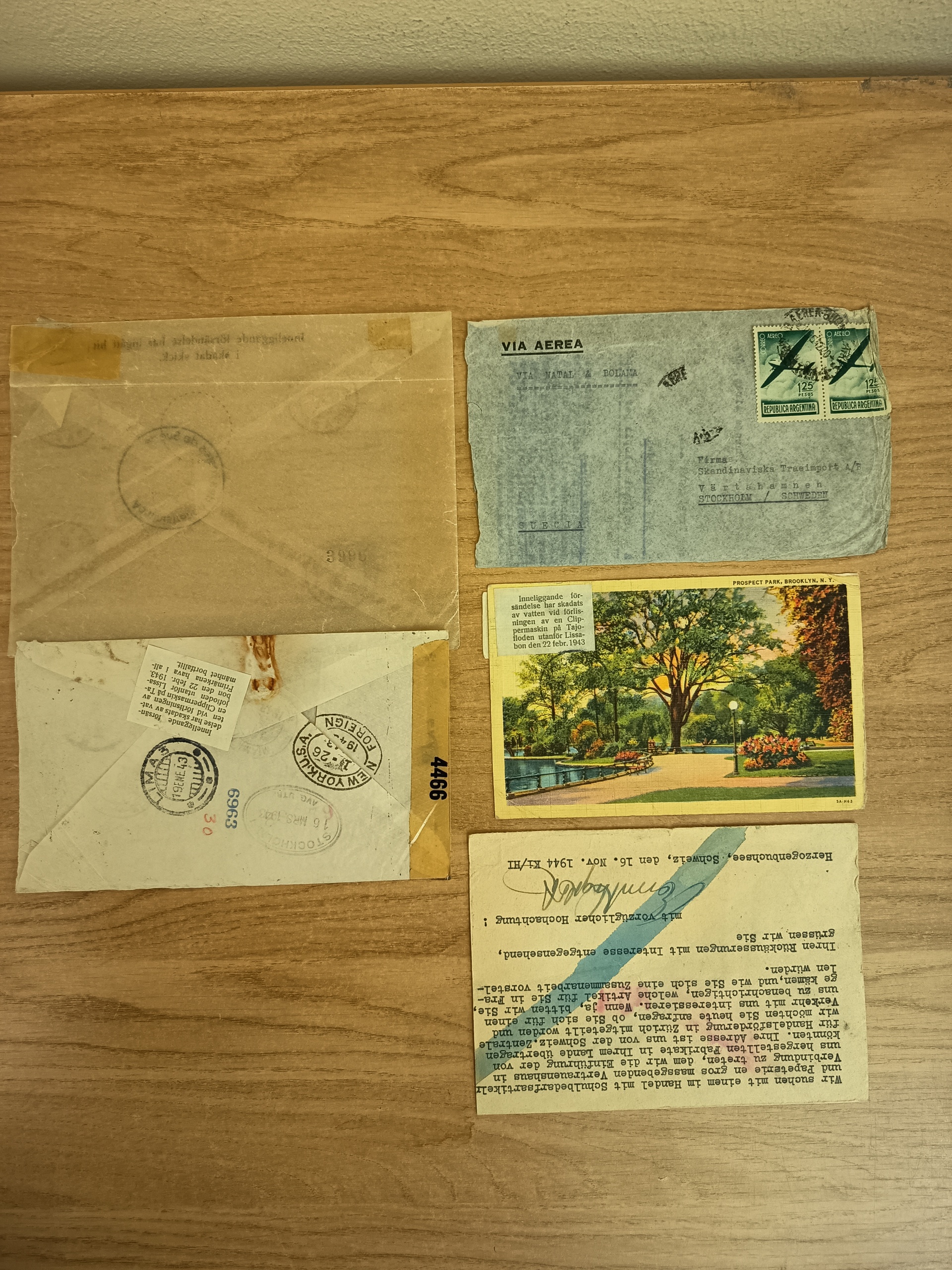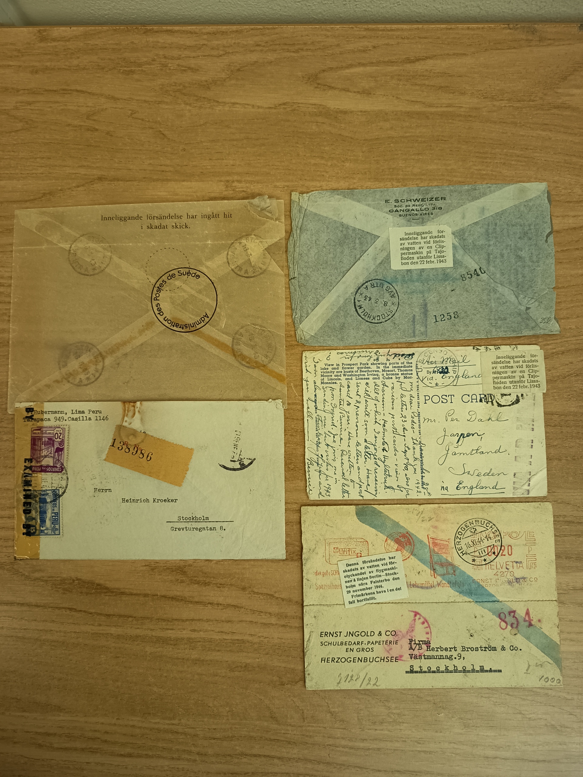 Sweden. Crash-post. Two covers and one postcard from airplane crash at Tajo river outside Lissabon 1943, one postcard from airplane crash at Falsterbo 1944. The entire lot is presented at www.philea.se. (4)