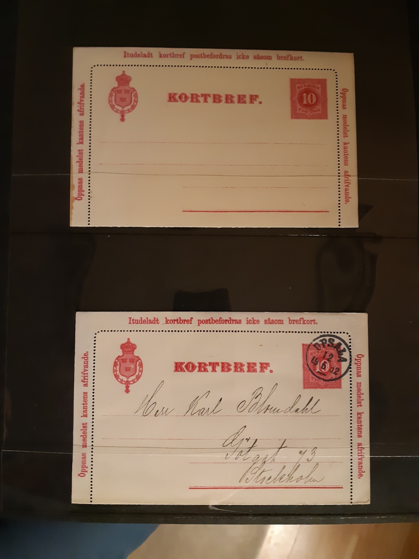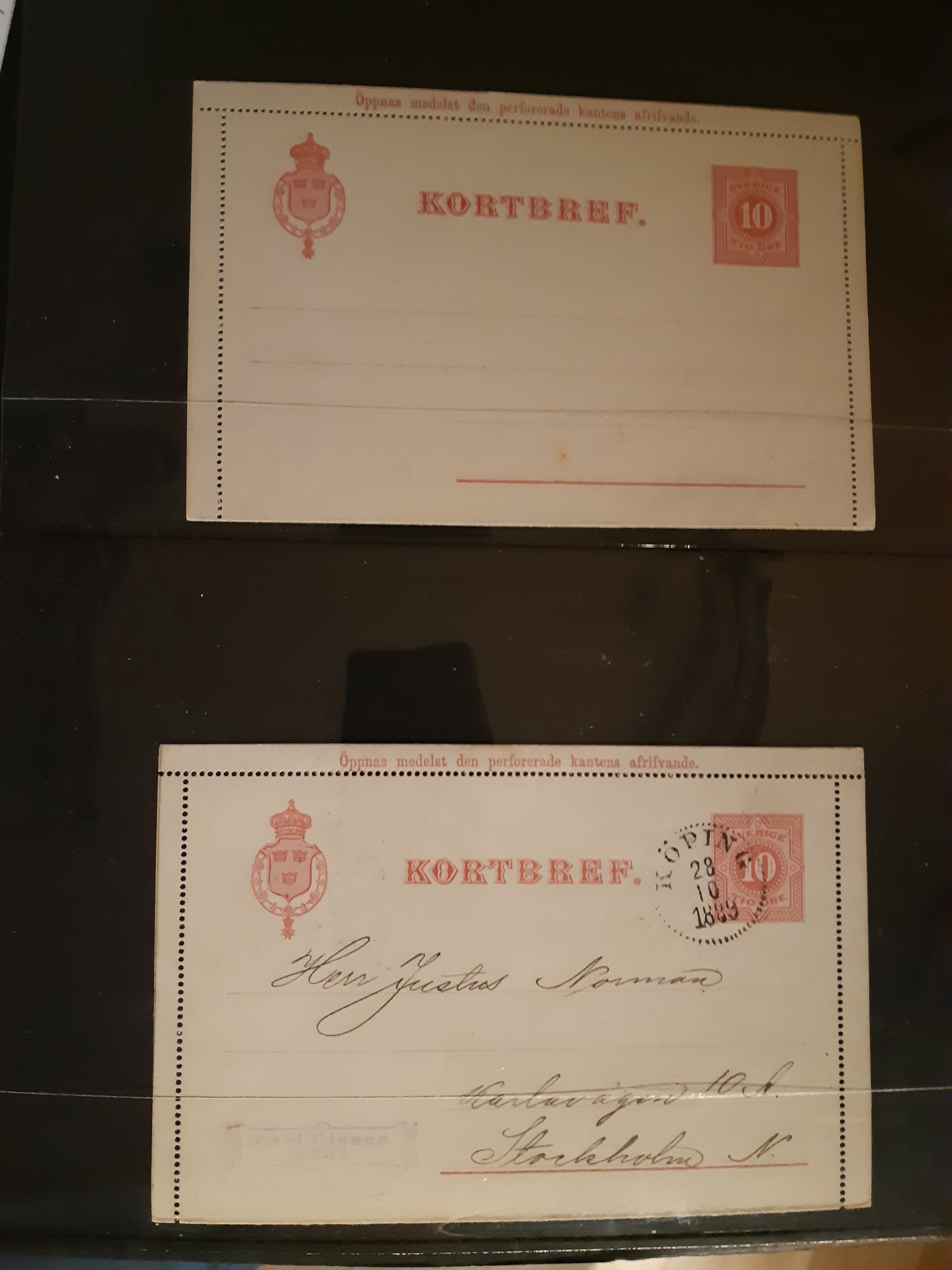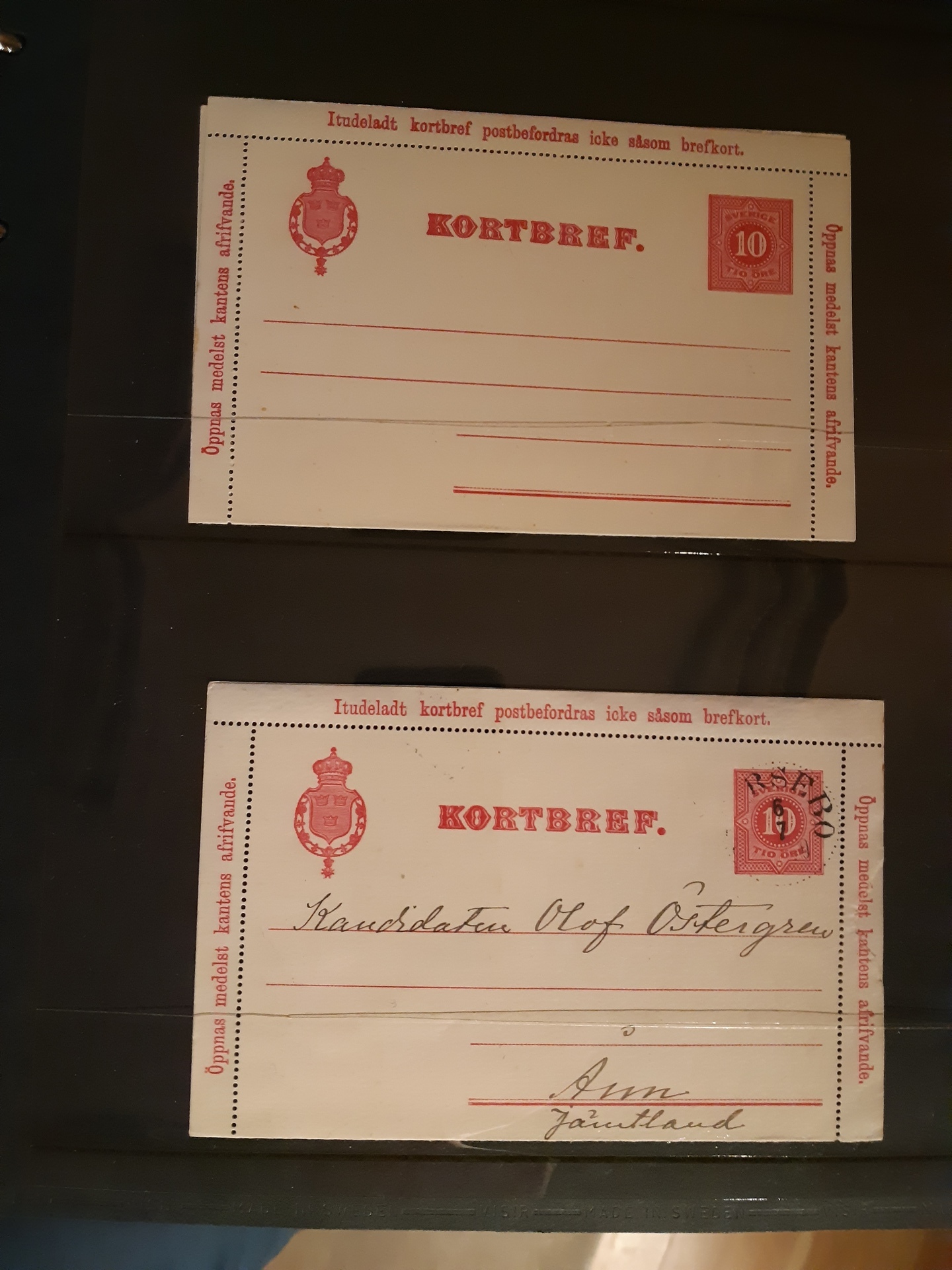 Sweden. Postal stationery, collection LETTER CARDS kB1–45 in two visir albums. Much unused cards in unusual high quality, incl. different types, cartons, overprints, etc. (not indicated), plus some used incl. a few with additional frankings. (138)